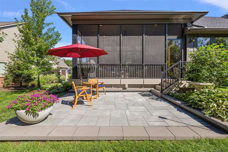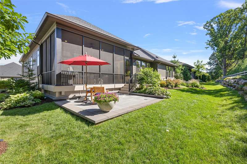 Step into a home where luxury, comfort, and thoughtful design come together in perfect harmony. This stunning residence rivals any HGTV Dream Home, showcasing soaring ceilings and upscale finishes that elevate every room. From the moment you step inside, you'll be captivated by the meticulous attention to detail and the inviting spaces that make you feel instantly at home. The remarkable kitchen features a massive center island, premium stone surfaces, and custom woodwork. Open to the kitchen is the elegant family room, boasting a stunning fireplace and tray ceilings, creating a warm, inviting atmosphere. For those working remotely, a private library provides the perfect quiet space with a sophisticated touch. You’ll want to spend your time in the fabulous three-season room, offering serene views of impeccably landscaped private nature. It steps down onto a beautiful bluestone patio, complete with two gas grilling options, making it ideal for hosting gatherings. The primary suite feels like a hotel getaway, featuring two generous walk-in closets and a spa-like ensuite bathroom with dual vanities, a large walk-in shower, and a separate soaking tub. A lovely second bedroom offers ensuite accommodations with equally impressive amenities. Enjoy main floor living at its finest in this maintenance-free home, designed for comfort without sacrificing luxury. The lower level is ready to suit your lifestyle, featuring 10-foot ceilings, a daylight window, 3-piece plumbing, and distribution of heating for multiple rooms. Additional highlights include a Sonos home sound system, a security system, an epoxy coated garage floor, and a Generac whole-house generator. Located in a sought after community with access to scenic walking paths, this exceptional home offers not just a place to live, but a lifestyle to love. This is a rare opportunity to own a home of this caliber, beautifully designed, meticulously maintained, and truly move-in ready. Schedule your private showing today!