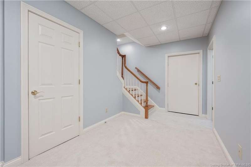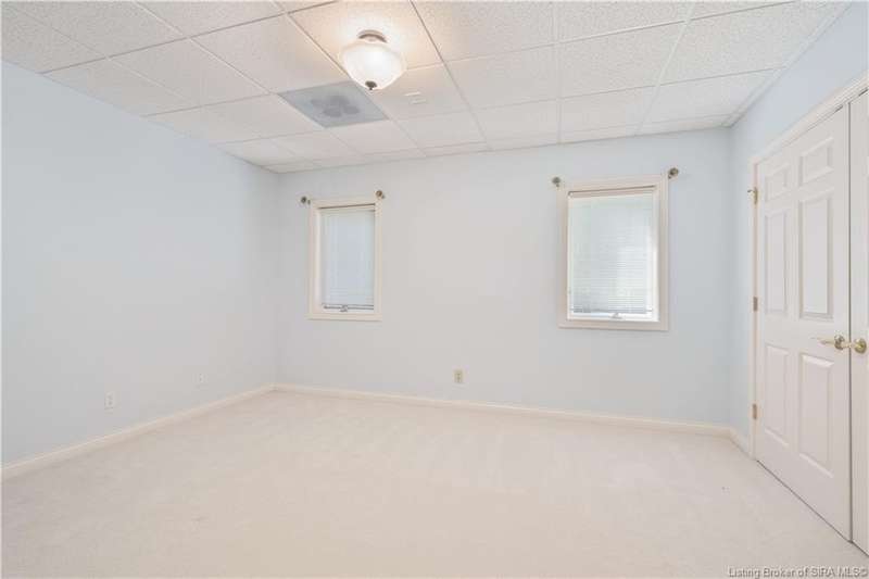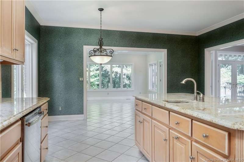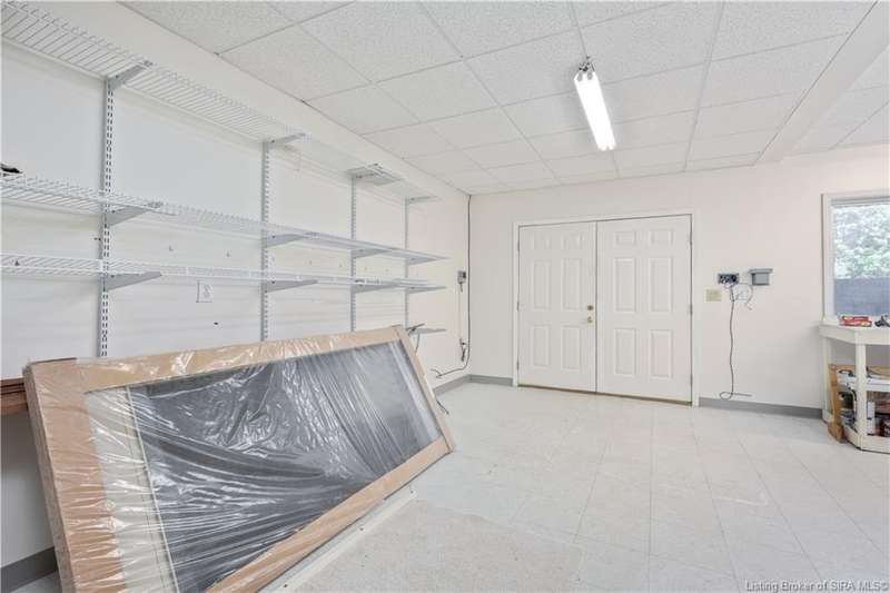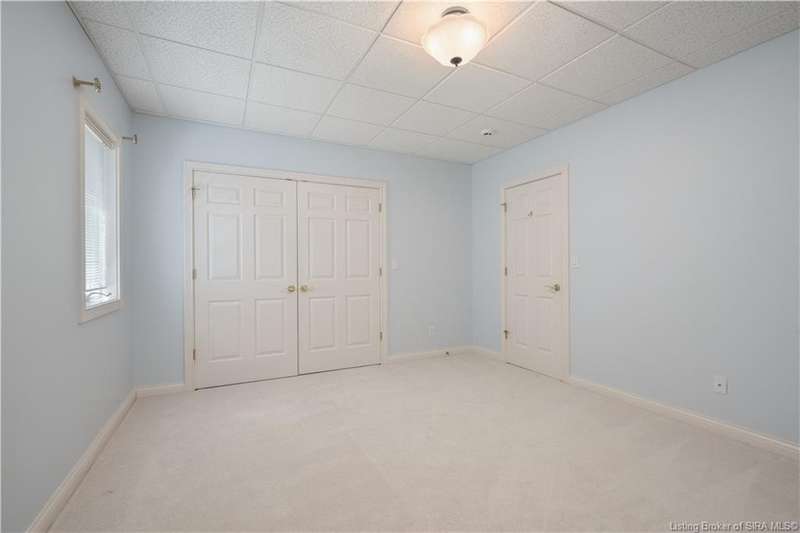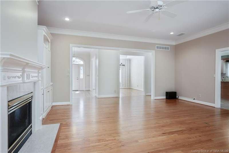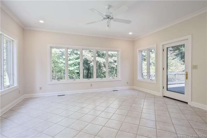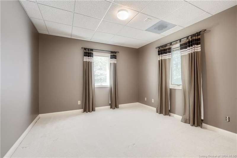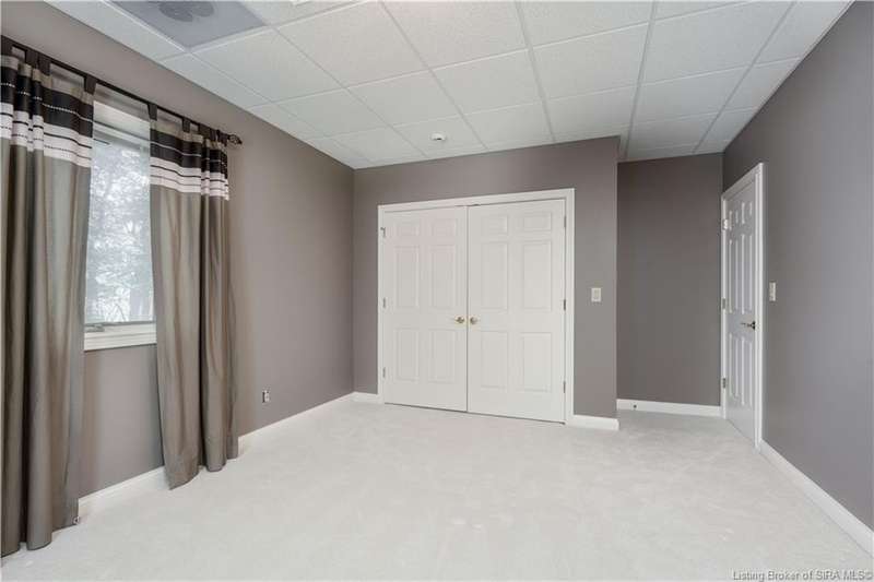CUSTOM BUILT home sitting on a secluded 3.9 acre lot in the desirable BENT CREEK SUBDIVISION in Floyds Knobs! Tucked back at the end of Bent Creek on a cul-de-sac lot, this 4 bedroom 3 bath ranch offers a full, rear walkout lower level with a second kitchen and laundry hookups, which could make an additional living quarters or great space for guests. Custom features in this one owner home built by Gary Longest, include crown molding throughout the first floor, 3/4" hardwood flooring, 2x6 walls, SUNROOM off the 20'x16' kitchen featuring a large island with prep sink, granite countertops, and dining area, great room highlighted by built-ins, gas fireplace and surround sound speakers with French doors leading to the private deck, central vac, security system, and safe room under the front porch. Spacious primary bedroom suite offers an air jetted tub, separate shower, double vanity, and 2 walk-in closets! The walkout lower level has it all- 3 bedrooms, full bath, dedicated office with a built-in desk/cabinets, 9' ceilings, fully equipped kitchen, woodburning brick fireplace, and a finished workshop that could also be used for additional storage space. The 26' wide garage gives you a little extra room, and there is a nice area off the garage and exterior entrance with a laundry room, ½ bath, pantry, and coat closet. This is a great opportunity to own a quality-built home sitting on a 4 acre lot in Floyd Central School District and only minutes to Floyds Knobs Elementary!