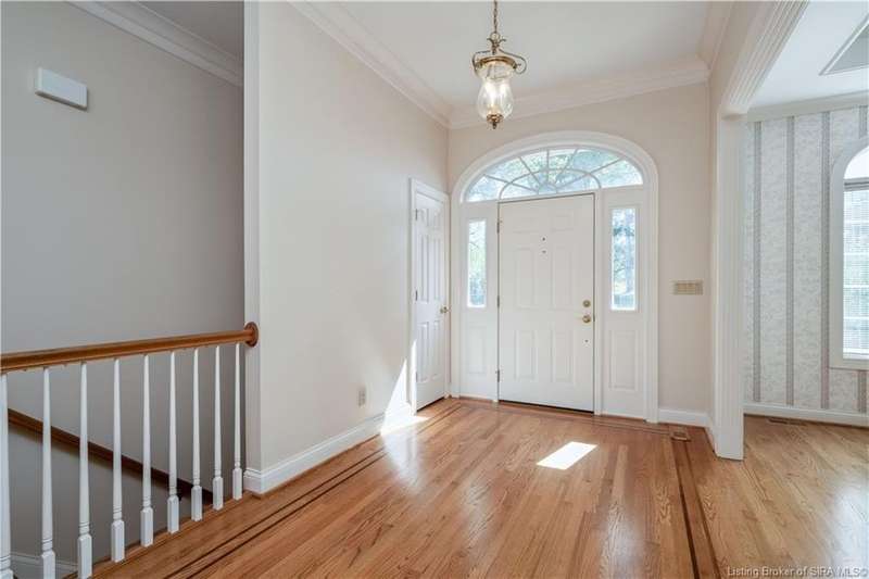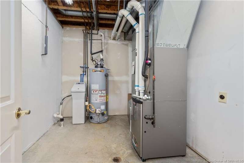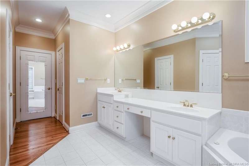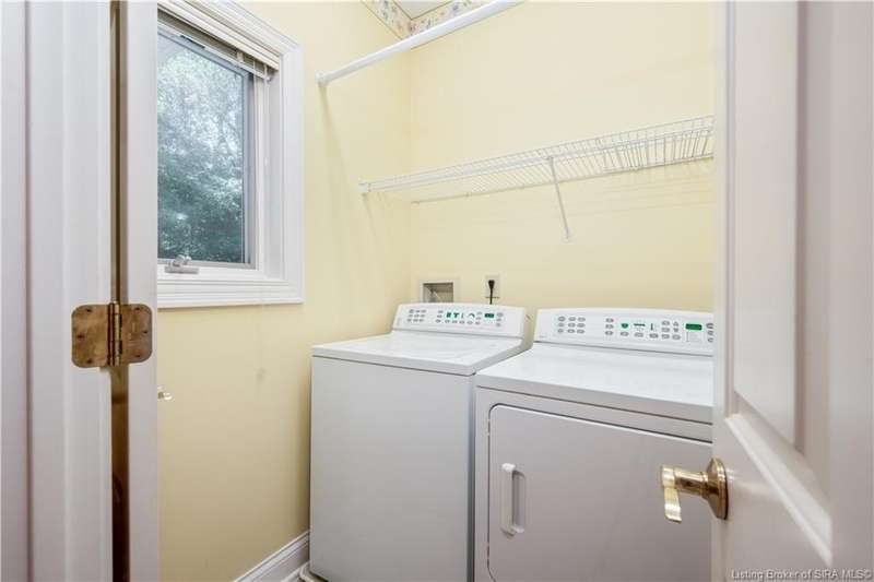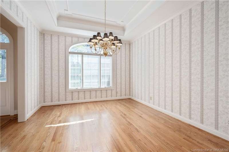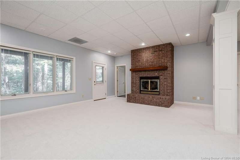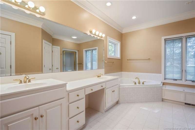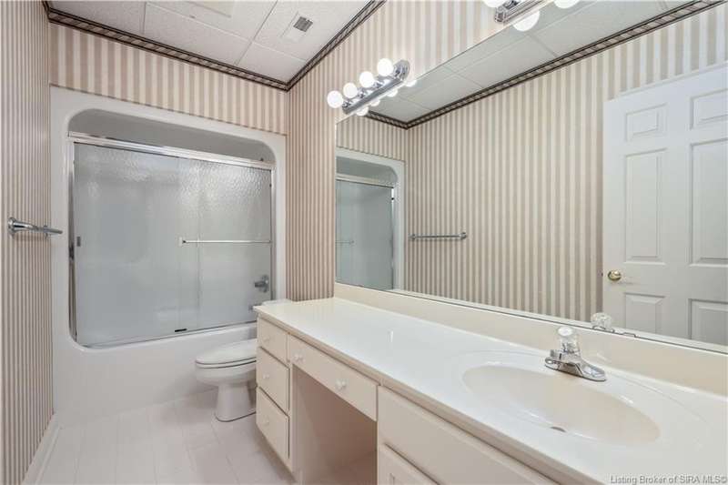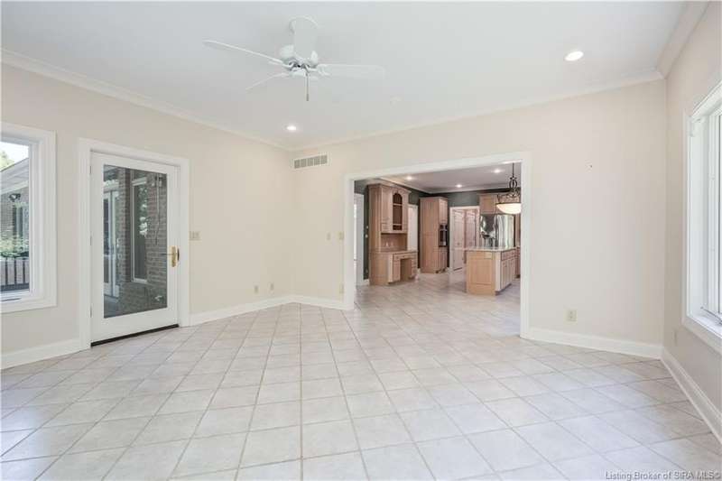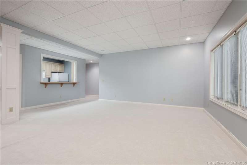 CUSTOM BUILT home sitting on a secluded 3.9 acre lot in the desirable BENT CREEK SUBDIVISION in Floyds Knobs! Tucked back at the end of Bent Creek on a cul-de-sac lot, this 4 bedroom 3 bath ranch offers a full, rear walkout lower level with a second kitchen and laundry hookups, which could make an additional living quarters or great space for guests. Custom features in this one owner home built by Gary Longest, include crown molding throughout the first floor, 3/4" hardwood flooring, 2x6 walls, SUNROOM off the 20'x16' kitchen featuring a large island with prep sink, granite countertops, and dining area, great room highlighted by built-ins, gas fireplace and surround sound speakers with French doors leading to the private deck, central vac, security system, and safe room under the front porch. Spacious primary bedroom suite offers an air jetted tub, separate shower, double vanity, and 2 walk-in closets! The walkout lower level has it all- 3 bedrooms, full bath, dedicated office with a built-in desk/cabinets, 9' ceilings, fully equipped kitchen, woodburning brick fireplace, and a finished workshop that could also be used for additional storage space. The 26' wide garage gives you a little extra room, and there is a nice area off the garage and exterior entrance with a laundry room, ½ bath, pantry, and coat closet. This is a great opportunity to own a quality-built home sitting on a 4 acre lot in Floyd Central School District and only minutes to Floyds Knobs Elementary!