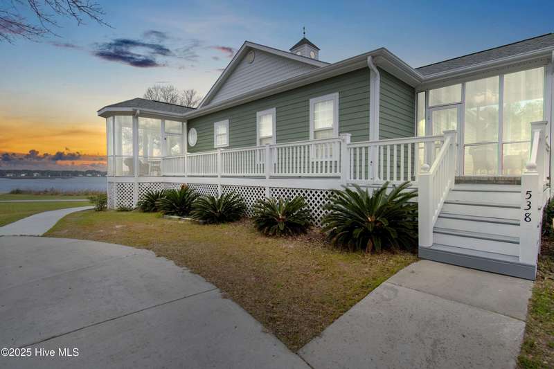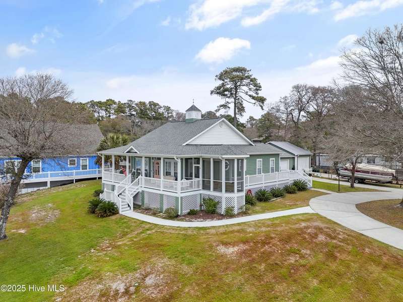 Rare waterfront gem in the peaceful community of Sunset Harbor with 77ft of water frontage located on the Eastern Bend of the Lockwood Folly Harbor. -3bedroom layout provides flexible extra room ideal as a 3rd bedroom, office, or guest space. This stunning coastal retreat with 9ft ceilings, faces west, offering coastal afternoon sun, breathtaking direct water views of Sunset Harbor, facing outward to the Lockwood Folly Inlet into the Atlantic, the Intracoastal Waterway and Sheep Island. Spectacular panoramic sunsets, elevated high on a bluff, securing the best views and natural protection. A short drive from deep water access at the Sunset harbor boat ramp. Designed for both comfort and convenience, open-concept layout maximizes natural light and showcases the serene surroundings, this home boasts a modern kitchen with granite countertops and stainless-steel appliances, The vented to the outside direct vent by Kozy Heat marble fireplace adds elegance and warmth, while fresh paint and a fortified roof system installed in November, ensure move-in-ready appeal. The outdoor spaces, perfect for relaxing, entertaining offering the ultimate coastal lifestyle. The property has a dual water source of County and well, fenced in back yard with treated pine, offering privacy and security. The irrigation system spans the entire property, keeping the lush landscape vibrant year-round. Concrete circle driveway allowing for ample space and access. Storage is no issue with a plumbed garage and a large shipping container storage unit, perfect for boats, tools, or extra gear. Nestled in a prime location just minutes from Holden Beach, Oak Island, Southport and all the best of Brunswick County, has to offer such as Carolina National Golf Club, a 27-hole course designed by Fred Couples overlooking the Lockwood Folly River, Lockwood Folly Country Club, restaurants and more! This property is a true waterfront haven. Don't miss this unique opportunity, no HOA dues!