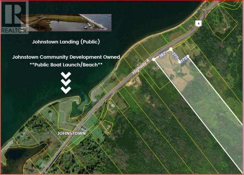 Location Description: From the Number 4 Highway (East Bay to Big Pond) until you arrive in Johnstown. "House on the Hill" Opposite Water For exact location, copy/paste into browser search bar 45.802145, -60.727440