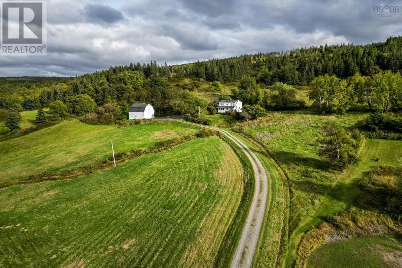 Charming Country Home with 78 Acres & Lake Views | Investment Opportunity This delightful two-story, four-bedroom, two-bathroom home sits on 78 acres of land, all located on the same side of the road as the home and barn, offering privacy and space with no split parcels. The property features panoramic views of Bras d'Or Lake, creating an inviting setting for a private retreat or investment opportunity. Currently a successful Airbnb, the home is fully furnished and ready for occupancy. Includes beds with bedding, dishes, an eight chair dining table, a heat pump on the main level, oil gravity stove, appliances, generator and trimmer (ride-on lawn tractor not included). Recent upgrades include a renovated kitchen with new sink and epoxy countertops, main floor laundry with sink, and a new bathroom with walk-in shower, double vanity, and barn-style sliding door. The bright open-concept main floor has large windows, a screened front porch, a sunset-view deck, and a firepit. Upstairs features a spacious primary bedroom, three additional bedrooms, and an office nook with lake views. The upstairs bathroom offers a clawfoot tub with shower and ample storage. Antique furniture and beautiful flooring add warmth and character. New water pump and filtration system included. Just minutes away, Johnstown Landing offers shared access to a beach, wharf, boat launch, events, and a market (see photos). 360° tour and drone footage on Realtor.ca. Google location: 45.802145, -60.727440. (id:2494)