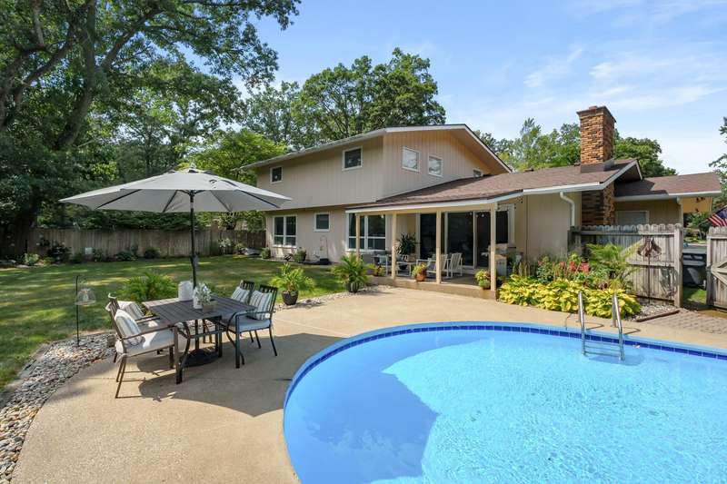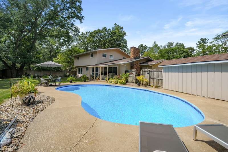 Charming 4-Bedroom Home with Pool in the Heart of Portage.Tucked away on a quiet cul-de-sac, this beautiful two-story, four-bedroom, two-and-a-half-bath home offers the perfect blend of comfort, style, and modern updates. From the moment you step inside, you'll notice the fresh paint and inviting atmosphere that give this home its warm, contemporary appeal.The updated kitchen features painted cabinets and granite countertops and flows seamlessly into the cozy family room, where sliding doors open to a covered patio, perfect for summer gatherings. A formal living room and dining room provide elegant spaces for entertaining, while a cheerful breakfast room, convenient half bath, and main-level laundry add everyday ease.Upstairs, the expansive master suite is a true retreat, boasting an updated bath with granite double vanity, a separate shower, and generous closet space. Three additional bedrooms and a full family bath offer plenty of room for everyone. Step outside to your private backyard oasis, complete with a sparkling inground pool that has been refreshed with new paint, new tiles, and an updated filter and automatic chlorinator in 2020. The large fenced yard offers both privacy and room to play.With a full basement for storage, a roof replaced approximately 2016, and recent upgrades including a new garage door, new shed siding, and brand-new water heater, furnace, and AC in 2024, this home is as move-in ready.