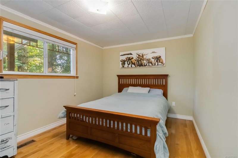 PRICE CHANGE!! Charming 1950's home, nestled on a private and spacious .22-acre lot surrounded by mature trees and established garden beds. This home offers a fantastic opportunity to create your dream space. The main level features 3 bedrooms and 1 bathroom, an inviting eat-in kitchen, a cozy family room, and a bright living room highlighted by coved ceilings, original oak hardwood floors, and a fireplace. Double doors lead to a large, private deck with a hot tub, ideal for morning coffee or summer gatherings. Downstairs, you'll find a laundry room and a 1-bedroom in-law suite with separate entrance, a great option for extended family or rental income. The property also boasts ample parking, including space for a boat or RV, and is ideally located close to schools, beaches, parks, and all amenities. Whether you're a first-time buyer or an investor, this house will be a source of future happiness. Don't miss out on making 3365 Painter Rd your next great opportunity!