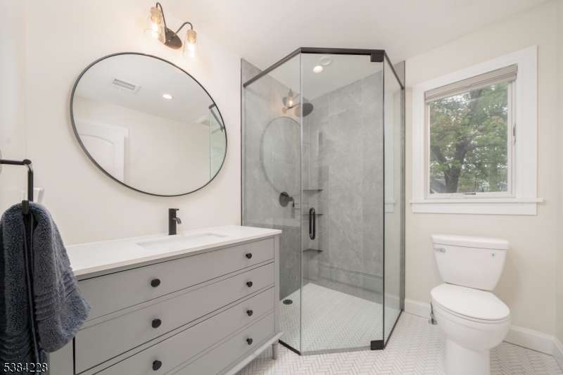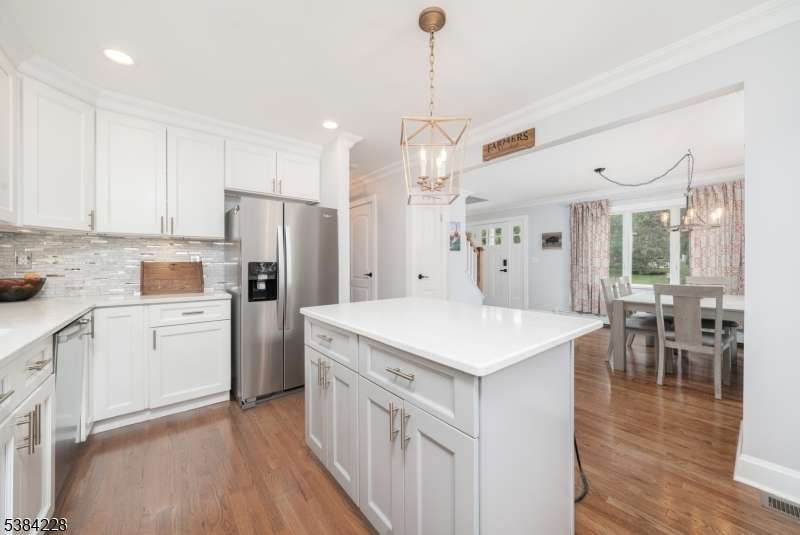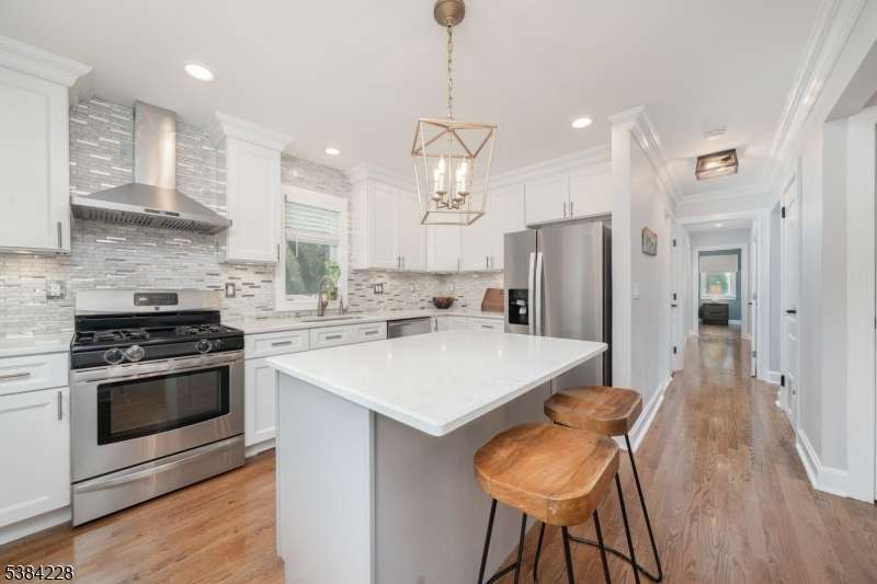 Welcome home to this fully renovated and expanded (2022) custom home! The term "turn-key" refers to a home that is ready for immediate use and 19 Hickson does not disappoint! The first floor is highlighted by the new primary suite with private entrance, stunning bath, WIC and an abundance of natural light from three sides! The bright and open kitchen/dining floor plan offers stunning quartz countertops, stainless steel appliances, modern custom lighting and an egress to the patio. A spacious living room and full bath complete the first floor. Upstairs is a third stunning full bath, three spacious bedrooms and a laundry room. Each bedroom has natural sunlight from two sides. The basement level (dry!) will surprise you in terms of quality and space (inclusive of rec room, 2,500 sq. ft home!). An electric fireplace insert and accent wall creates a warm and relaxing recreation/family room environment highlighted by a custom wet bar! There is an abundance of storage space in the basement as well with a bilco egress to the yard. The 425 sq. ft. private patio is ideal for entertaining and opens to a large lush landscaped yard. The location is ideal and this neighborhood is in the heart of New Providence in so many ways! Just 0.5m to Salt Brook Elementary School, 0.4m to Lions Park Playground, 0.2m to bus to Port Authority, 0.75m to NJ Transit train station, 0.5m to vibrant downtown restaurants and shops, and 0.9m to NP Middle/High School and NP Community Pool. Welcome home!