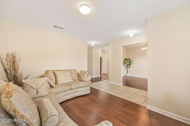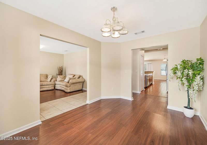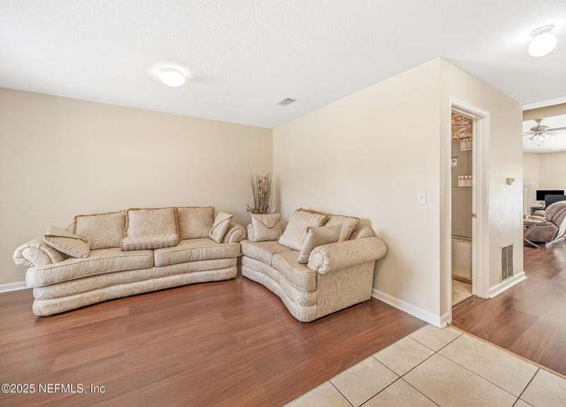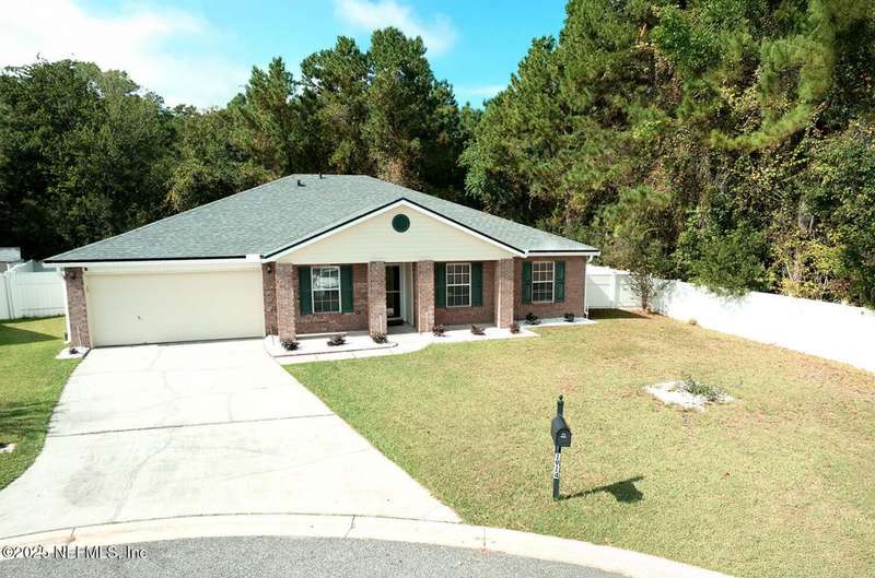 Welcome to this charming home located on a quiet cul-de-sac. Featuring a spacious open floor plan with split bedrooms, this residence offers both comfort and functionality. The large eat-in kitchen flows seamlessly into the formal dining room and living room, perfect for gatherings and family living.The exterior highlights include a brick front with hardy board siding, a yard sprinkler system, and pre-wiring for a security system. The property sits on a generous lot with a backyard that backs up to a preserve, providing privacy and tranquility.Conveniently situated just off Normandy Blvd, the home offers easy access to I-295, Chaffee Rd., and Herlong. The neighborhood amenities include a community pool and a children's playground, making it a wonderful place to call home.