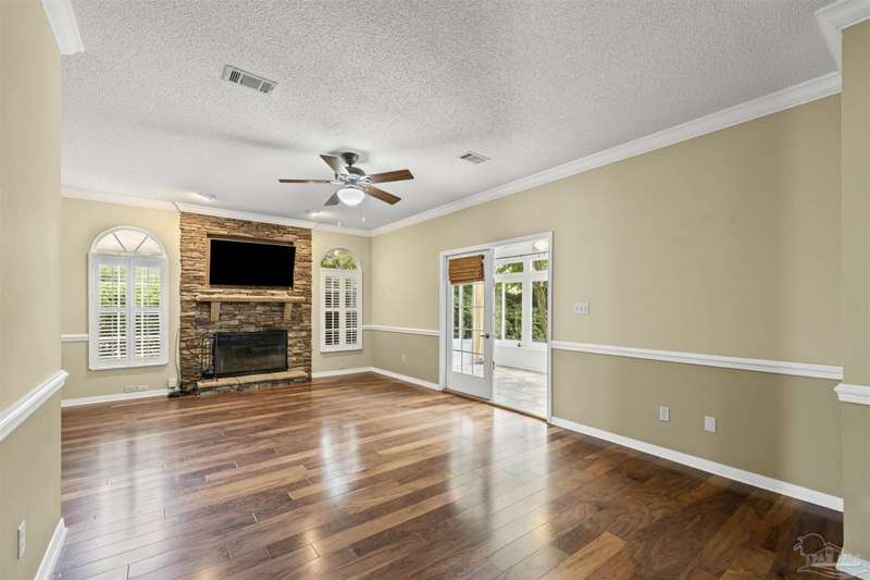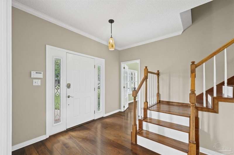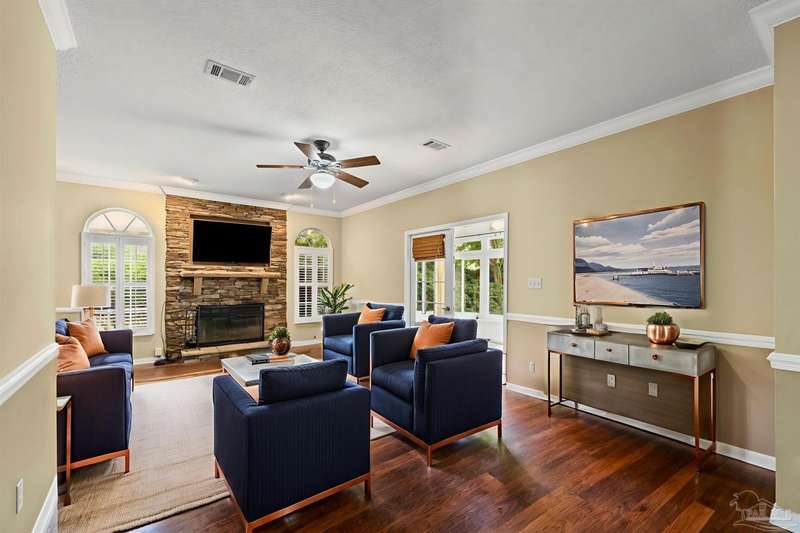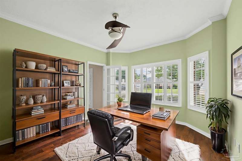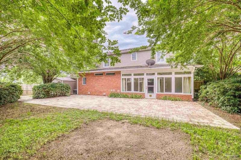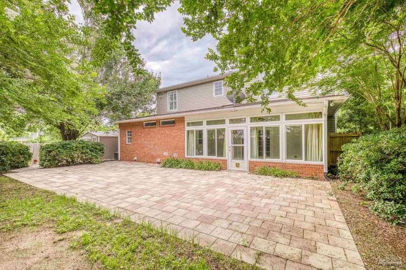 Beautifully maintained and thoughtfully designed two-story home offering space, functionality, and comfort in one of Pensacola's established neighborhoods. This 3-bedroom, 2.5 bath residence features a formal dining or living room, a dedicated home office, and a spacious family room that opens into a sun-filled Florida room-air conditioned for year-round enjoyment. The heart of the home is the eat-in kitchen, ideal for casual meals and gatherings, with easy access to both the dining area and family spaces. Upstairs, you'll find all three generously sized bedrooms, including a primary suite with ample closet space and a private bath. Step outside into a fenced backyard oasis complete with a paver patio, ideal for entertaining or relaxing under the stars. A storage shed offers added convenience for tools, toys, or hobbies. Additional highlights include: NEW ROOF, NEW HVAC 2024, 2-car garage with extra storage space and a quiet, established neighborhood close to schools, shopping, hospitals and parks. This move-in ready home combines traditional charm with modern updates.