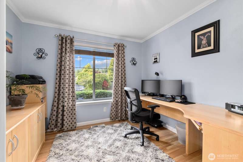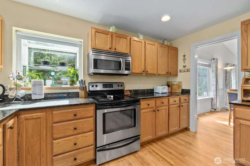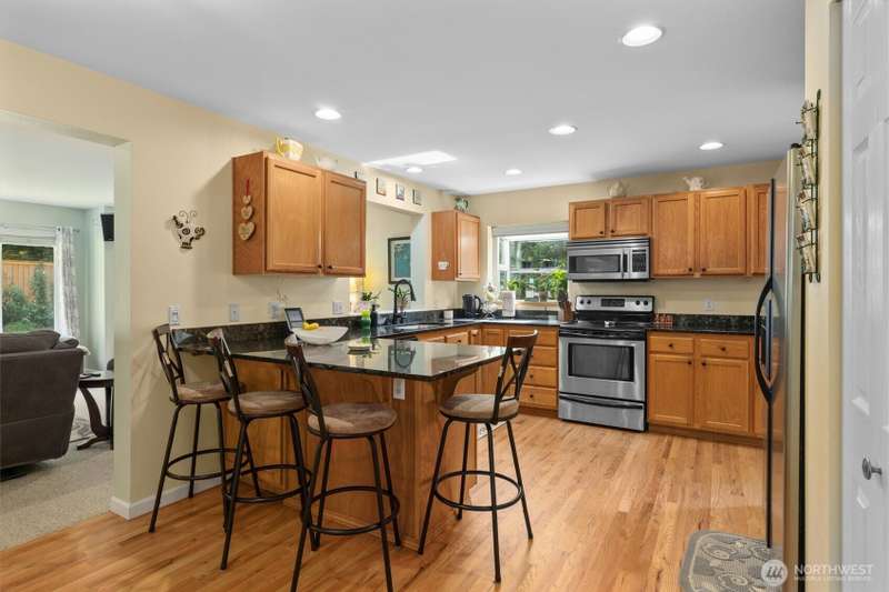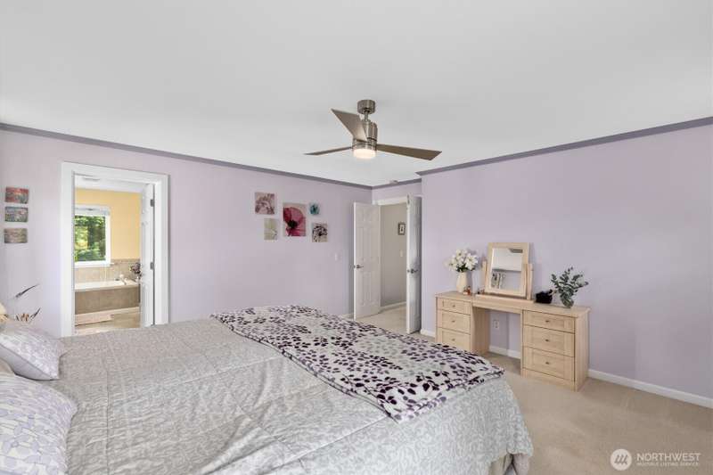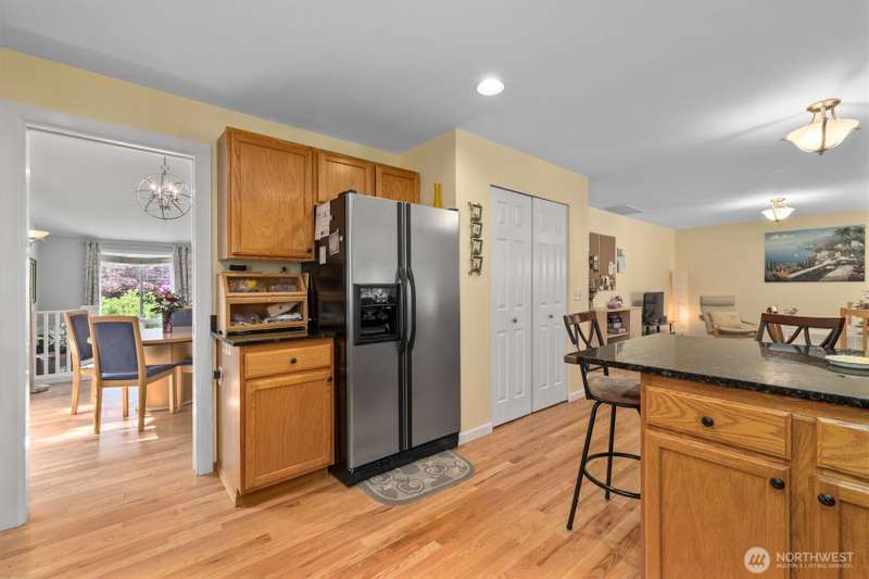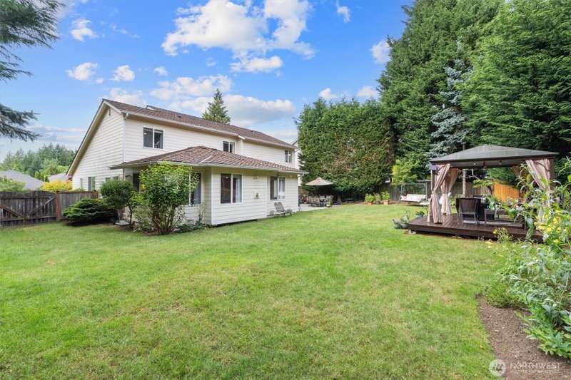 A true Gold Creek Gem. 2,700 sf, 4-bedroom home with light and bright open floor plan, spacious master bedroom, 5 pc master bath and large walk-in closet. New and refinished hardwood floors through to the kitchen and formal dining room. Den located on main floor. Kitchen features granite counter tops with breakfast bar, ss appliances and pantry. Fully fenced expansive backyard includes patio and elevated deck with gazebo. West facing front patio offers comfortable evenings watching the sunset. Additional highlights: modern light fixtures throughout with ceiling fans in the bedrooms, potential RV parking, custom gas fireplace. Recent upgrades: New 50yr Presidential Roof 2019, new AC and furnace 2022. Walking distance to Willis Tucker Park.