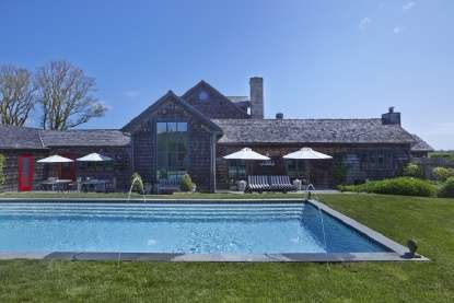 This Sagaponack, south of the highway home offers four bedrooms, four and one half baths, grand living spaces including library, media room and dining room. New Gunite pool and spectacular grounds with spectacular farm field views add to the perfect entertainment house. Located 2 minutes to Sagg Main Beach and local farm stands.