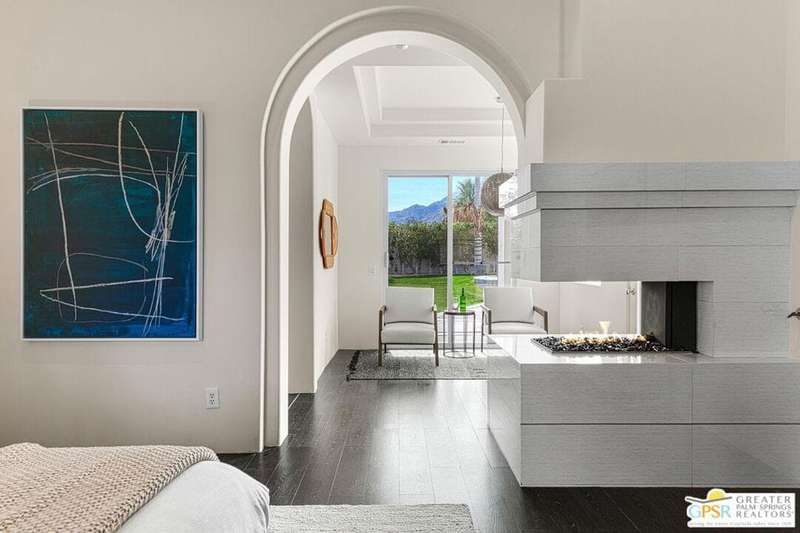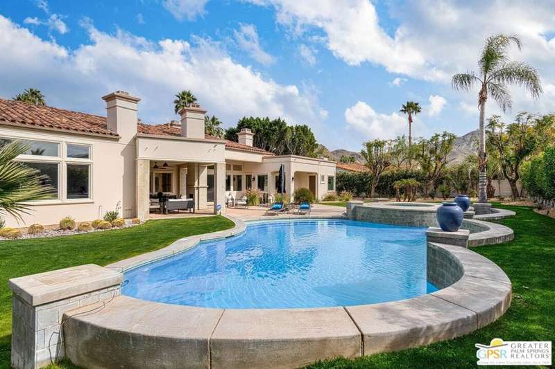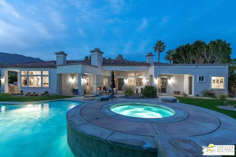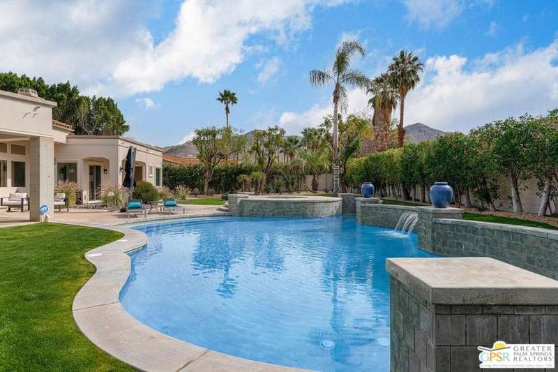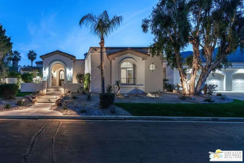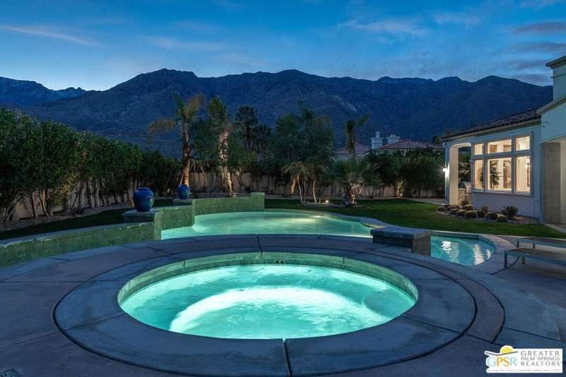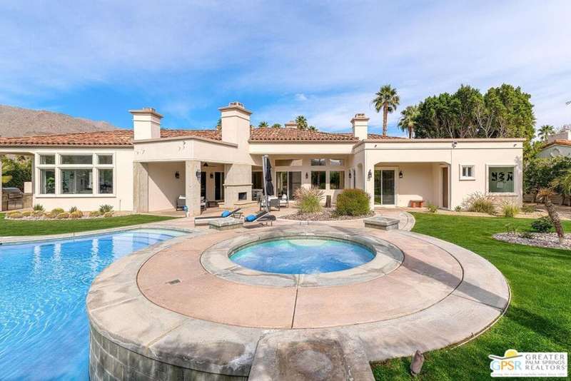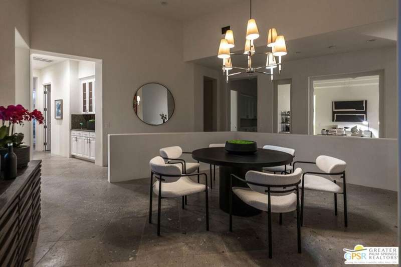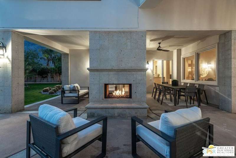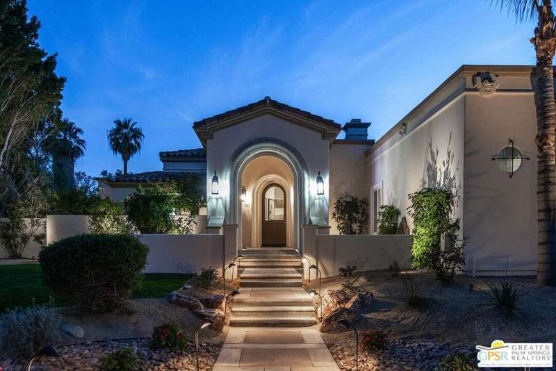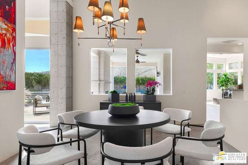 Imagine stepping inside the villa at 64395 Via Risso at Bella Monte in South Palm Springs where sophisticated luxury meets warm and inviting spaces. The interior boasts three elegant fireplaces that serve as the heart of the home with four bedroom suites and six baths. Whether you're gathered in the grand living room, the cozy family room, or the intimate formal dining area, the flicker of the fireplace adds a touch of magic to every moment .The architectural symmetry extends beyond the interior, with a stunning double-sided exterior fireplace that anchors an outdoor living area designed for the ultimate in entertainment and relaxation. Here, the seamless transition from inside to outside living is exemplified by the expansive pool and spa, perfect for soaking up the sun or enjoying the starry Palm Springs nights. The poolside vignettes invite you to lounge, dine al fresco, or simply revel in the panoramic mountain views that encompass the property. Each space within this villa has been thoughtfully crafted to maximize the enjoyment of the surrounding beauty. Property has 45-owned solar panels. Large windows and sliding glass doors ensure that every room is a vantage point for the breathtaking vistas. With multiple vignettes inside, residents and guests can find their own perfect spot to relax, engage in conversation, or indulge in quiet reflection, all while enveloped by the villa's serene atmosphere and the picturesque landscape that defines South Palm Springs living.