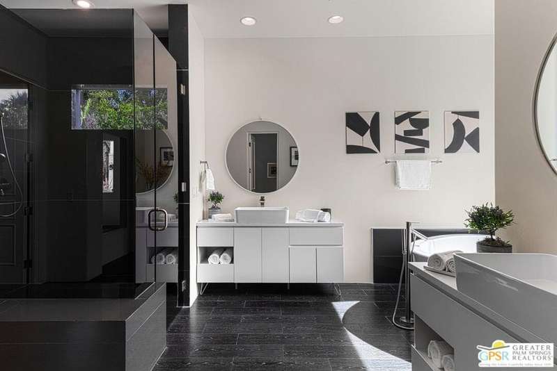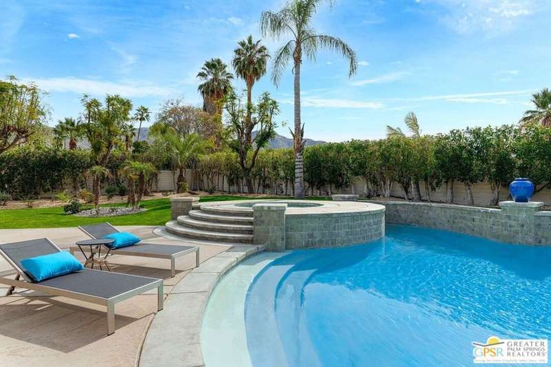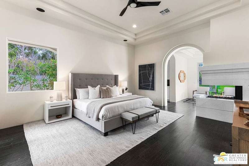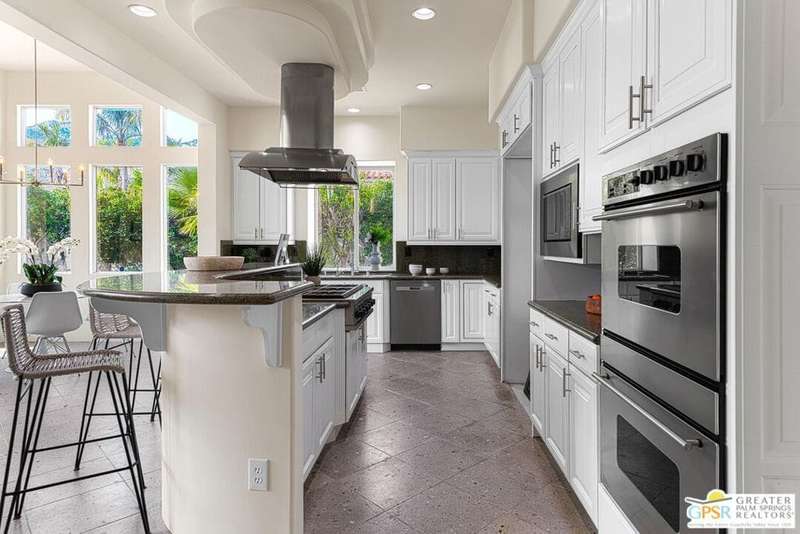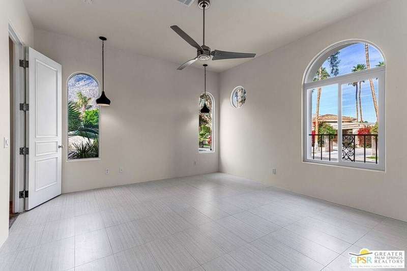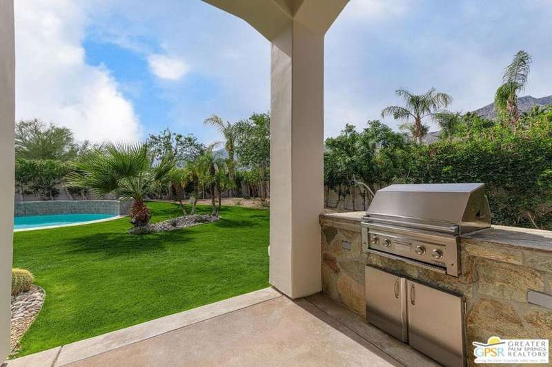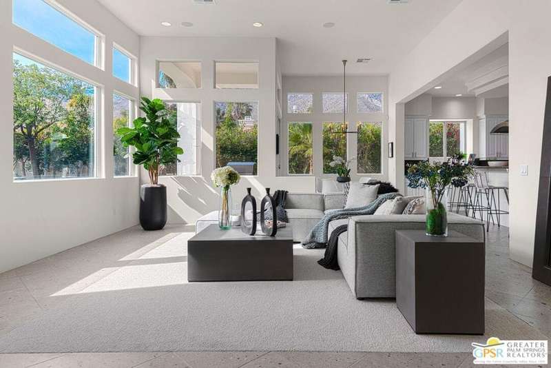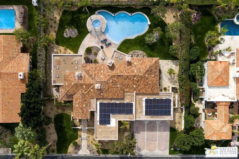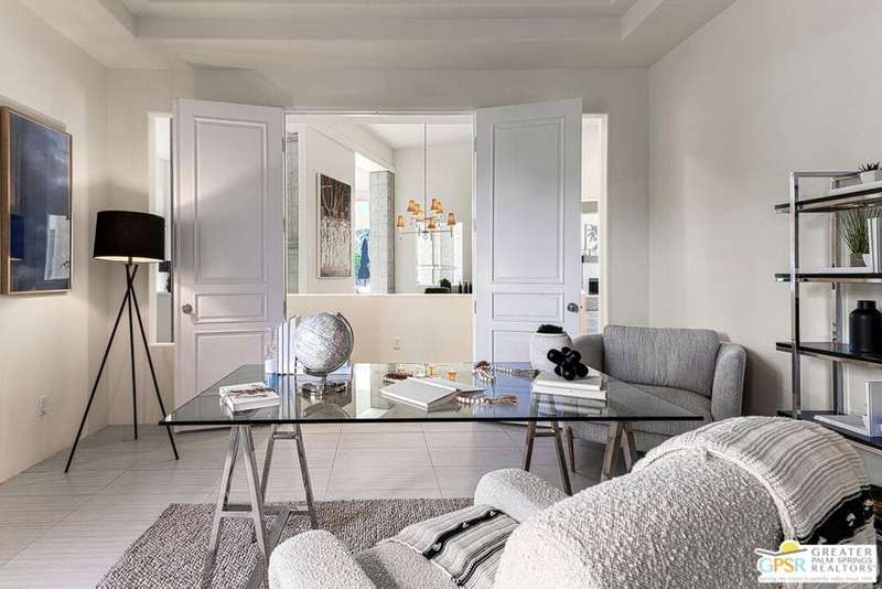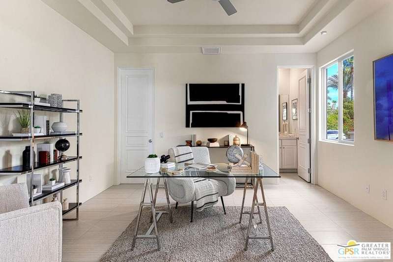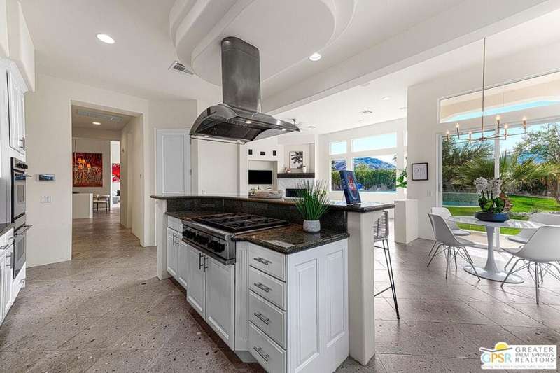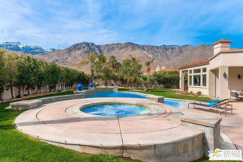 Imagine stepping inside the villa at 64395 Via Risso at Bella Monte in South Palm Springs where sophisticated luxury meets warm and inviting spaces. The interior boasts three elegant fireplaces that serve as the heart of the home with four bedroom suites and six baths. Whether you're gathered in the grand living room, the cozy family room, or the intimate formal dining area, the flicker of the fireplace adds a touch of magic to every moment .The architectural symmetry extends beyond the interior, with a stunning double-sided exterior fireplace that anchors an outdoor living area designed for the ultimate in entertainment and relaxation. Here, the seamless transition from inside to outside living is exemplified by the expansive pool and spa, perfect for soaking up the sun or enjoying the starry Palm Springs nights. The poolside vignettes invite you to lounge, dine al fresco, or simply revel in the panoramic mountain views that encompass the property. Each space within this villa has been thoughtfully crafted to maximize the enjoyment of the surrounding beauty. Property has 45-owned solar panels. Large windows and sliding glass doors ensure that every room is a vantage point for the breathtaking vistas. With multiple vignettes inside, residents and guests can find their own perfect spot to relax, engage in conversation, or indulge in quiet reflection, all while enveloped by the villa's serene atmosphere and the picturesque landscape that defines South Palm Springs living.