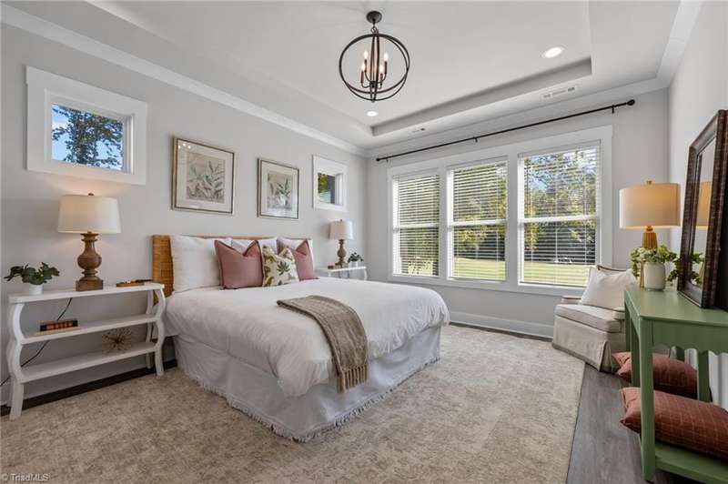 Welcome to this stunning golf course home in Grandover's Montrose Village, nestled along Grandover Resorts West Golf Course. Charming rocking-chair front porch sets the tone for this 3 Bed, 3 full Bath property. Main-level Primary Suite offers a serene retreat with spa-like Bath & spacious walk-in closet. 2nd Bed & full Bath also located on main level, ideal for guests or multi-generational living. Living Room area filled with natural light, sweeping golf course views, & flows effortlessly into chefs Kitchen & sunny Breakfast nook. Upstairs you'll find a versatile Bonus Rm, 3rd Bedrm, & 3rd full Bath. Unwind with your morning coffee on the back deck overlooking the golf course, or relax in the private screened porch. Enjoy access to Grandover Swim & Racquet Club, featuring a Jr. Olympic pool, tennis courts, & fitness center. Close proximity to Sedgefield CC, PTI Airport, restaurants, major highways & more. Schedule your private tour today.