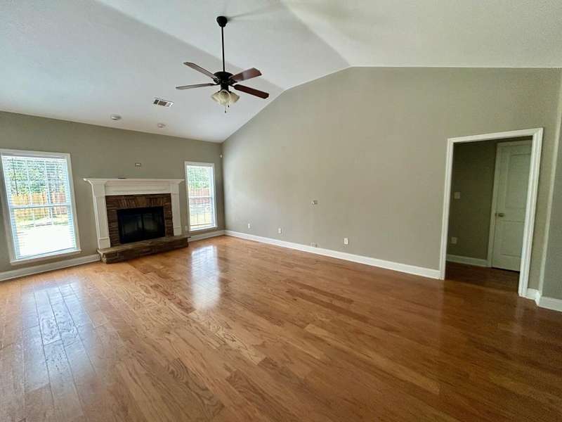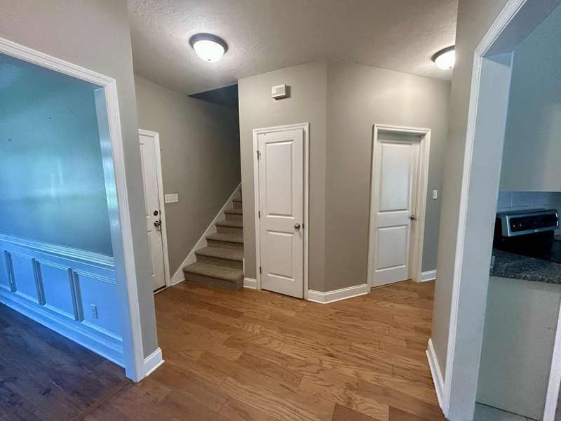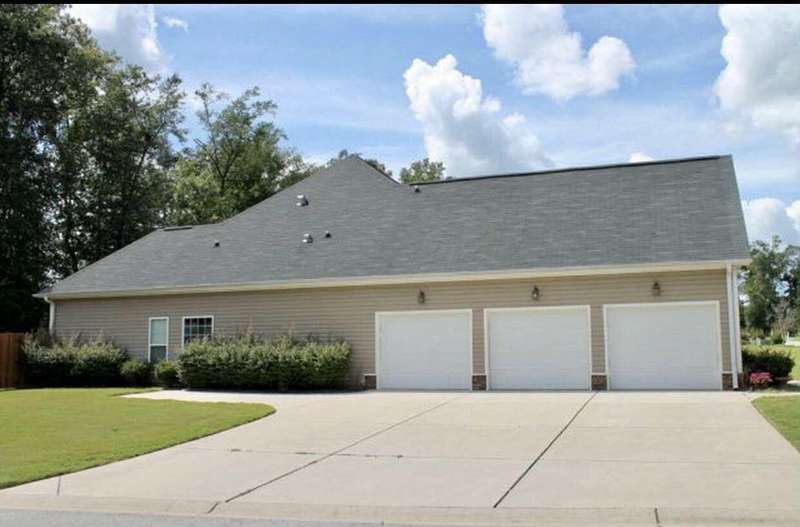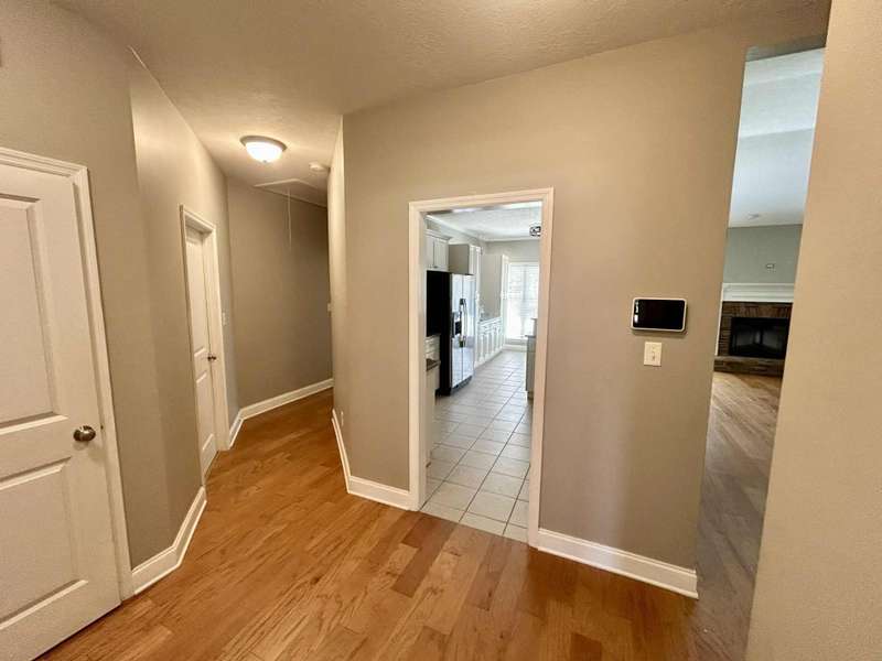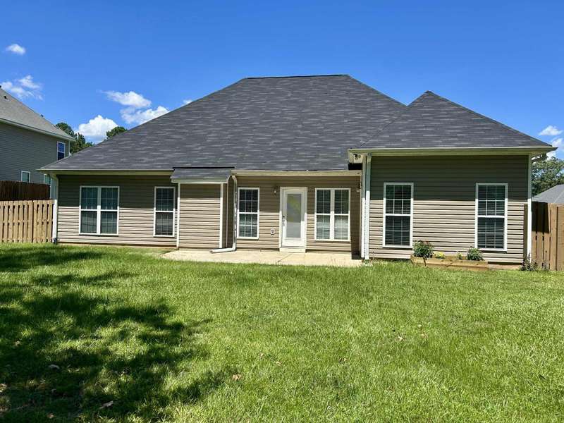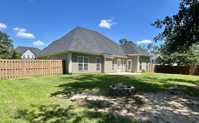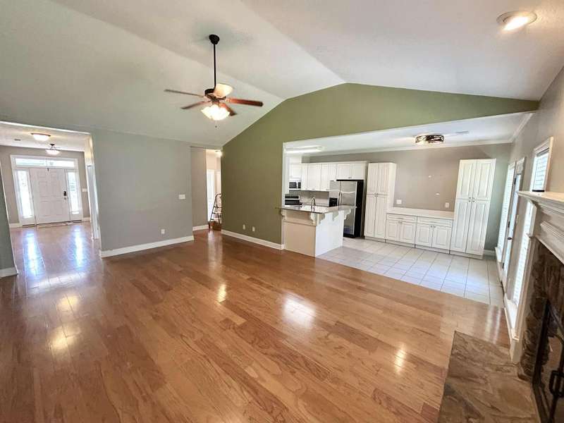 Welcome to this stunning home situated on a spacious and flat corner lot in the highly sought-after Canterbury Farms community. Thoughtfully designed living space offers comfort, functionality, and style. The open-concept floor plan is filled with natural light from large windows throughout, highlighting the gorgeous wood flooring in the entryway, great room, hallway, and owner's suite. The inviting great room features a soaring ceiling and a cozy electric stone fireplace, perfect for gatherings. The kitchen is a chef's dream with tile flooring, granite countertops, tile backsplash, stainless steel appliances, breakfast bar, and a vented exhaust fan. Custom cabinetry has been recently added in the breakfast area for added charm and storage. The split-bedroom layout offers privacy, with the owner's suite tucked away and featuring a tray ceiling, direct patio access, and a luxurious ensuite bath with double vanity, jetted garden tub, separate tiled shower, and a large custom walk-in closet. Three additional bedrooms and two full bathrooms are conveniently located on the main floor. Upstairs, the expansive Rec room with a half bath can easily serve as a fifth bedroom, media room, playroom, or home office. Parking is also no issue, with the attached 3 car garage featuring 3 separate entry bays with automatic opener. Back yard backs up to community owned greenspace buffer and is privacy fenced and has a large patio and fire pit.