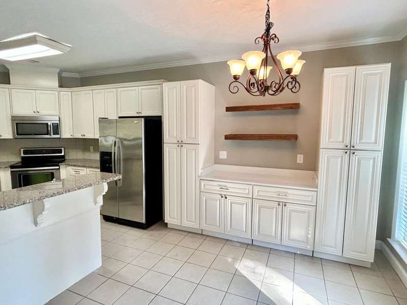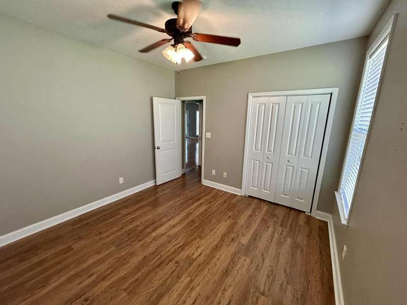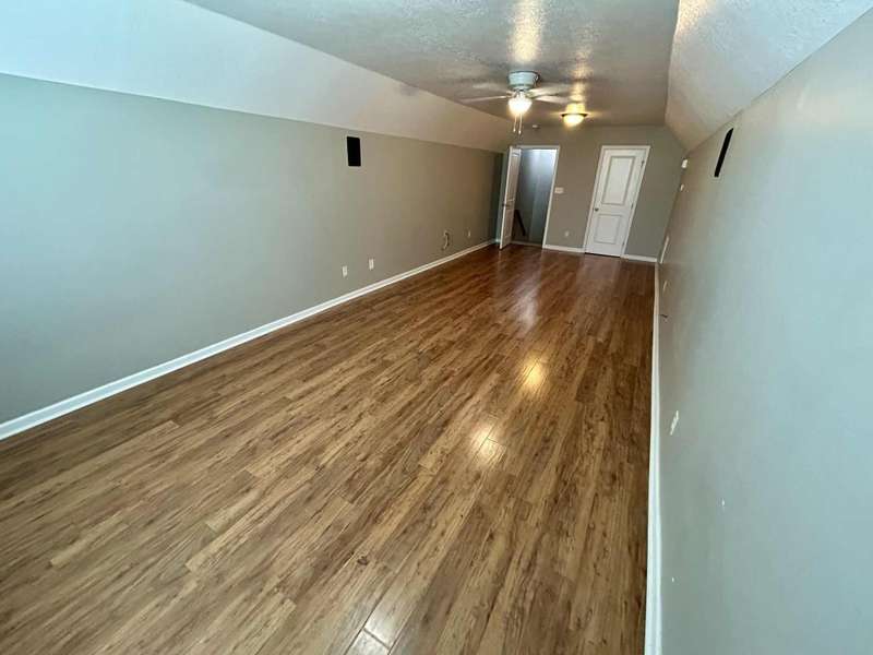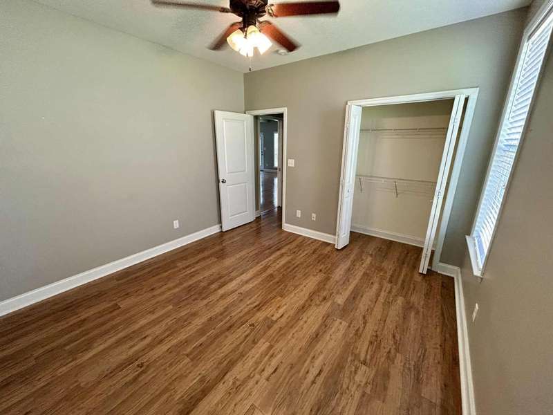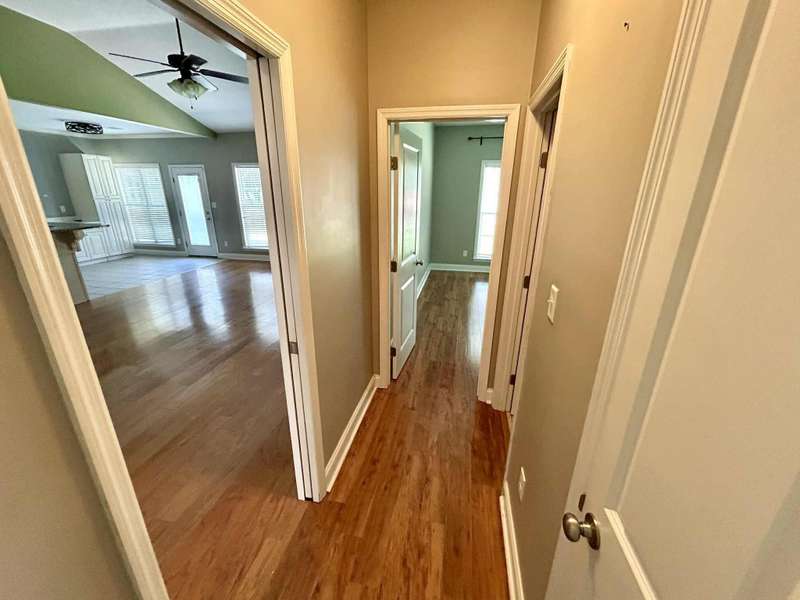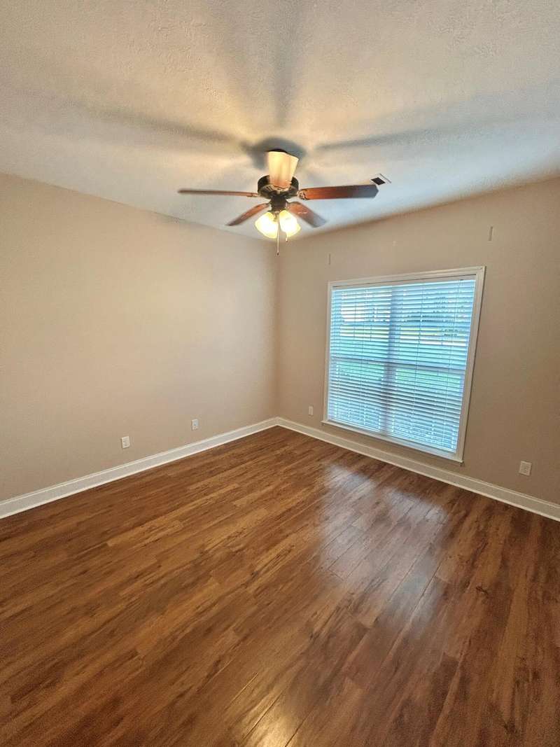 Welcome to this stunning home situated on a spacious and flat corner lot in the highly sought-after Canterbury Farms community. Thoughtfully designed living space offers comfort, functionality, and style. The open-concept floor plan is filled with natural light from large windows throughout, highlighting the gorgeous wood flooring in the entryway, great room, hallway, and owner's suite. The inviting great room features a soaring ceiling and a cozy electric stone fireplace, perfect for gatherings. The kitchen is a chef's dream with tile flooring, granite countertops, tile backsplash, stainless steel appliances, breakfast bar, and a vented exhaust fan. Custom cabinetry has been recently added in the breakfast area for added charm and storage. The split-bedroom layout offers privacy, with the owner's suite tucked away and featuring a tray ceiling, direct patio access, and a luxurious ensuite bath with double vanity, jetted garden tub, separate tiled shower, and a large custom walk-in closet. Three additional bedrooms and two full bathrooms are conveniently located on the main floor. Upstairs, the expansive Rec room with a half bath can easily serve as a fifth bedroom, media room, playroom, or home office. Parking is also no issue, with the attached 3 car garage featuring 3 separate entry bays with automatic opener. Back yard backs up to community owned greenspace buffer and is privacy fenced and has a large patio and fire pit.