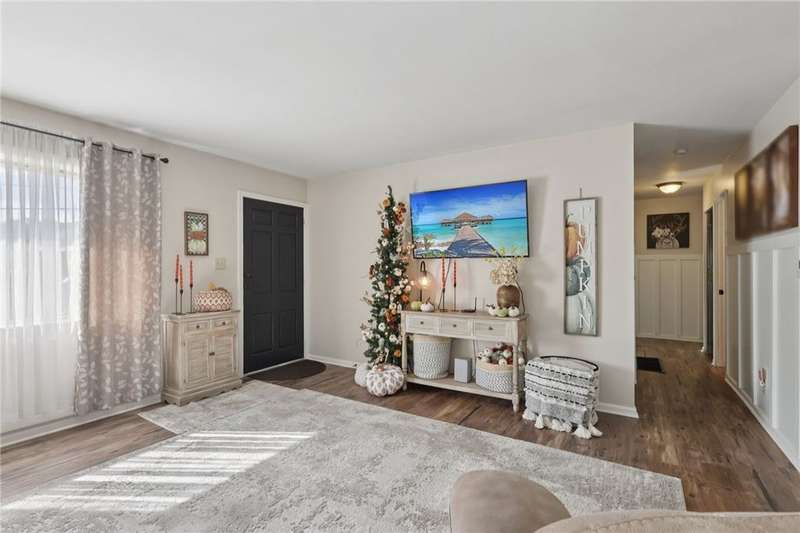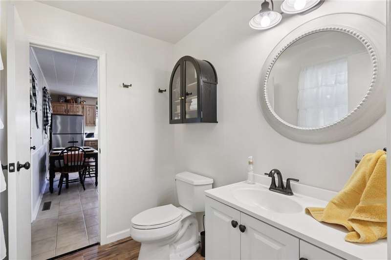 This absolutely stunning showplace combines unsurpassed style, modern updates, and exceptional comfort. The awe-inspiring, immaculate interior is enriched with designer touches throughout. A sun-drenched living room underscored in rustic wood-grain flooring, flows seamlessly into an inviting eat-in country kitchen showcasing ceramic tile, wainscoting and abundant cabinetry. An enclosed rear porch overlooks a semi-private backyard featuring a circular concrete entertaining patio, perfect for relaxing or gathering with friends. Wood-grain flooring continues down the hallway accented by wainscoting, leading to three comfortable bedrooms. The primary bedroom features a spacious en-suite powder room, and both bathrooms have been tastefully updated with modern finishes. The walkout basement offers direct access to the garage and hosts a cozy family room, laundry area and storage room. Meticulously maintained and beautifully updated, this home is sure to impress the most discriminating buyer.