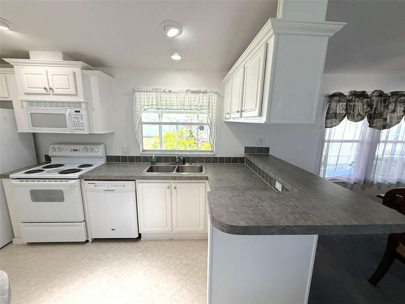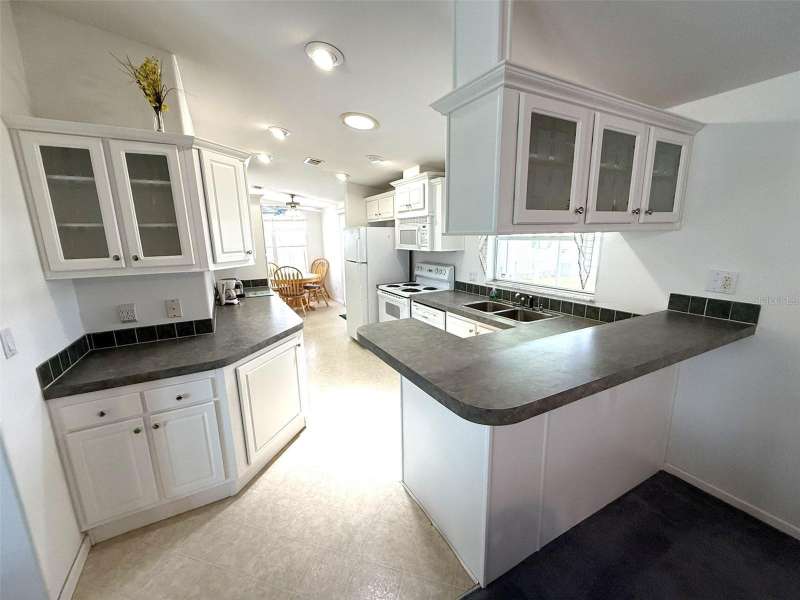 Welcome to this spacious 2005 two-bedroom, two bathroom manufactured home located in the desirable waterfront community of Harbor Cove. This well-maintained home offers a bright and open split bedroom floor plan with vaulted ceilings throughout. The large eat-in kitchen includes plenty of cabinet space and sliding glass doors that lead to a generous screened-in lanai, perfect for enjoying Florida’s beautiful weather. The primary suite features two closets and an ensuite bath with dual sinks, providing both comfort and convenience. A charming foyer offers a flexible space that can easily be used as a den or sitting area. The laundry is located inside the home for added ease. Important updates include a new roof in 2022, AC in 2019, and a new hot water heater in 2022. Harbor Cove is a well-established and welcoming 55+ waterfront community known for its active lifestyle and exceptional amenities. Located along the Myakka River with direct access to the Gulf of Mexico, it’s a haven for boating enthusiasts. Residents enjoy a private marina, boat ramp, heated pool and spa, fitness center, clubhouse with year-round activities, tennis, shuffleboard, and more. Whether you're looking to stay active or simply relax by the water, Harbor Cove offers the perfect setting to enjoy the Florida lifestyle.