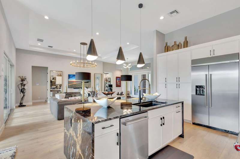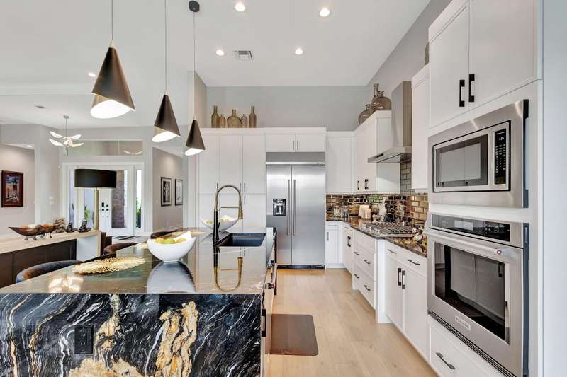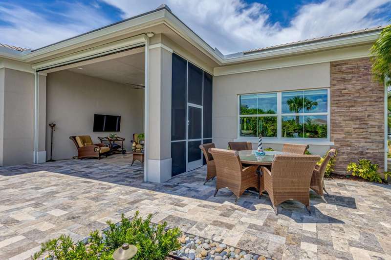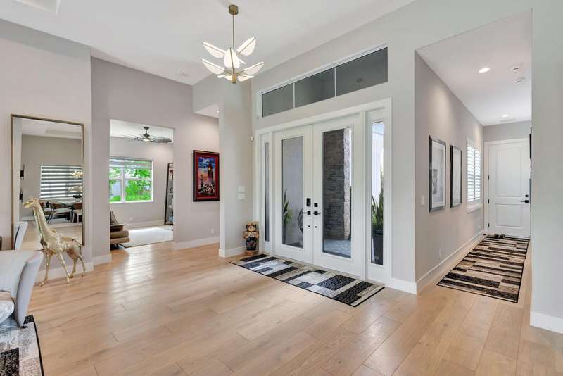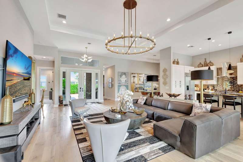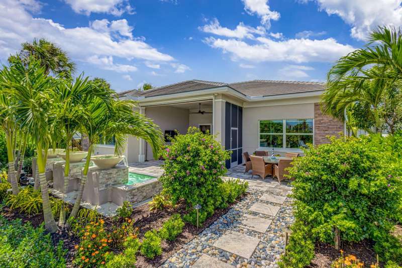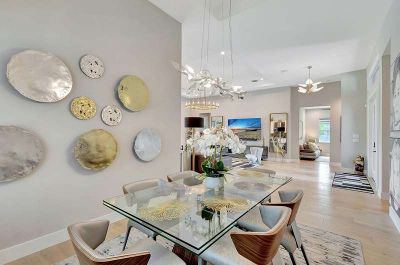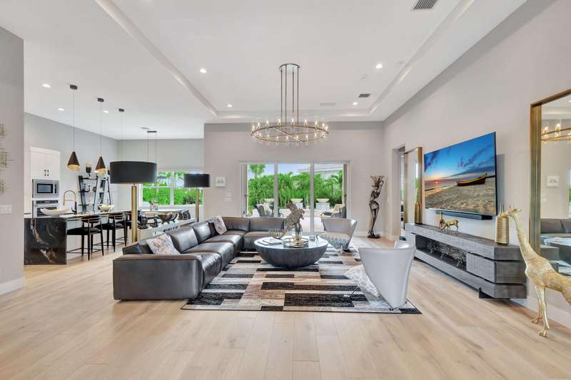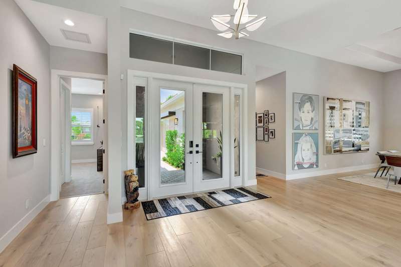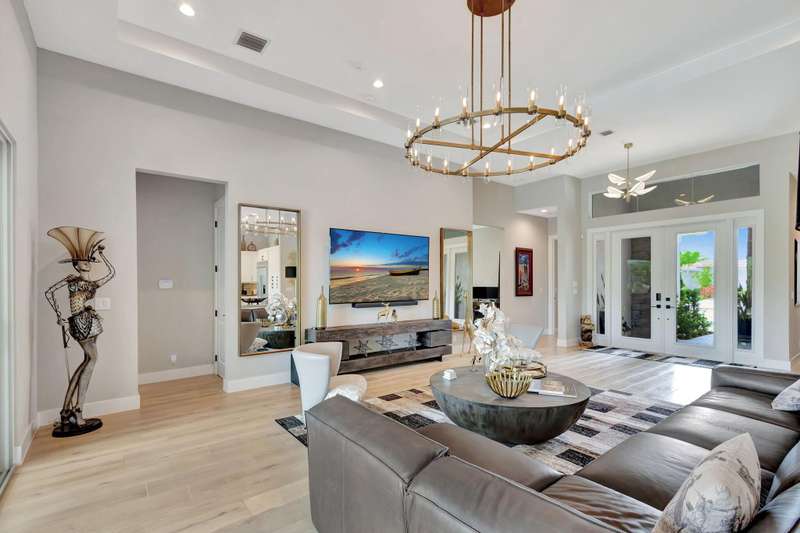 Stunning 3-bedroom, 3 bath and office single story home nestled in the premier Regency neighborhood located in the Avenir Community in Palm Beach Gardens. This beautifully designed home spans 2,729 sq ft of living space and features, impact glass throughout, volume ceilings, warm wood flooring with every upgrade imaginable. The expanded Great room with transition windows offers an abundance of natural light and serene vistas, an intimate space for relaxing or entertaining. The gourmet kitchen boasts upgraded appliances, an oversized island, spacious breakfast nook and tranquil views of the outdoor paradise. The luxurious expanded primary suite is a true retreat with views of the outdoor water features and lush landscaping. The primary bath is complete with double sinks, a soaking tub, a