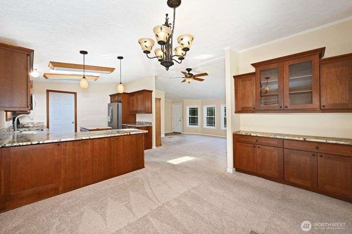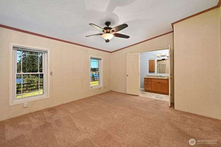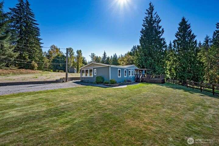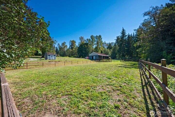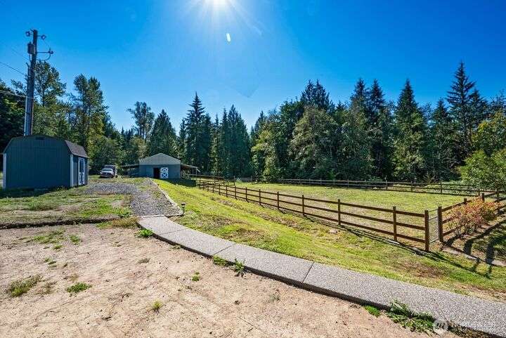 Welcome to your dream equestrian retreat! Nestled on 6.5 acres w/sweeping Lake Roesiger views, this property is built for horses, hobbies & more. A fully equipped barn offers 4 stalls, a tack room, power, hot/cold water, fenced pastures, a riding arena & boat/RV storage w/30-amp hookup. Thoughtful updates include Hardie siding (2024), Champion dbl-pane windows, and a furnace w/heat pump (2023). An open and flowing layout that features solid cherry cabinets, granite counters & ss appliances. Primary suite boasts a 5-piece bath, dual closets and a special element of privacy. Both additional bedrooms offer walk-in closets. Wired for generator, ample parking & close to a public boat launch. An extraordinary location and property!