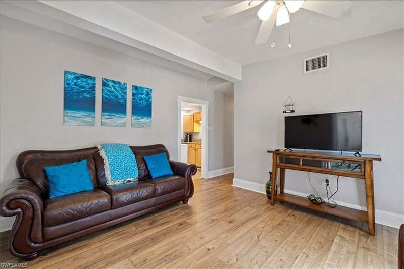 REDUCED PRICE! Welcome to your dream waterfront oasis on a tranquil canal with direct access to Charlotte Harbor and the Gulf of Mexico. This charming 3-bedroom, 2-bathroom home offers beautifully designed living spaces. The open-concept floor plan posses vaulted ceilings and stylish hardwood laminate flooring throughout. The remodeled kitchen features granite countertops and modern appliances, perfect for culinary adventures. Enjoy breathtaking water views from the spacious Florida room, an ideal spot for relaxing or entertaining guests. Step outside to the screened lanai, where you'll find a dock complete with a fish prep station with water and electric - a fisherman's paradise. The oversized backyard, adorned with vinyl fencing, offers privacy and a generous shed for added storage. This home is turnkey and a true hidden gem, blending comfort and convenience with a touch of coastal elegance. Make this waterfront retreat yours today!
