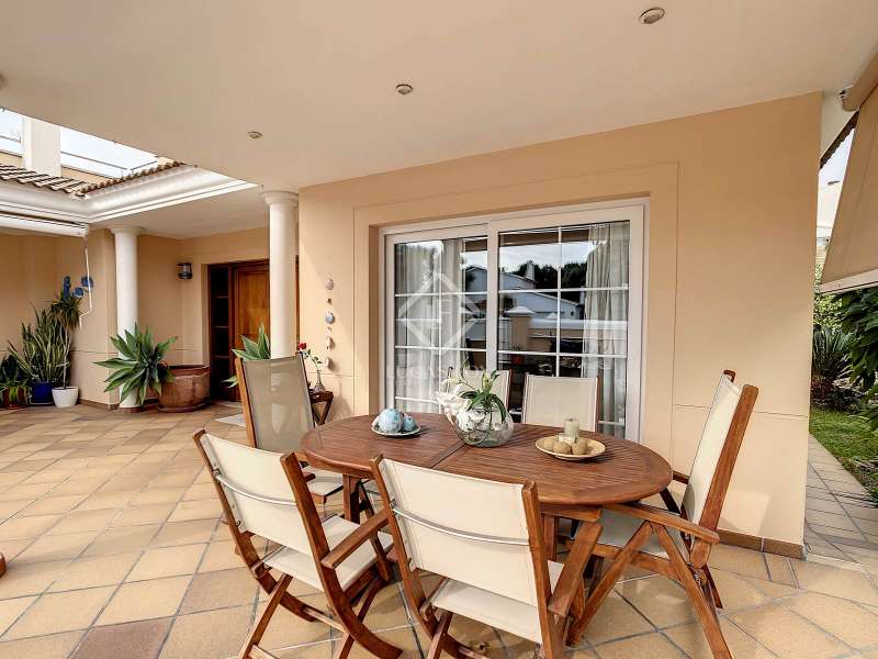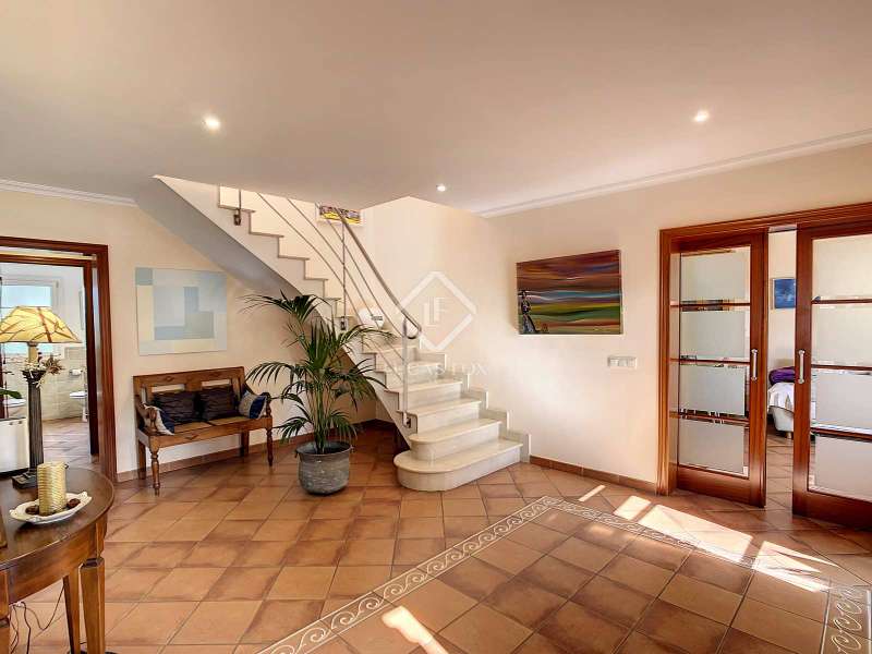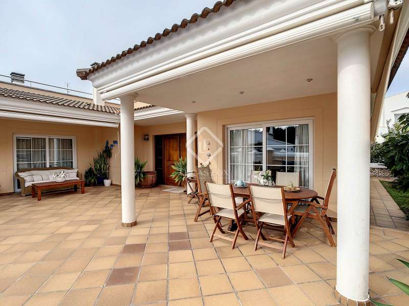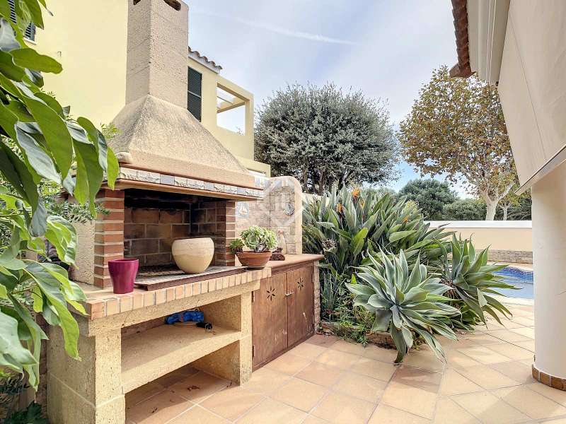 Lucas Fox presents this fantastic contemporary style villa of 433 m² located on a 500 m² plot in one of the best residential areas of Ciutadella de Menorca and a few meters from the centre. The property is distributed over three floors. At the entrance of the house, we find two beautiful porch areas , the pool and barbecue area. The ground floor welcomes us with an impressive entrance hall- hall with a marble staircase. On the left, we access through sliding windows the spacious living-dining room with a wood-burning fireplace and access to a covered porch. To the right of the entrance hall and crossing the same type of sliding doors, but with beveled glass, we enter the spacious kitchen- dining room with a Catalan vaulting ceiling and access to a covered porch, next to the barbecue, to enjoy wonderful evenings with the family. and/or friends. At the access from the kitchen, we have the utility room and the clothesline area. From the entrance hall we access a hall where we find a double bedroom with a built-in wardrobe , a bathroom and the main bedroom with a dressing room and a private bathroom. Climbing the beautiful marble staircase, we reach the first floor where we have a living room with access to a terrace, a small hall with access to two double bedrooms with built-in wardrobes and also access to a terrace, and a bathroom. From the entrance hall, we go down to the lower ground floor where we have an impressive 155 m² garage with rooms for different uses, such as a gym, storage rooms, kitchen- dining room room with a Catalan vaulting ceiling for celebrations and views of the interior of the pool. Additionally, this floor has an exterior bathroom to serve the pool area. Exterior we find a beautiful fully paved entrance area with a 23.70 m² swimming pool, two covered porches, barbecue area and garden area. The house was built with high quality materials. It has underfloor heating, Daikin air conditioning and heat pump splits, solid teak interior carpentry on doors and built-in wardrobes, double-glazed Climalit exterior carpentry, exterior and interior thermal insulation, LED lights and a perimeter insulation pit. Without a doubt, an ideal property in impeccable condition to live all year round or spend time with family and/or friends. Contact us for more information or to arrange a visit.