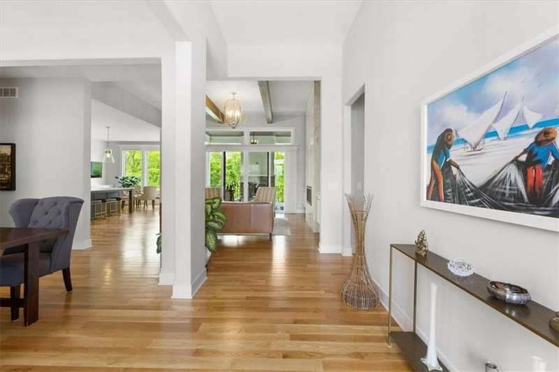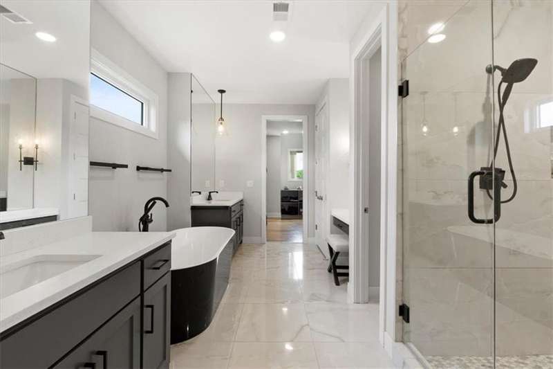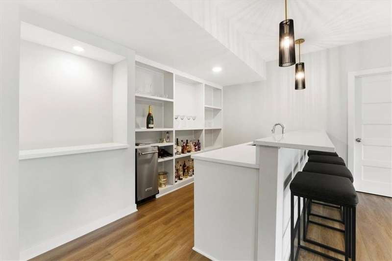 Welcome to this stunning 1.5-story 5 bedroom home, nestled on a premium lot backing to trees and green space in the coveted Preserve at Forest Ridge Estates. From the moment you enter, youll be impressed by the attention to detail and thoughtful layout that blends luxury, comfort, and functionality. Gorgeous hardwoods throughout first 2 levels.The spacious great room is a true centerpiece, featuring custom built-ins, designer finishes & large windows that bathe the space in natural light. Step directly from the great room onto the oversized, covered patio w/fireplaceperfect for hosting! The gourmet kitchen is a chefs dream, offering an abundance of cabinetry, a large quartz center island, beautiful fixtures, and a walk-through butlers pantry with additional oven for added convenience and storage. Whether you're hosting a formal dinner in the elegant dining room or enjoying casual meals, the open-concept layout ensures seamless traffic flow for any occasion. Also on the main level, youll find a private home office ideal for remote work, along with a luxurious primary suite and bath complete w/ soaker tub, tiled shower, make up counter, HUGE walk in closet w/direct access to the laundry room w/ utility sink and ample folding space. Upstairs, three spacious bedrooms await, including one with its own cozy playroom nook. A generous loft area provides the perfect space for a homework station, TV room, or creative play zone. Bedroom features also include walk in closets, well appointed bathrooms and an extra washer and dryer connection.The finished lower level offers even more living space, luxury vinyl flooring, large rec room with a full barperfect for game nights or hosting guests. A large 5th bedroom and walk-out access to a beautifully landscaped fenced backyard complete this versatile and inviting level. Don't miss the 2 large storage rooms! Taxes and sq ft approximate & should be verified by Buyer/Buyer agent. $1500 Buyer paid initiation fee to HOA.