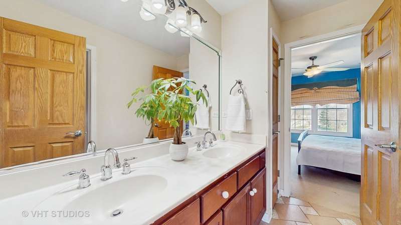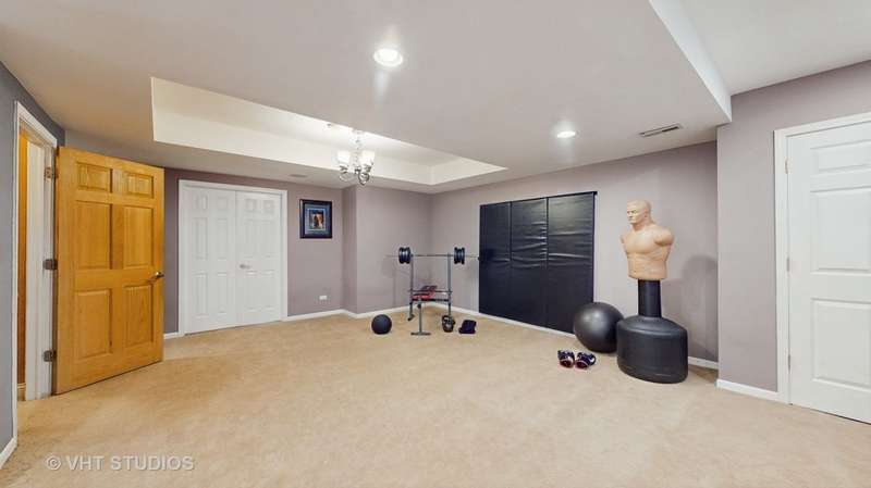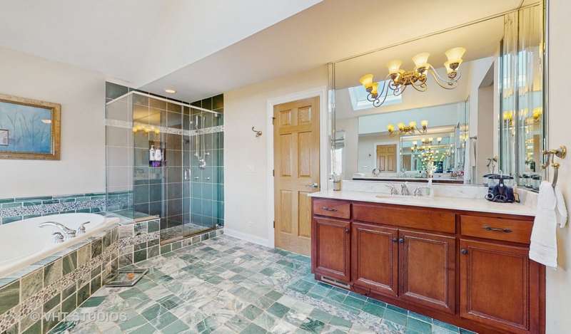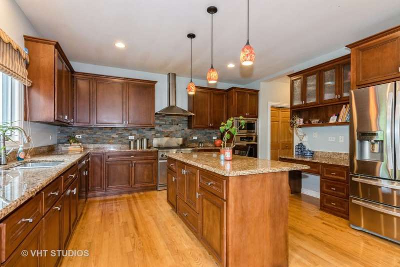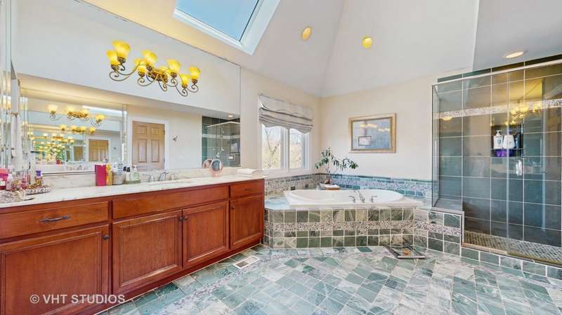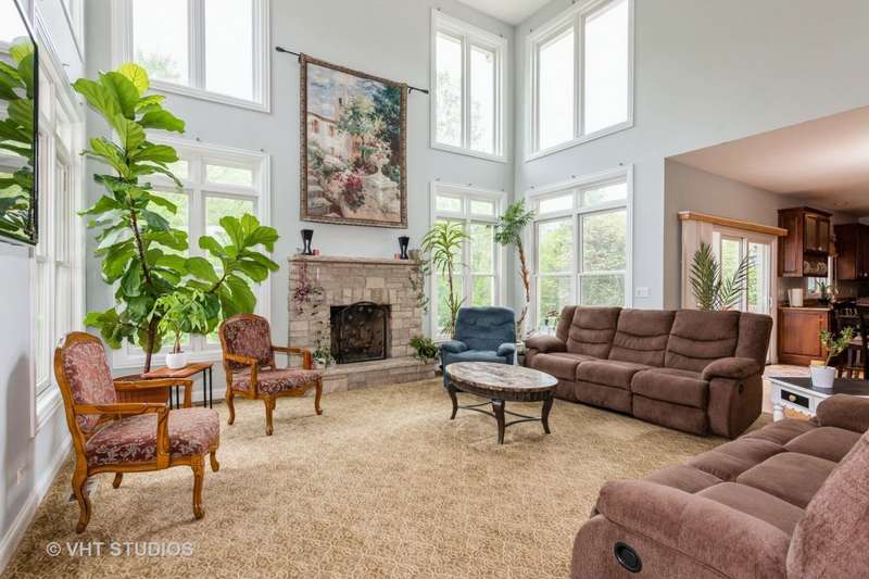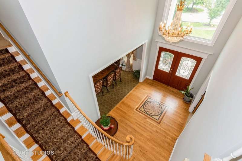 Welcome to this beautifully crafted, all-brick residence tucked away on a quiet cul-de-sac in the sought-after Vittoria Brooke Estates. Step into the grand two-story foyer and be welcomed by expansive, sun-filled living spaces, gleaming hardwood floors, and newly updated front windows that invite the outdoors in. Enjoy serene views from your backyard oasis, complete with trees for added privacy, a refinished deck (2024), and a tranquil pond perfect for fishing or unwinding. The heart of the home-the kitchen-boasts refaced cabinetry (2024), granite countertops, and a generous center island ideal for entertaining. A walk-in pantry and butler's pantry provide ample storage and convenience, flowing seamlessly into the spacious family room with its soaring cathedral ceilings, abundant windows, and cozy fireplace. On the main level, a flexible bonus room sits next to a full bathroom, offering an ideal setup for a home office, guest suite, or in-law arrangement. The primary suite is a true retreat with an oversized walk-in closet and a spa-inspired bath featuring dual vanities, a jacuzzi tub, and a laundry chute for added ease. Skylights and rich stone finishes bring a luxurious touch to the additional bathrooms. The walkout basement adds even more living space with a large rec room, rough-ins for a second kitchen, sauna, and full bath, plus a bonus room ready for your vision. To top it off, the home is equipped with an intercom and audio system that extends to the outdoors-perfect for everyday living or entertaining. Don't miss your chance to own this exceptional home that effortlessly blends comfort, functionality, and style.