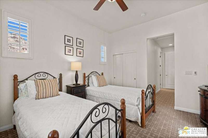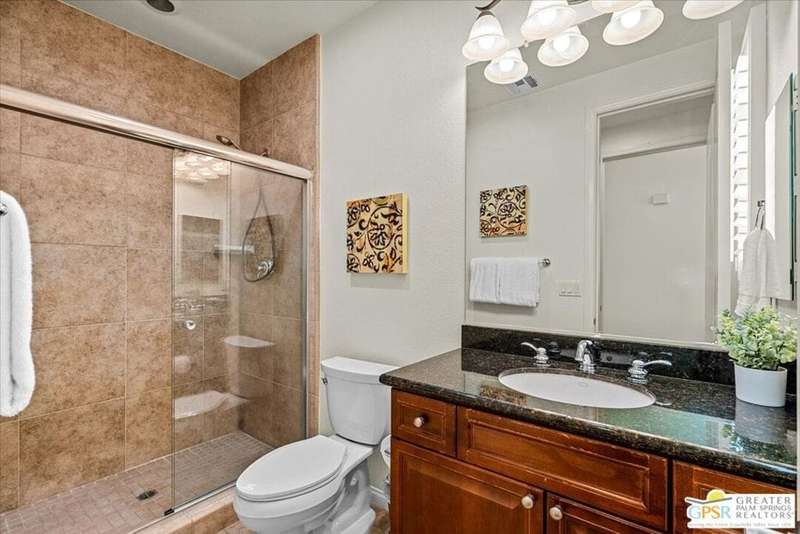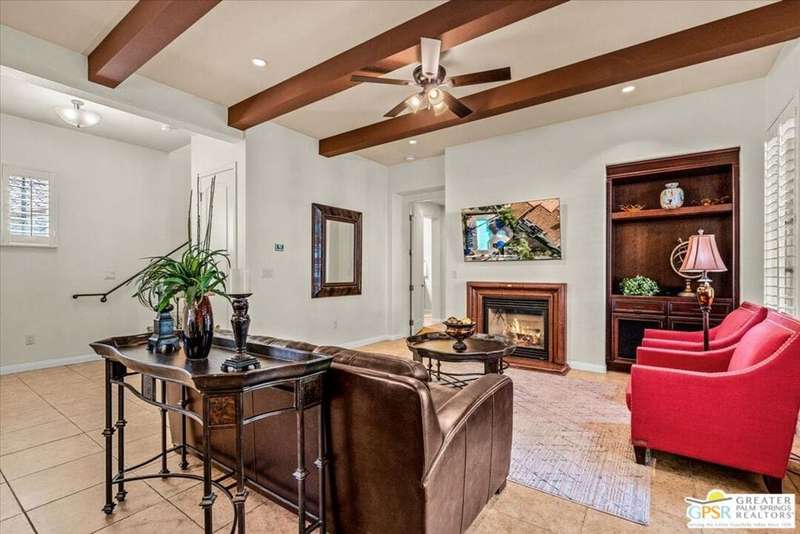 Rare Single-Family Townhome in Legacy Villas - Turnkey & Ready to Enjoy! Discover resort-style living at its finest in this beautifully appointed single-family townhome in the sought-after Legacy Villas community. This rare 3-bedroom, 3.5-bath residence offers 1,961 sq. ft. of thoughtfully designed space featuring two patios - one upstairs and one down - perfect for enjoying morning coffee or sunset views of the majestic Santa Rosa Mountains. Set in a quiet location, your downstairs private patio opens directly to a sparkling pool and spa framed by lush landscaping. Inside, a bright and inviting open floor plan welcomes you, complete with a first floor primary suite with a soaking tub and separate shower. Upstairs are two more ensuite bedrooms, both access the second floor patio. The updated kitchen includes a gas range, stainless steel appliances, and granite countertops with counter bar seating. Fireplaces in both the master suite and family room add warmth and ambiance. Revel in the unmatched amenities of Legacy Villas including 12 saltwater pools (including 2 lap pools), 11 spas, 19 fountains, fitness center, and a clubhouse featuring the Legacy Grill. Community BBQs, outdoor fireplaces, and hammocks can be found throughout the grounds. Whether you're seeking a full-time residence, weekend getaway, or an income-producing vacation rental, this home checks every box. All just minutes from the La Quinta Resort & Spa, Old Town La Quinta, and the Cove hiking trails. The best of La Quinta living at your doorstep!