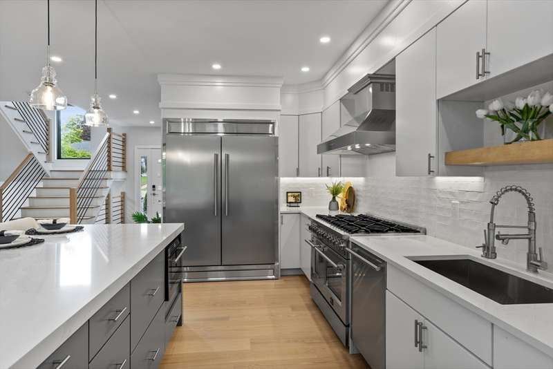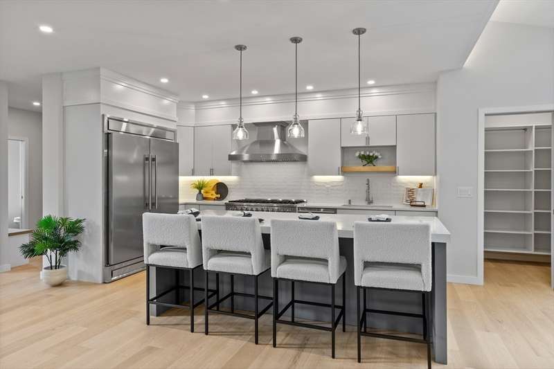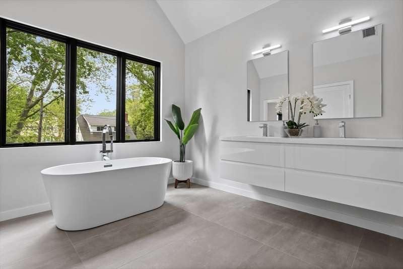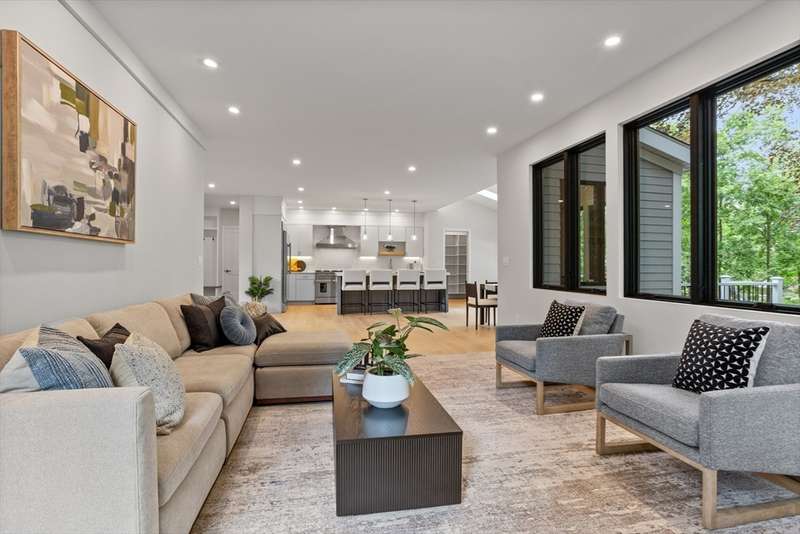 Sophisticated living now even more within reach. This exquisitely designed 5 bedroom, 4 full, 2 1/2 bath residence offers the perfect blend of modern luxury and timeless design. With 4,580 square feet of meticulously crafted living space, this home impresses from the moment you step inside. The open floor plan is ideal for both everyday living and entertaining, featuring a sun-drenched kitchen and living room anchored by a sleek electric fireplace and oversized windows that flood the space with natural light. The heart of the home is the chef's kitchen, complete with high-end SS appliances, generous island, custom cabinetry and large pantry. Flexibility abounds with a first-floor bedroom suite, perfect for guests, in-laws or au pair. Upstairs you'll find four additional bedrooms including a luxurious primary suite with a spa-like bathroom with soaking tub and expansive walk-in closet. Fully finished basement with ample space for family room, exercise space or office.