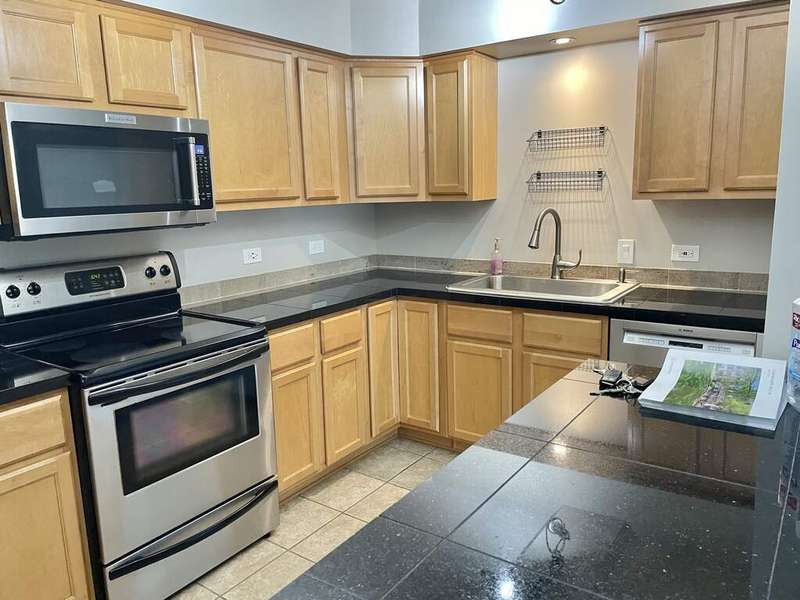 This nicely renovated 1 Bed/1 Bath 1st floor condo in Elevator building is perfect! Laminate floors & tile thru-out. Kitchen-offers granite & SS appliances & opens to Living room allowing natural light & space with slider out to private balcony overlooking the pool. Nice bedroom size with great closet space. New bathroom remodel. Heated garage spot & storage included. Laundry, storage, parking & mail at garage level. You'll love living in peaceful, serene, Whispering Lake. You are surrounded by green space, walking trails & water not to mention the outdoor pool & rentable clubhouse! Available 9-26-25.