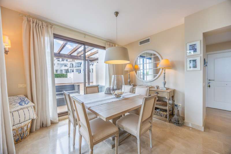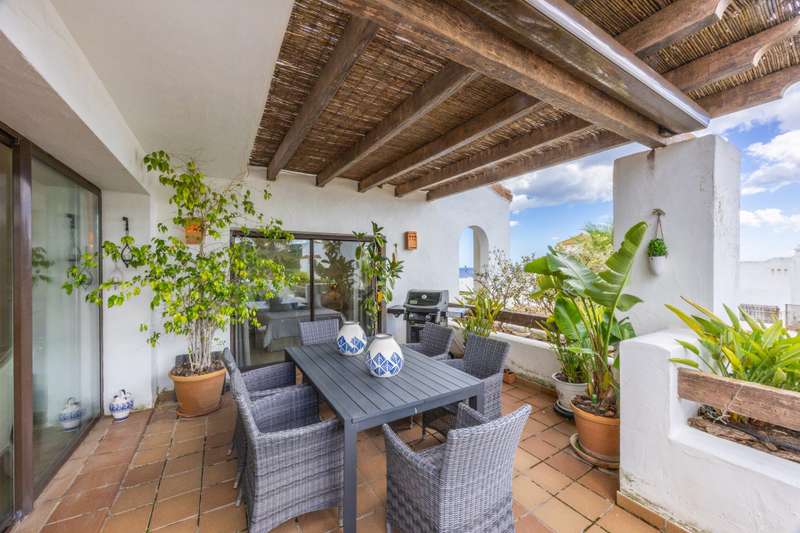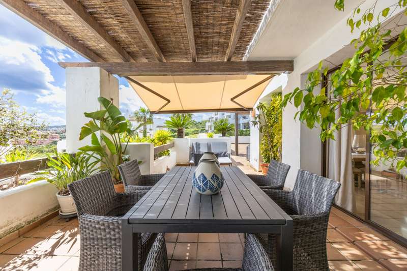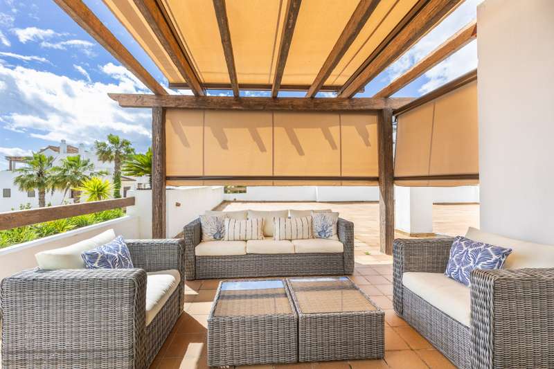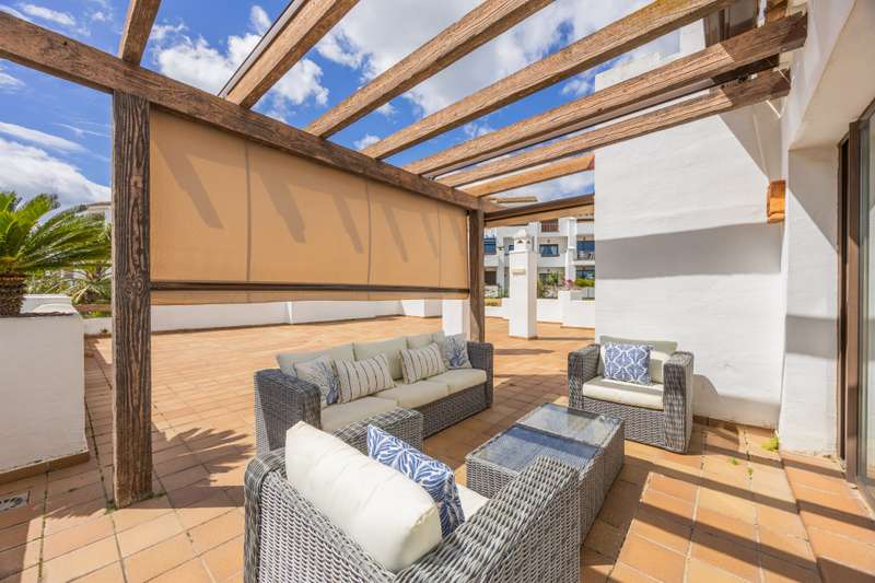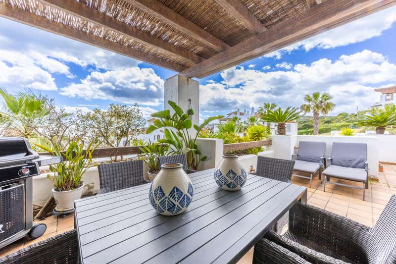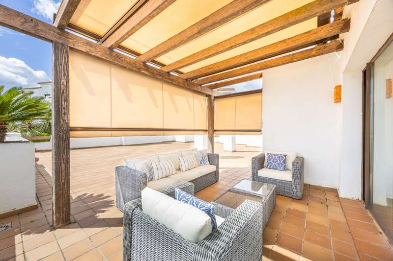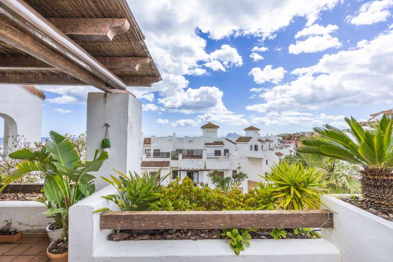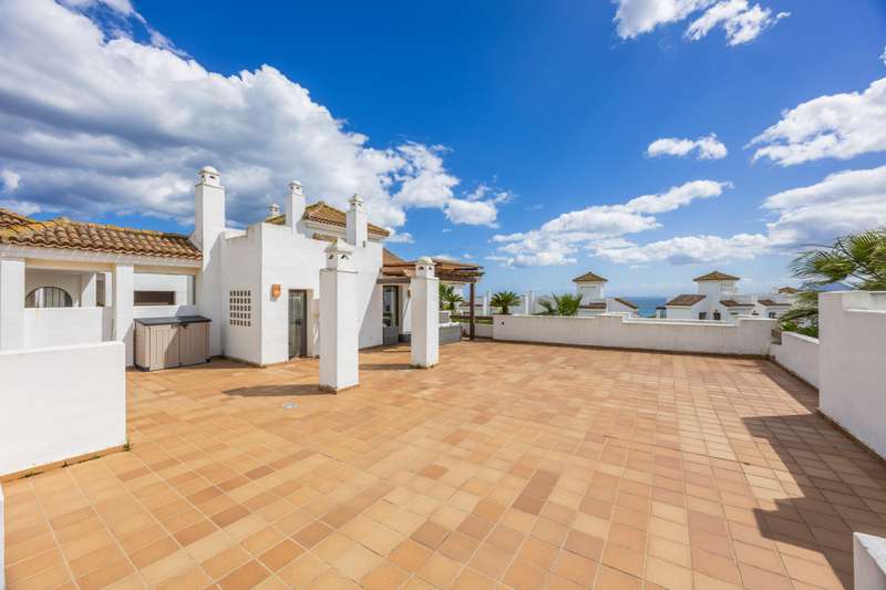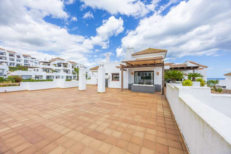 PRICE DROP!! Nestled in a peaceful private development just a few meters from the sea, this penthouse in La Alcaidesa represents a unique opportunity for those seeking to combine comfort, spaciousness, and privileged views in a setting of Mediterranean tranquility. The property opens into a bright, serene, and welcoming living-dining room, connected to a fully equipped kitchen and a practical independent laundry room. It features two double bedrooms and two full bathrooms, one of them en suite, all decorated with a natural elegance that evokes coastal calm. Undoubtedly, the true highlight of this penthouse is its spectacular terrace of approximately 200 m²: an outdoor space to be enjoyed, from breakfasts with the sound of the sea to evenings under the stars, taking in partial views of the Mediterranean and the majestic Rock of Gibraltar. The home is completed by two convenient parking spaces and a private storage room, thus offering extra functionality and comfort for both regular residents and those seeking a well-equipped second home. The development, with Andalusian-style white façades, is surrounded by immaculate gardens and offers several communal swimming pools that invite relaxation and leisure with family or friends. All of this is within a gated environment that guarantees privacy and security. La Alcaidesa is a jewel of the Cadiz coastline, renowned for its tranquil atmosphere, excellent quality of life, and beautiful natural beaches. Surrounded by natural parks and golf courses such as the prestigious Alcaidesa Links Golf Resort, it offers the perfect combination for lovers of sports, nature, and the sea. Just a few minutes’ drive from Sotogrande and with easy access to Gibraltar, its location is strategic for those seeking either a permanent residence or a promising investment. This penthouse combines style, functionality, and surroundings in one of the most up-and-coming areas of the Costa del Sol. Contact us to arrange a visit and fall in love.