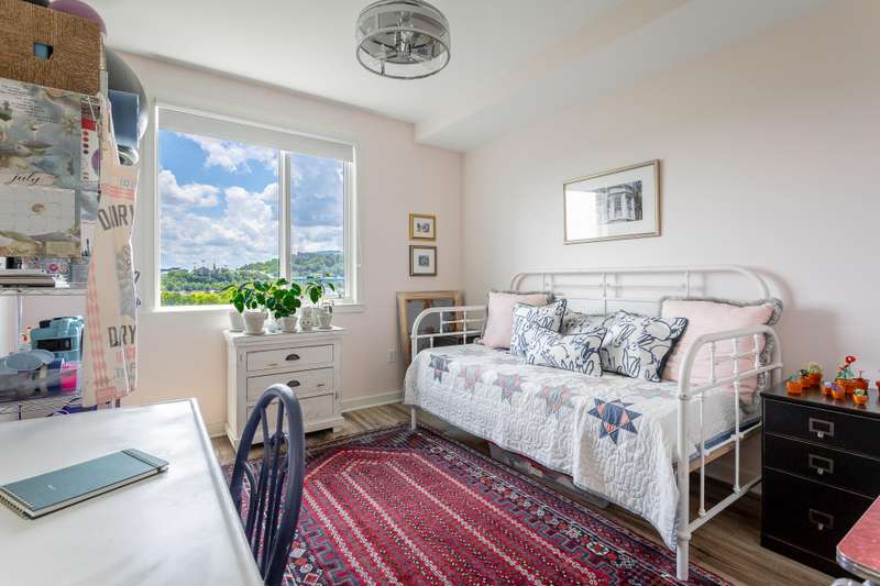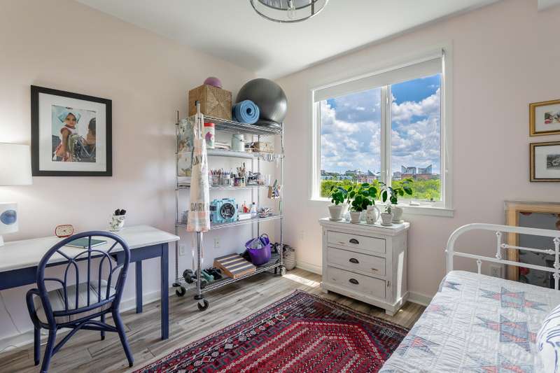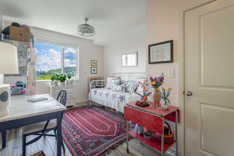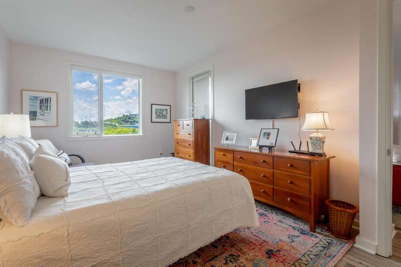 Enjoy sensational downtown and river views from this updated 2BR/2BA + bonus room condo at popular One North Shore. The unit has open floorplan and extra large covered balcony with electric sun shades for relaxing and taking in the amazing views. The balcony is easily accessed from both the main living area and the master bedroom. Owner has thoughtfully updated the home with custom cabinetry, quartz countertops, Bosch and Maytag stainless appliances, and a built in pantry in the kitchen, handsome porcelain floors throughout, and a totally new master bath with custom shower and vanity. The guest bath was also renovated, and the HVAC was replaced in 2023. The unit has 2 side by side assigned parking spaces in the main level of the gated garage. Additional 10X13 deeded storage space (located down the hall from the unit) is available for separate purchase. Ask listing agent for details.