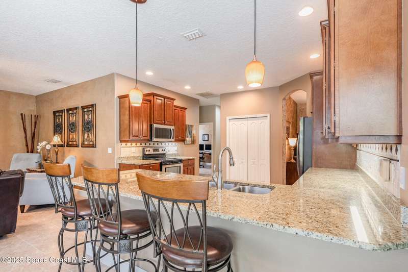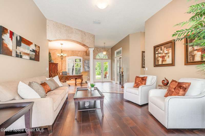 WELCOME HOME to your own private piece of FLORIDA paradise! Nestled in the lovely OTTER TRACE community of Merritt Island, this beautifully maintained 4 BED / 3 BTH Residence sits on a -acre lot surrounded by lush trees & natural serenity. Designed for effortless indoor-outdoor living, the home features a sparkling pool, tropical landscaping and multiple outdoor areas - perfect for entertaining OR relaxing in complete privacy. Inside, you'll find a bright, open floor plan with soaring ceilings, generous living spaces and a chef-inspired kitchen - ideal for gatherings both large & small. The thoughtful split-bedroom layout offers comfort & flexibility for family and guests, while the spacious primary suite provides peaceful views of the pool and greenery beyond. Enjoy peace of mind with a BRAND NEW ROOF and the added bonus of CHOOSING your own shingle color before installation! Conveniently located near Blue Origin, Port Canaveral, A+ Schools, Orlando and our Space Coast Beaches!