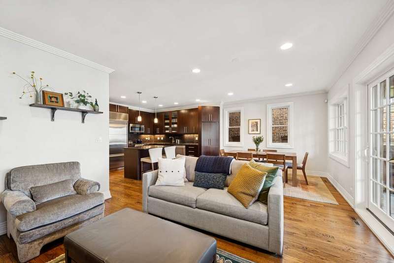 Experience refined city living in this pristine East Lakeview residence, perfectly situated on an oversized lot that allows for a truly expansive floorplan. Meticulously maintained, this home stands apart with its ample proportions, elegant finishes, and timeless style. Bathed in natural light, the interior features elevated finishes like crown moldings and gleaming hardwood floors throughout and is in immaculate, move-in condition. The open-concept floor plan allows for wonderful entertaining in the expansive living and dining rooms. Step outside to a spectacular oversized balcony overlooking a charming, tree-lined side street-perfect for al fresco dining, grilling, and relaxation. The chef's kitchen is as functional as it is beautiful, appointed with top-tier appliances, abundant cabinetry, and a generous center island ideal for casual dining or hosting with ease. The sumptuous primary suite offers a serene retreat, complete with two impressive walk-in closets and a spa-inspired bath boasting dual vanities, a steam shower, a separate bathtub and luxurious finishes. A Juliet balcony allows for additional sunshine and fresh air on autumn days and summer nights. Additional highlights include updated mechanicals and other upgrades. Garage parking and a private storage closet are included. Set in the vibrant heart of East Lakeview, this residence enjoys close proximity to acclaimed restaurants, boutique retail, lively nightlife, and the neighborhood's signature character-all with effortless access to public transportation.