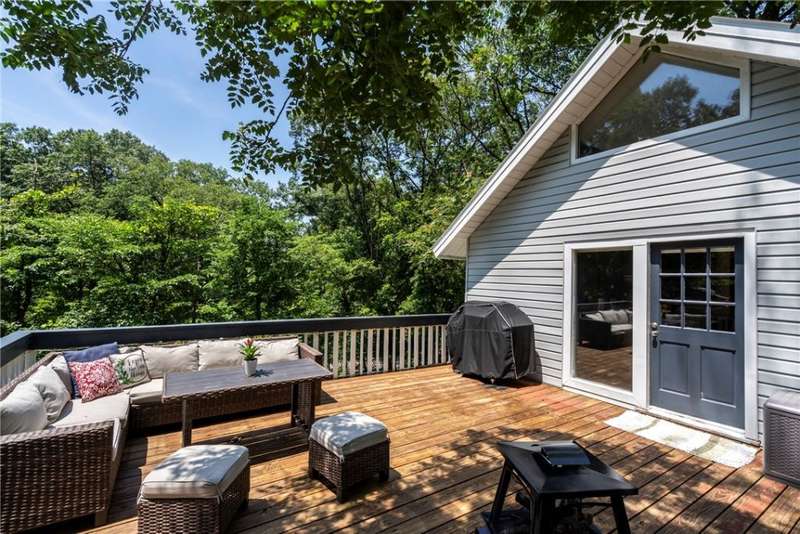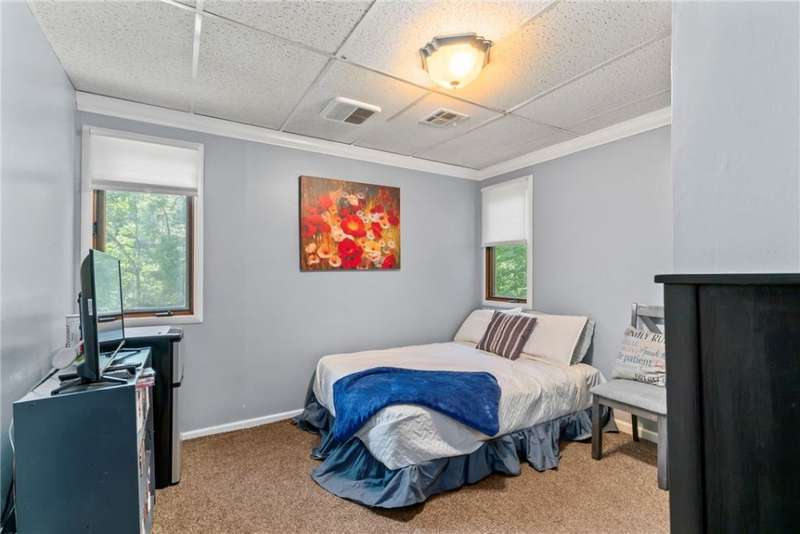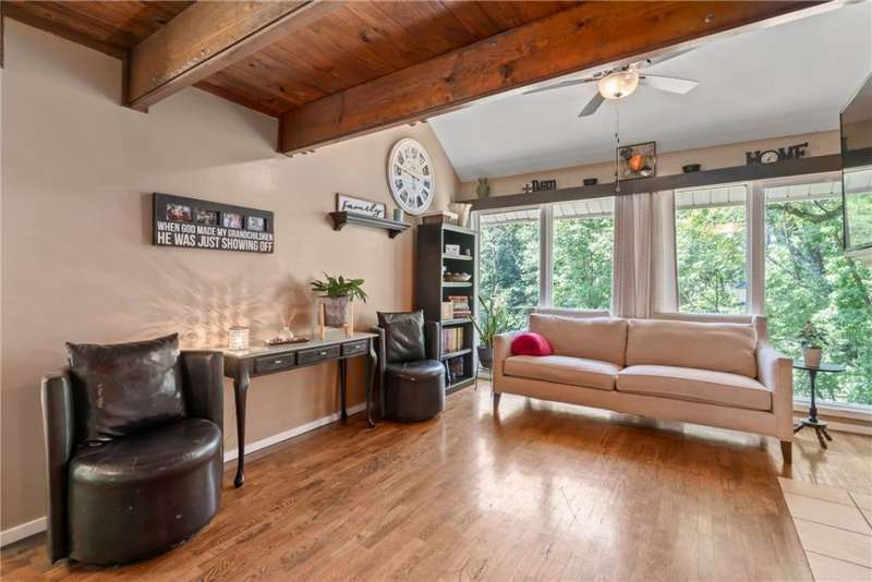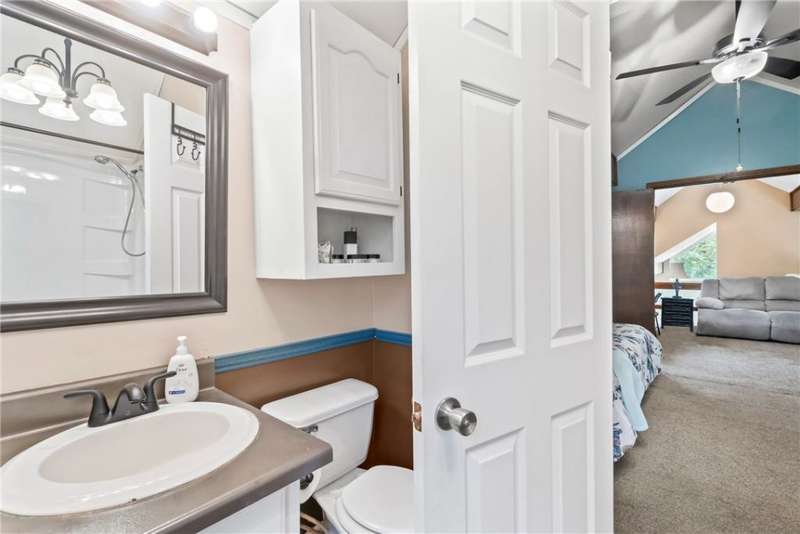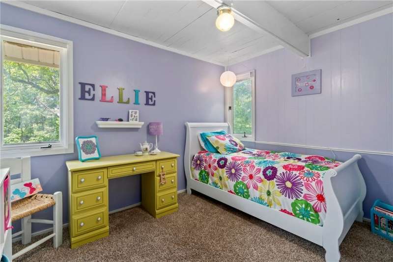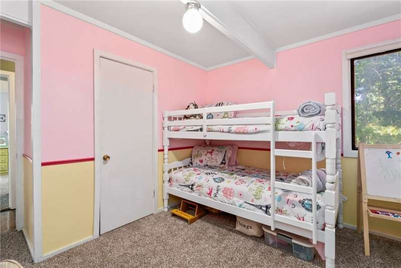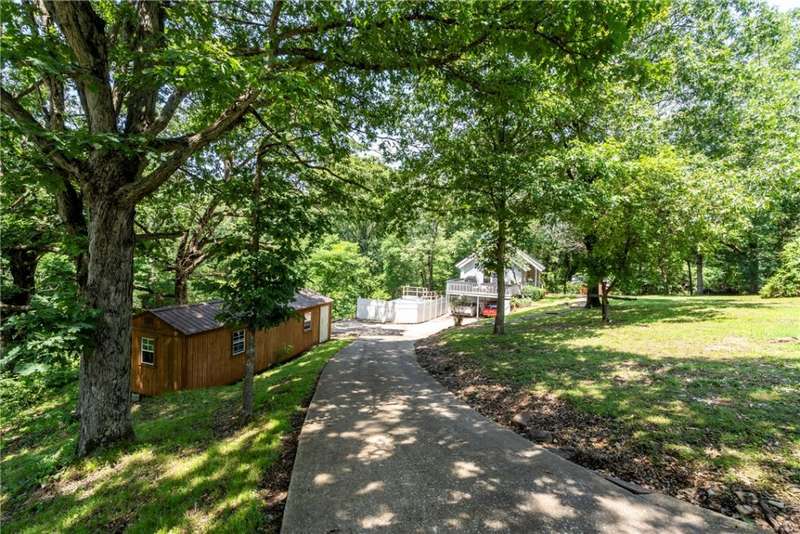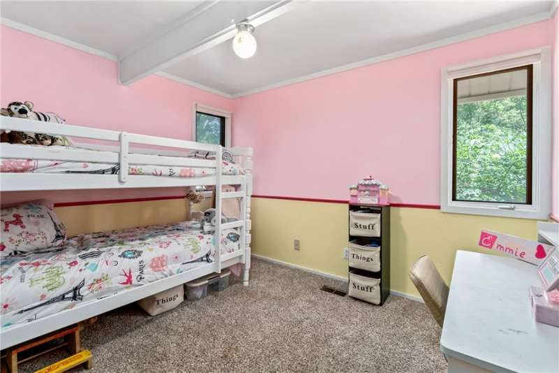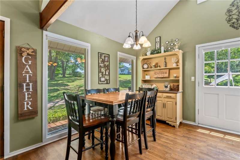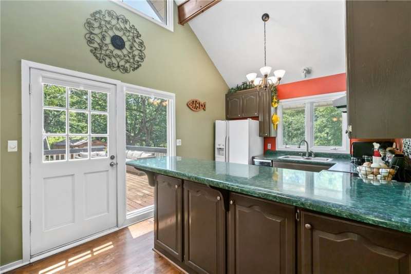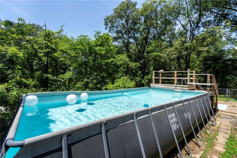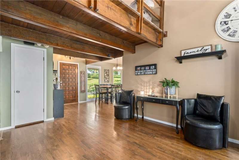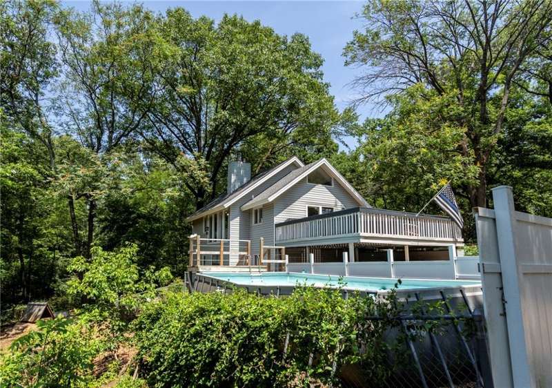 Welcome to this one-of-a-kind 5BD, 3BA, 2210SF home. The main level has vaulted ceilings, hardwood flooring, carpeted bedrooms & tile in the bathroom. The living room is filled with natural light from four oversized windows, wood beams & a wood-burning fireplace. The dining area has light streaming in from multiple windows. The kitchen has a wraparound bar, SS appliances & a trash compactor. Just off the living room, you'll find 2 BD, a full bath & a utility area. The upstairs features a loft-style living area with wood railings overlooking the floor below, a large bedroom with two closets & a full bath. The finished basement includes tile flooring throughout & carpet in both bedrooms. There's a full living area, a dedicated storage room & another full bath at the end of the hall?ideal for guests or multi-generational living. Step out onto the deck for views of the pool, plenty of storage in the 8x16 & 12x32 outbuildings. Located near schools, bike trails, a scenic park & a beautiful lake. Buyer to verify SF