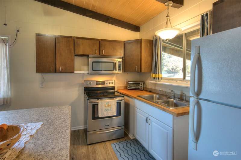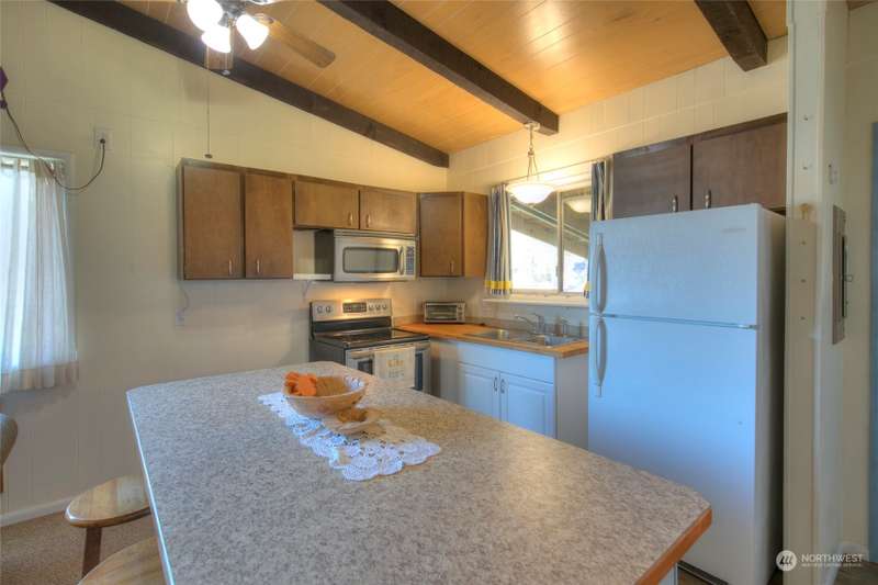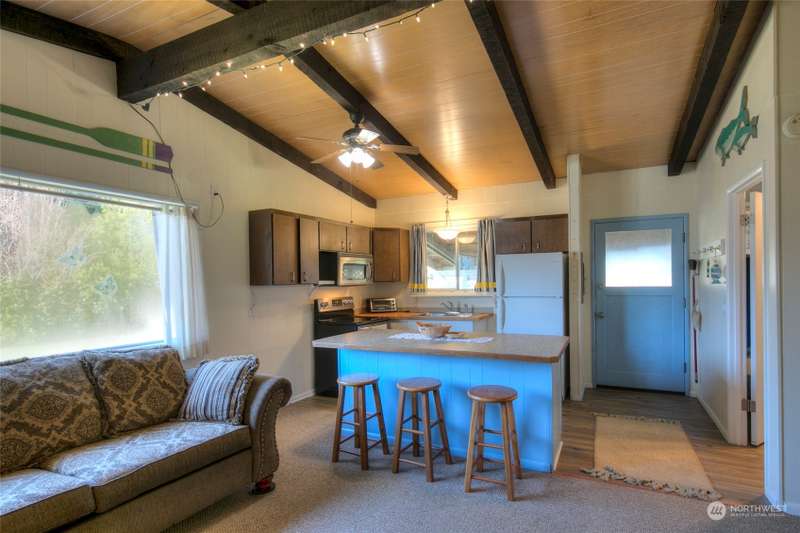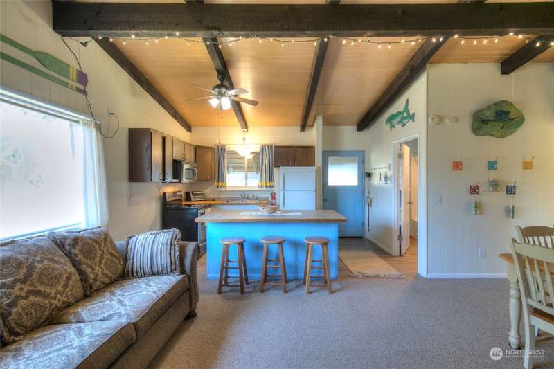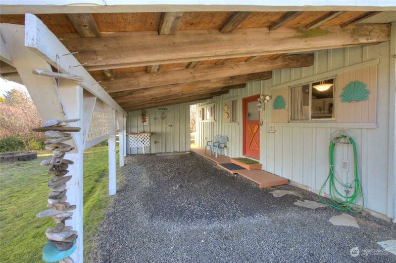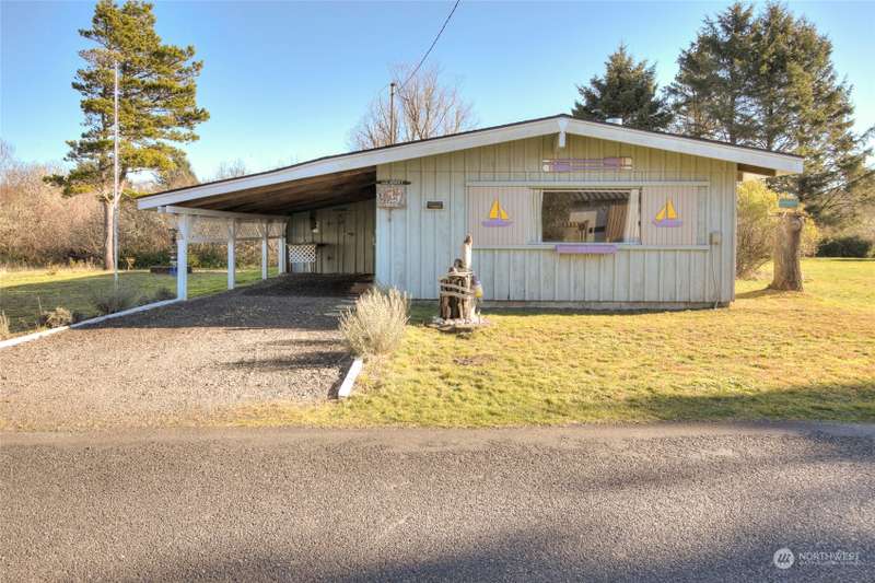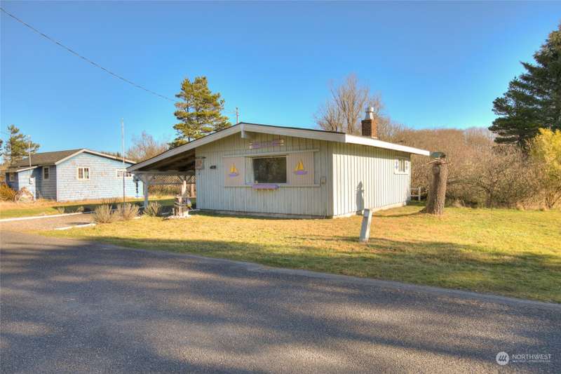 Seller Financing available! Turnkey Beach Cabin sold furnished & ready to enjoy! Located .5 mile from Public Beach Access & close to downtown Ocean Shores yet just outside city limits - enjoy an easy walk to the beach anytime + all the amenities that OS has to offer. Home features an open concept living space - vaulted ceilings w/ exposed beam, cozy fireplace & large picture window giving an abundance of natural light. Three bedrooms + full bathroom. Full laundry set-up. Large covered carport w/ connected shed w/ electricity. *New Roof* Buy into this quaint community & start enjoying life at the beach. Ownership transferred by Bill of Sale & Stock Certificate. Cash or Seller Financing.