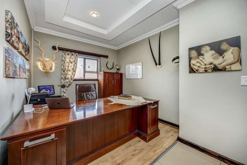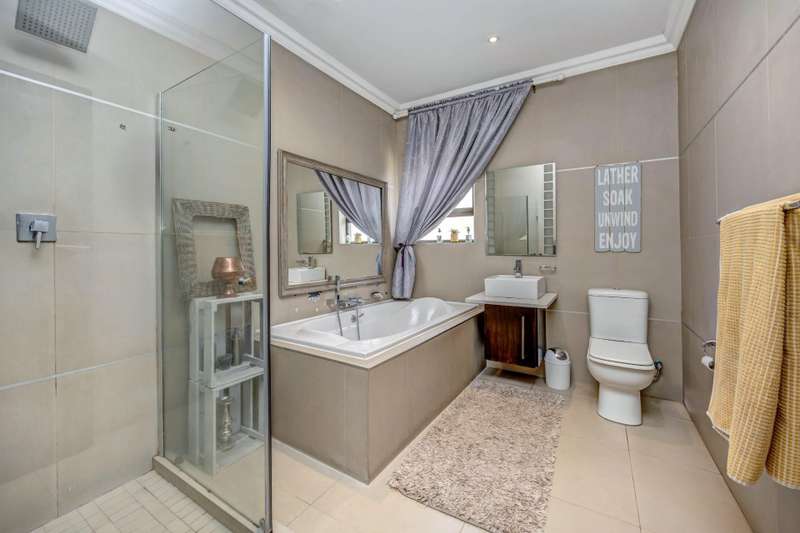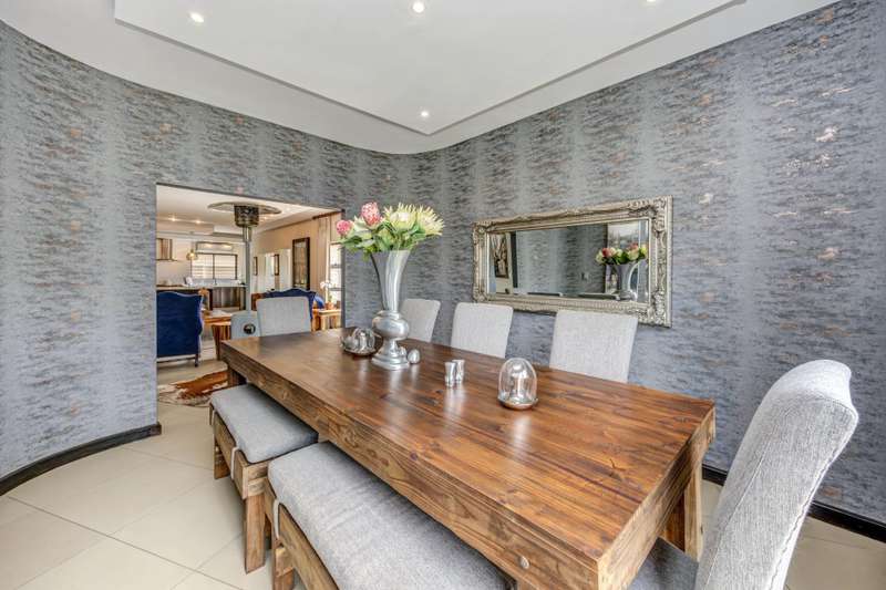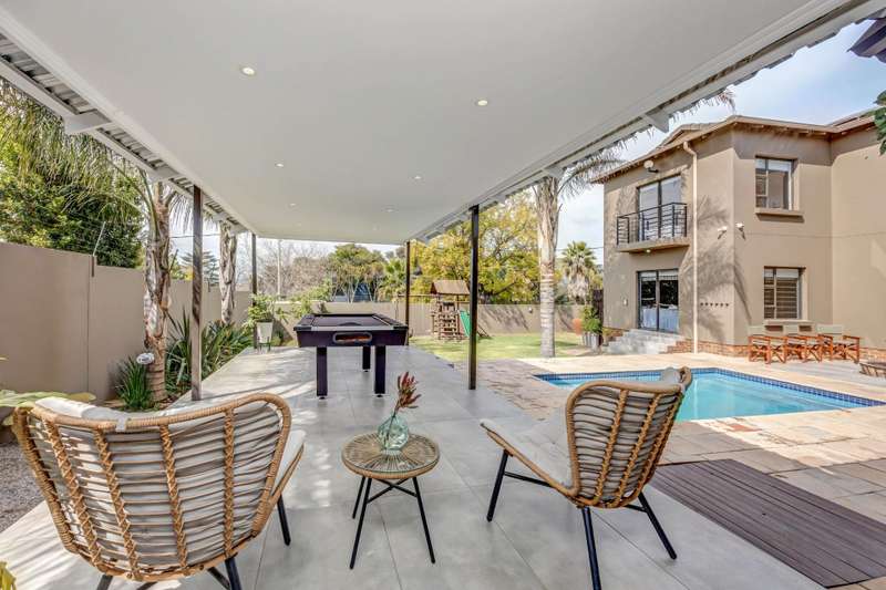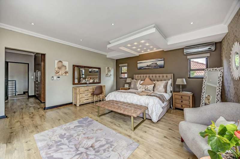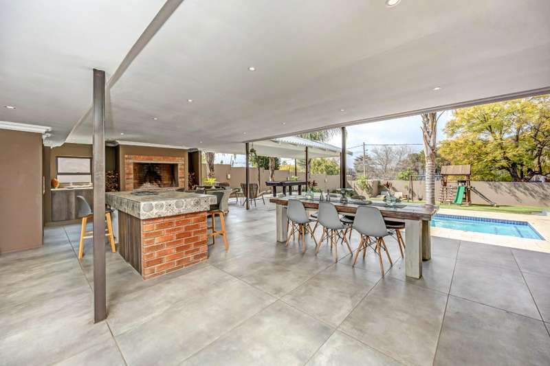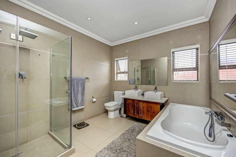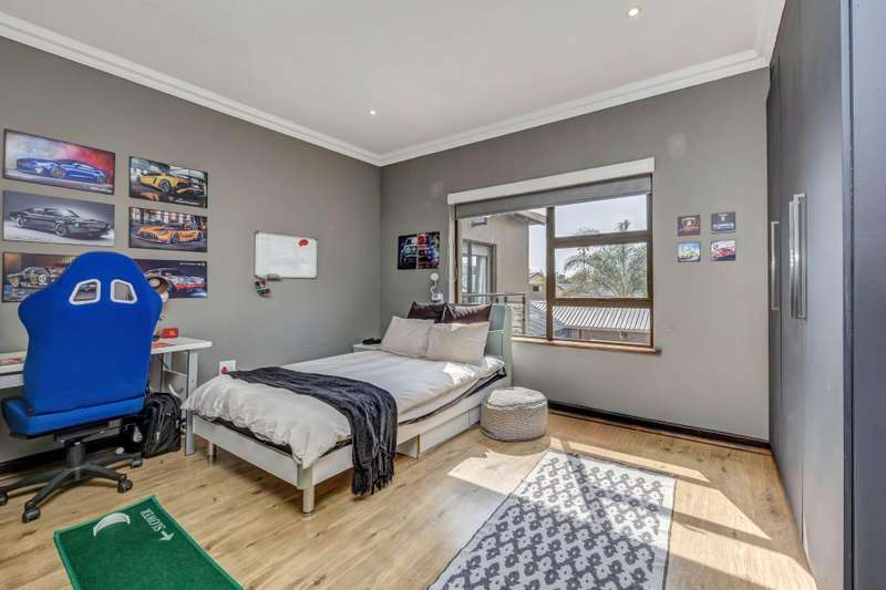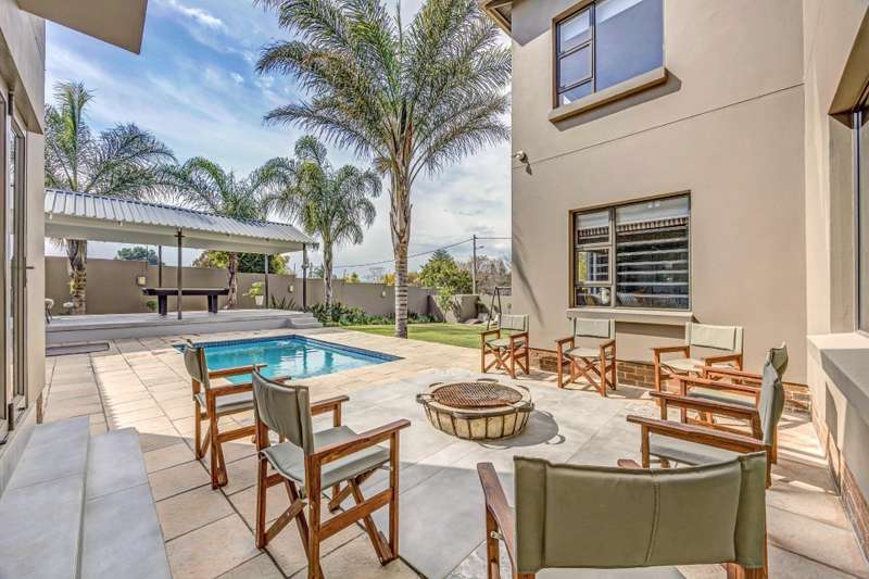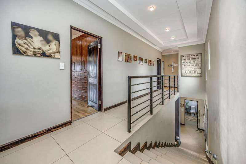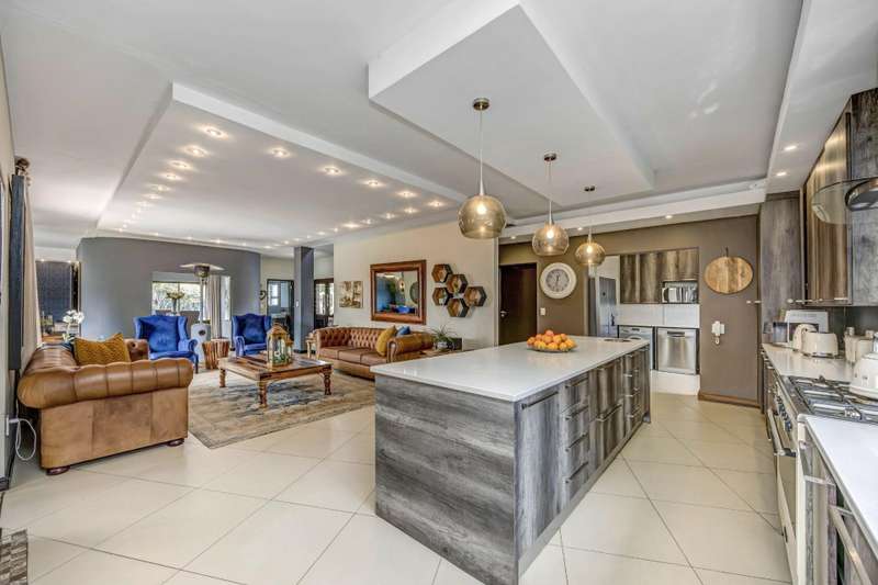 Secure, Stylish & Ready for You ?Çô Family Home with Exceptional Entertainment Space If you?ÇÖve been looking for a home that combines peace of mind, comfort, and effortless style, you?ÇÖve just found it. This beautiful corner-stand property is move-in ready, with top-quality finishes and a welcoming, homely atmosphere. Safety is a standout feature ?Çô with clear burglar proofing, beams in the garden, a full CCTV and alarm system, plus the reassurance of two guarded security stations within close reach. You can truly relax knowing you and your family are protected. Step through the front door and into a space designed for easy living. The heart of the home is a sleek, well-equipped kitchen with a central island, gas stove, generous cupboard space, and a separate scullery. The open-plan layout flows into bright, airy living areas and a cosy family lounge ?Çô perfect for both everyday life and weekend gatherings. The entertainment area is nothing short of spectacular. A built-in braai overlooks the sparkling pool, boma, and wrap-around landscaped garden ?Çô the ideal setting for celebrations or lazy afternoons. Upstairs, you?ÇÖll find four generous bedrooms, including a main suite with a walk-through dressing area and full en-suite. A study nook offers a quiet corner for work or homework, while the remaining bedrooms share a stylish family bathroom. Extra features you?ÇÖll love: Guest bathroom downstairs Direct access to the double automated garage Staff accommodation Covered parking plus plenty of off-street parking Full solar system (8Kva inverter, 16 panels, 3 batteries) Borehole with 3 water tanks and filtration system Five air-conditioning units throughout the home With its blend of modern living, unmatched security, and one of the best entertainment setups you?ÇÖll find, this home is ready to welcome its next family.
