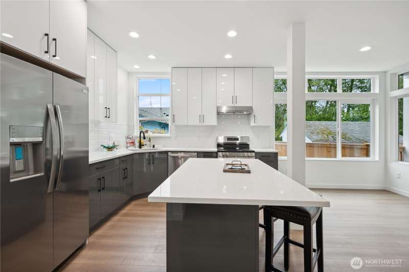 Recently completed in Ocean Shores, WA, this multi-plex features 3 spacious townhome units. Unit C at the back is waterfront, 1,980 sq ft, 3 bedrooms & 3.5 baths. The front units A & D, are each 1,337 sq ft, feature 3 bedrooms & 2.5 baths. All boast high-end builder model finishes, including designer cabinetry, luxury vinyl plank flooring, quartz countertops, & soaring vaulted ceilings. Open-concept layouts are complemented by modern kitchens equipped with high-end appliances & impressive window packages that flood the spaces with natural light. Additionally, each unit includes a 2-car garage with electric car charging outlets. This property offers both luxury and functionality in one of Washington's most desirable coastal communities.