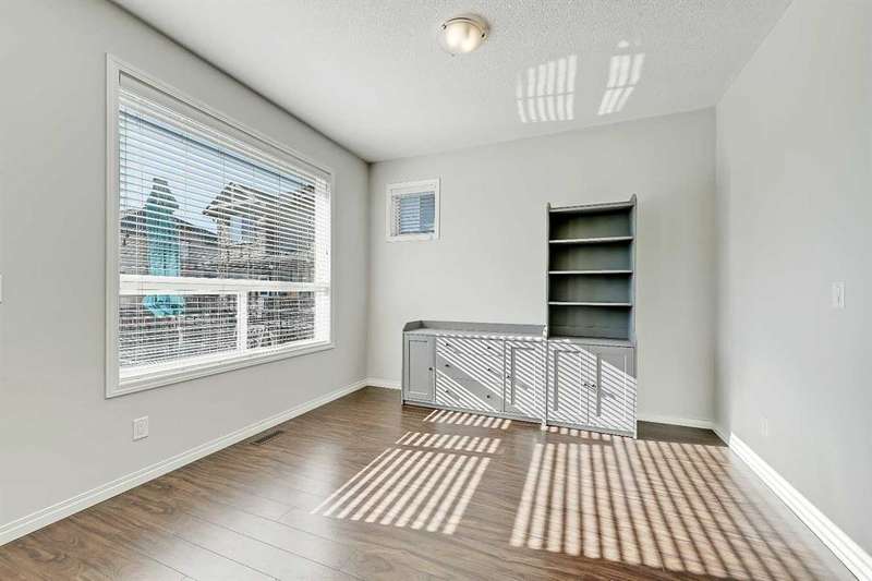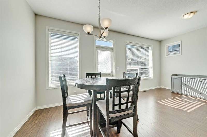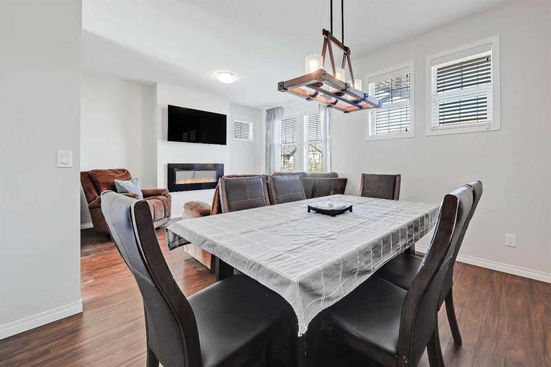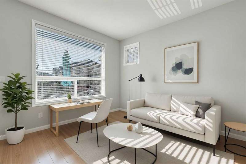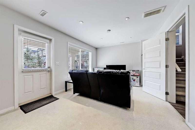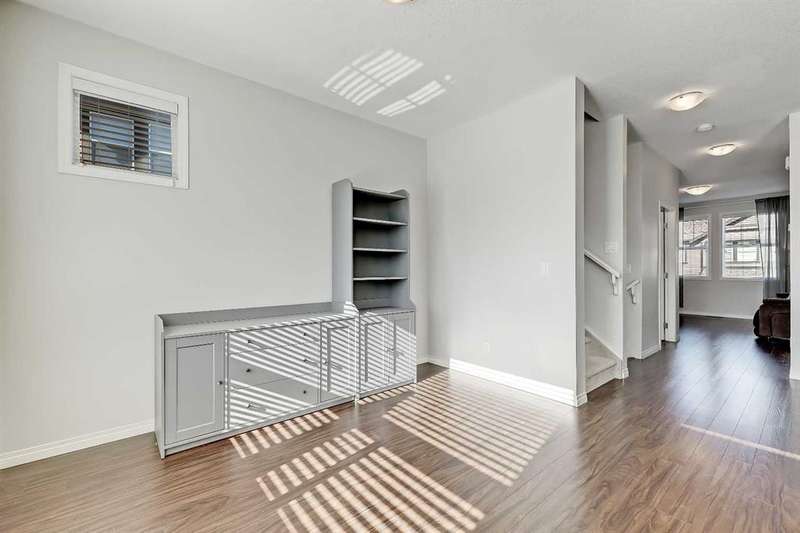 BRIGHT END UNIT | DOUBLE GARAGE | FINISHED WALKOUT BASEMENT | SCHOOL & NATURE PRESERVE STEPS AWAY! This spacious end unit in the family and pet-friendly Bridges at Williamstown complex offers an exceptional location with a south-facing balcony and enclosed yard that overlook the central courtyard. This property also provides easy access to an absolute abundance of amenities including playgrounds, parks, pathways, sports fields, Herons Crossing School just steps away, direct access to Williamstown Nose Creek Preserve right from the complex and close proximity to Reunion Pond, Woodside Golf Course and the shops, services, restaurants and retail along Veterans Boulevard. As you enter the property you will discover a main floor designed for both comfort and functionality. The spacious front foyer welcomes you with a large closet and easy access to the main and lower walkout levels of the home. Wide plank laminate floors flow throughout, enhancing the open-concept layout. The well-appointed kitchen offers rich cabinetry, stainless steel appliances, a pantry closet, ample granite countertop space, island with sit up breakfast bar, nook and a stylish stacked tile backsplash. The main living room is connected to the designated dining room and is warm and welcoming with bright windows and an attractive electric fireplace, perfect for relaxing evenings or gathering with friends. The main floor is completed with a half bathroom and a functional flex space that is ideal as a sitting room, reading area or computer station and provides direct access to the balcony. Upstairs, the home continues to impress, the spacious primary bedroom is a true retreat offering room for a king-sized bed, a generous walk-in closet and a 4-piece ensuite with a double vanity and a fully tiled shower. There are 2 additional bedrooms that offer size and versatility - ideal for kids/teens or a home office. Finishing off the upper level is a 4-piece bathroom with a large vanity and full tub/shower combination and a convenient laundry closet. The fully finished lower walkout level is as versatile as it is welcoming. It can easily serve as a 4th bedroom with a separate entrance and dedicated bathroom, or as a multi-use space for a home theatre or games room. Highlights include a modern 3-piece bathroom with in-floor heating, privacy door separating the space and oversized windows. From this level, you’ll also find access to the utility room and the attached double garage. The outdoor living areas are outstanding with a sunny, south-facing raised balcony on the main level that overlooks the courtyard and a good-sized lower concrete patio and fenced yard off the lower level, perfect for sipping your morning coffee or just relaxing and enjoying the space. Additional features include 9’ ceilings on the main level, new stove and over the range microwave (2024), new paint (2025), large driveway with room for 2 vehicles, ample visitor parking close to the unit and more. Welcome Home.