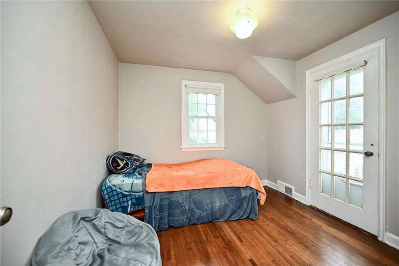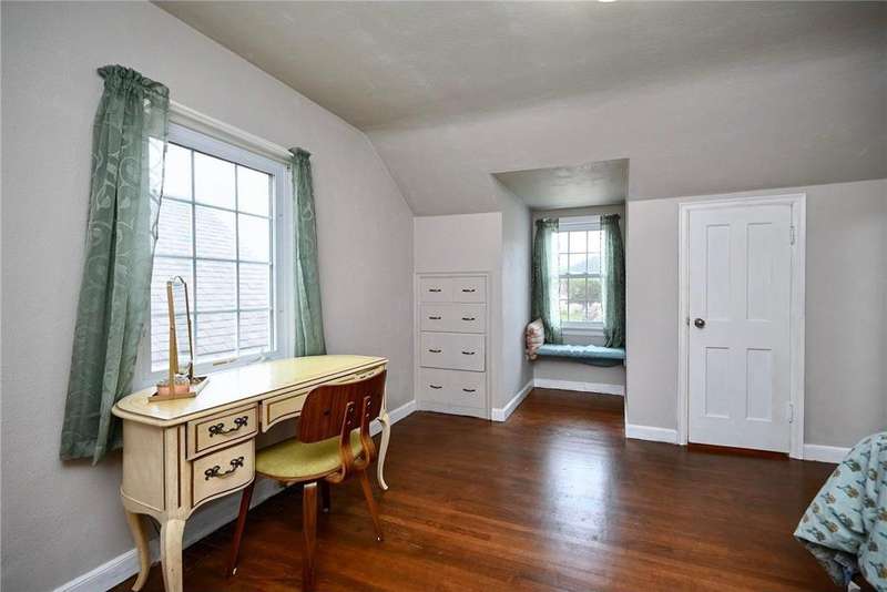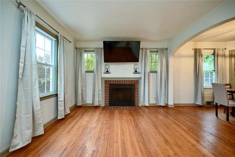 Step into timeless character with this charming 1940s home, filled with original details throughout. Built-ins, classic panel doors, an open staircase, gleaming hardwood floors, and two wood-burning fireplaces bring warmth and style to every corner. The home offers three comfortable bedrooms, a bright and inviting sunroom, and a partially finished basement with a family room perfect for gathering. A walk-up attic provides excellent extra storage, while the private backyard with a storage shed creates a peaceful retreat. This home beautifully blends vintage charm with practical living spaces and modern amenities. Home comes with a 1-year HSA Home Warranty.