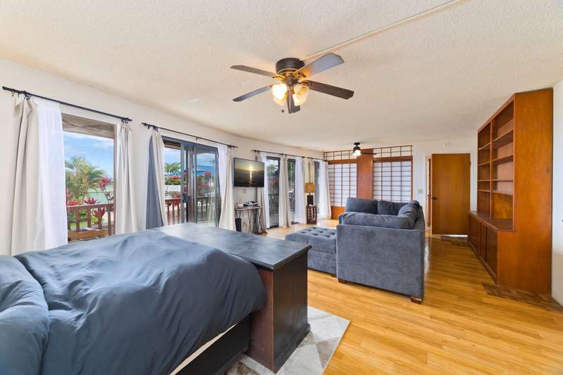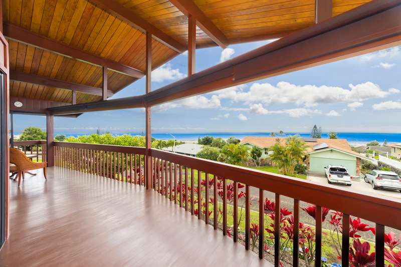 The ground level features a spacious open room, kitchenette, full bath and a covered lanai with its own ocean view. Currently an active rental, this space offers excellent income potential, multigenerational flexibility, or the perfect work-from-home setup.