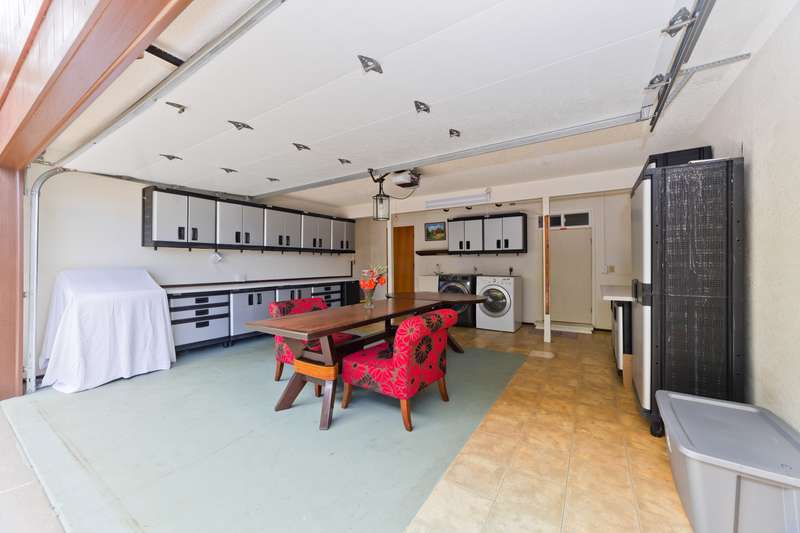 The garage includes the laundry facilities, built-in cabinetry, and a generously sized storage room.