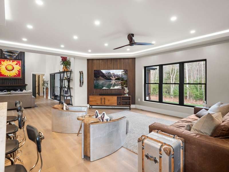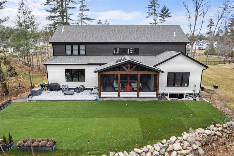 Welcome to Falcons Ridge! Rowley s most desirable neighborhood. 39 Taylor Lane offers the perfect blend of custom design, high-end finishes, and everyday functionality. This stunning home showcases a chef-inspired kitchen with elegant marble countertops, custom cabinetry, and premium Bertazzoni Heritage Series appliances, making it a true centerpiece for entertaining and daily living. The custom wood wall accents in the living room, family room, and kitchen island add warmth and character, elevating the interior with thoughtful detail. Step outside to enjoy the private 400-square-foot patio and low-maintenance synthetic turf, a perfect setup for gatherings, play, and pet-friendly enjoyment. A standout feature of the home is the charming 3-season porch, complete with a cozy wood-burning fireplace ideal for relaxing mornings or cool New England evenings. Retreat to the spacious primary bedroom suite, which boasts a luxurious primary bathroom and an impressively large walk-in closet.
