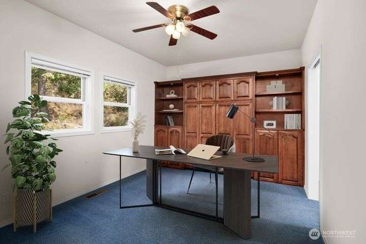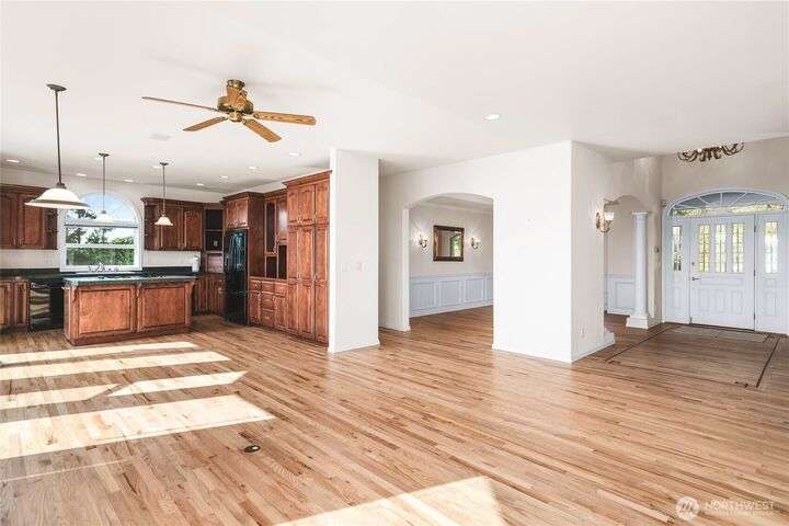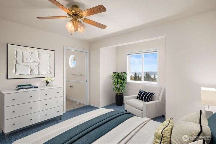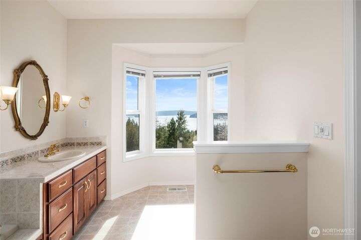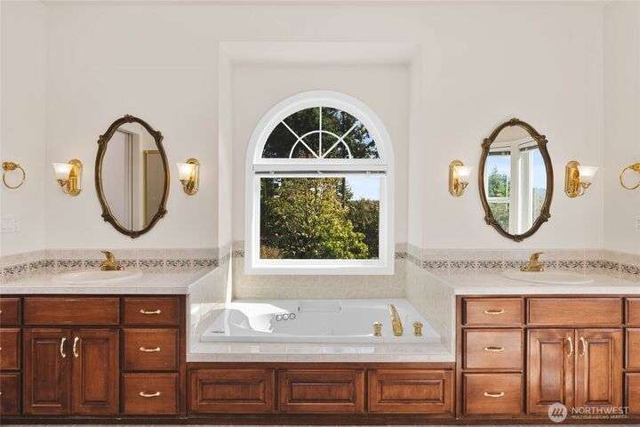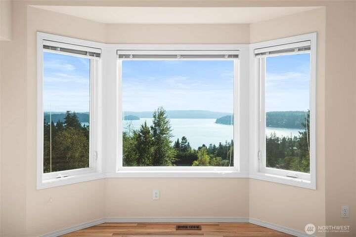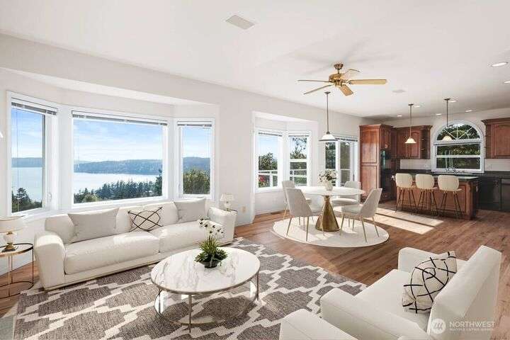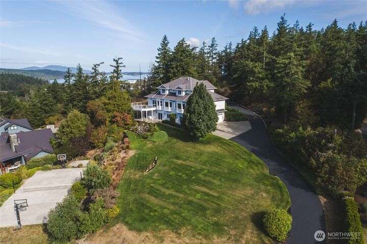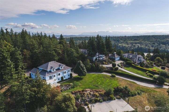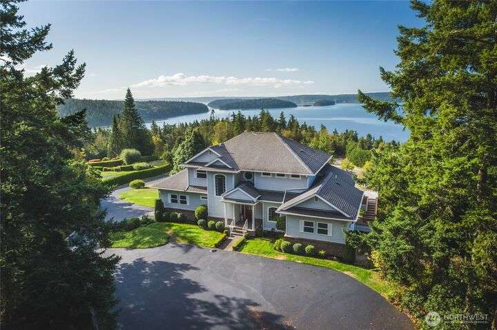Stated elegance defines this grand residence perched high on the hill w/commanding southern views across Similk Bay to the Olympics. Nestled on just under 2 acres, this home offers main-level living. Open floor plan features a beautiful kitchen that flows seamlessly into the living, dining & expansive deck. The primary suite includes a private bath & adjacent exercise/office space w/Murphy bed. Addt'l main level rooms include den, laundry & 2 guest baths. Upstairs offers two spacious ensuite bdrms & family/hobby room & storage. Lower level boasts a lg 3 car garage (one w/tall RV/boat bay) & impressive 1450 SF workshop w/its own bath, office, dust collection system & complete with woodworking tools! Generator, nature trails & beach access!
