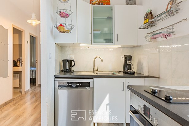 The main living space includes a light-filled living room, providing a pleasant and welcoming environment. The semi-open kitchen is fully fitted and equipped, ideal for food lovers.