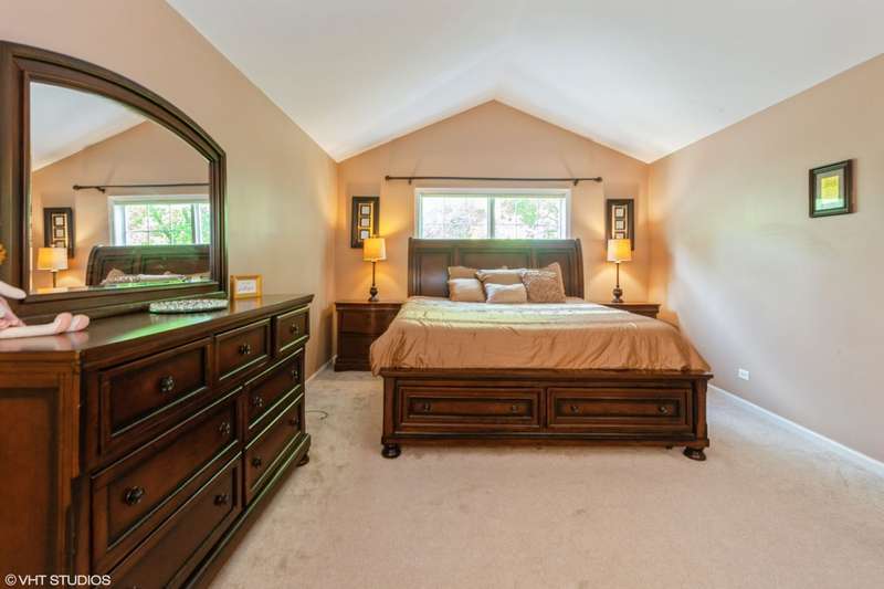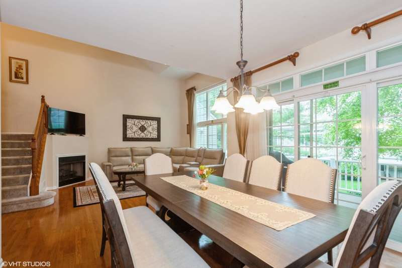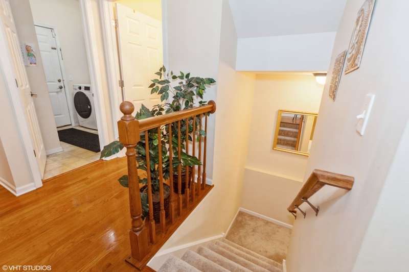 Welcome to this immaculately maintained townhome in the desired subdivision, The Villas in Hawk Hollow of Bartlett. This home offers comfort, convenience, and stylish updates throughout. The main level features an open floor plan with hardwood flooring and NEW CARPETING ON THE STAIRS AND IN THE KEY AREAS, UPDATED IN (2022). A BRAND NEW ROOF, NEW TRIM (2024) and FRESHLY REFINISHED DRIVEWAY (2025) provide peace of mind and great curb appeal. WATER HEATER (2020) GARBAGE DISPOSAL(2024) WASHER (2025). The Main level offers an open-concept layout that seamlessly connects the living room, dining area, and kitchen, creating a warm and inviting space ideal for both everyday living and entertaining. Spacious living room features large windows with natural light . A cozy fireplace serves as a central focal point, complemented by built- in media space for functionality and charm. Kitchen boasts sunny breakfast nook, granite countertops and oversized 42 cabinets. Positioned conveniently between the kitchen and living room, the dining area offers plenty of room for a full-size dining table. Step outside to your private deck, ideal for entertaining guests or simply unwinding in nature. Second level has three bedrooms and a cozy loft area. Master bedroom has a vaulted soaring ceiling with spacious walk in closet and en-suite full bathroom Other two bedrooms also have walk-in closets and adjoining full bathroom in the hallway. Fully finished basement perfect for additional living space or entertainment. HOA pays for the sprinkler system on the property. Located within walking distance to the Bartlett Park District and close to the Metra station, shopping, and scenic prairie paths perfect for biking and walking. A truly move-in-ready home with exceptional features and an unbeatable location. There are several guest parking spaces available.