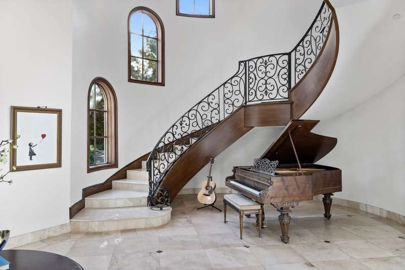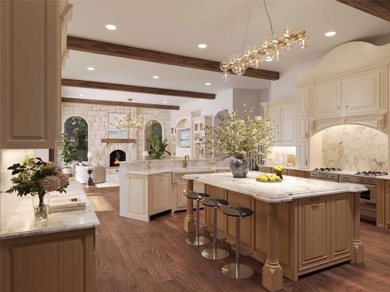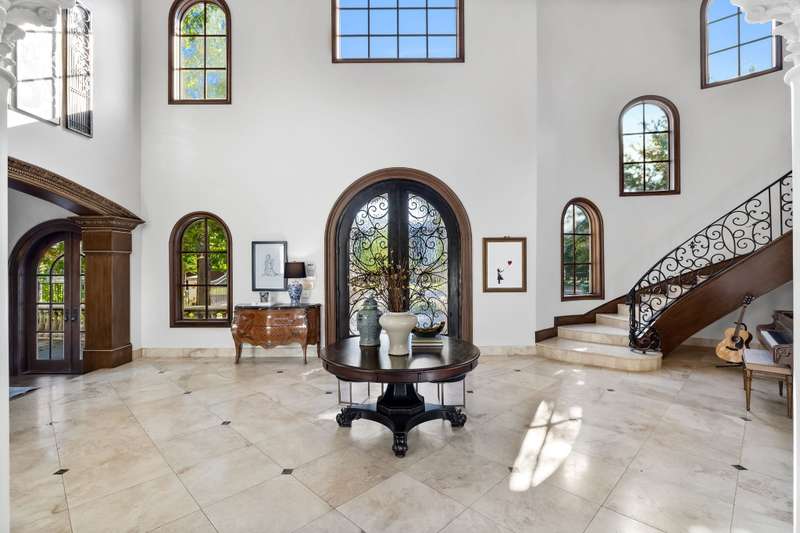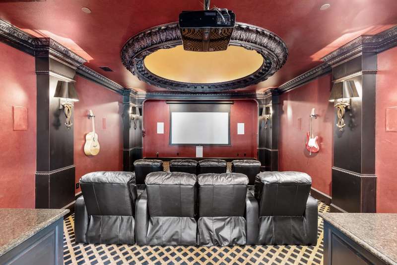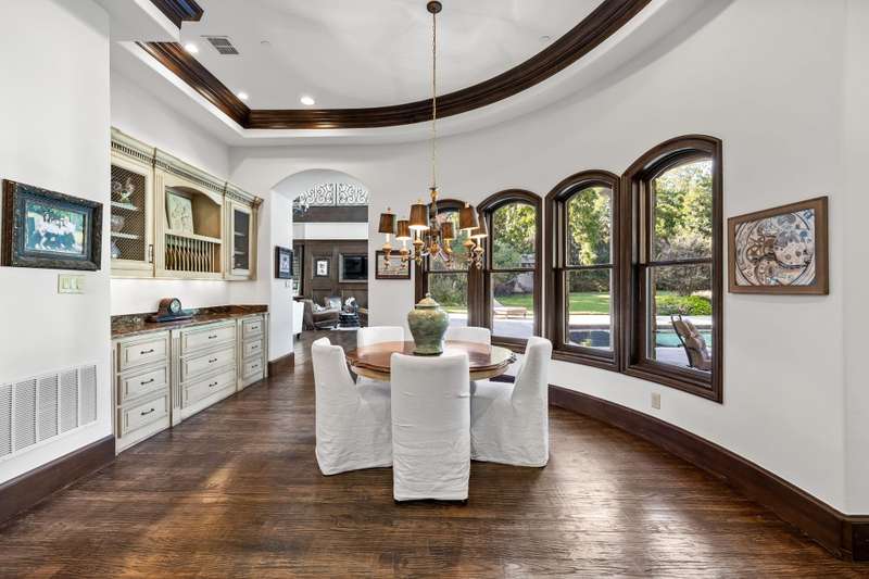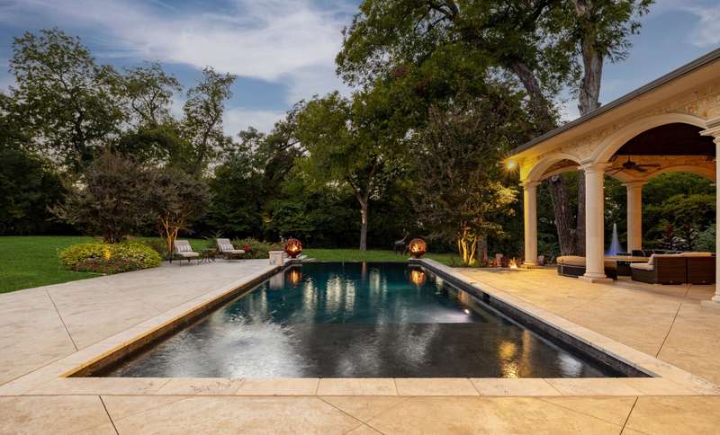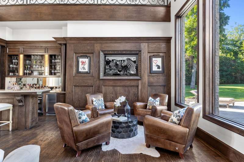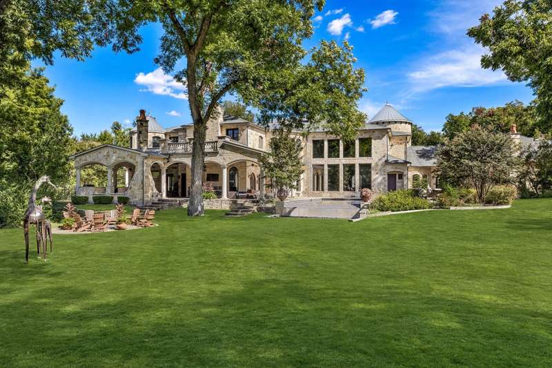 Majestic luxury in cul-de-sac home full of custom features, including private pond & fountain, energy-efficient features, elevator, and custom design touches. Grand entry wows with dramatic iron staircase and vaulted ceilings that show off gold inlay turret with chandelier. Huge dining room with French doors to front veranda, custom ceiling mural, and access to 750-btl temp-controlled wine room. Formal living features floor-to-ceiling UV-protected windows overlooking outdoor retreat, Isokern fireplace, and onyx-topped bar with 2 Uline fridges. Expansive gourmet kitchen includes 2 Bosch dishwashers, Viking 6-burner gas cooktop, double ovens, warming drawer, & massive island. Oversize walk-in pantry offers 2nd built-in fridge and extra storage. Stylish study has French doors to front patio and hidden room used as storm shelter. Primary suite feels like a luxury hotel, with imported wood doors from Bali, coffee bar & refrigerator, and elegant fireplace in sitting area. Spa-like primary bath with exquisite hand-carved marble tub, walk-in shower with dual heads, dual vanities, heated travertine flooring, and walk-in closet with island. Expansive game room offers space for pool table or gaming, with access to large balcony overlooking lush outdoors. Theatre includes ample seating and refrigerator for movie nights. Spacious exercise room fits machines & weights with access to steam shower bathroom. Secondary bedrooms have full baths & walk-in closets, and can be extra office or craft space. Expansive covered patio is ideal outdoor living, with built-in kitchen, fireplace, misting & mosquito systems, and room for seating & dining. Exquisite heated pool overlooks verdant yard with firepit, private pond, and fountain. Additional features include Infinity Carrier HVAC system, gated driveway & sport court, and upstairs 2nd laundry room. Close proximity to top-tier dining, entertainment, and golf courses. Conveniently located to Dallas top private and collegiate prep schools.