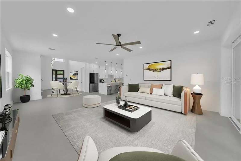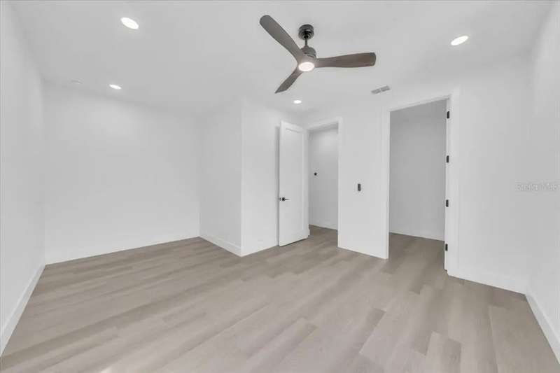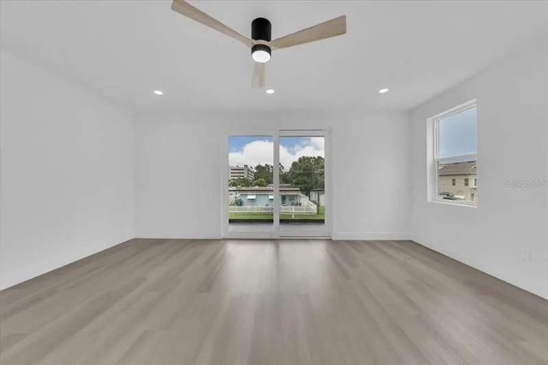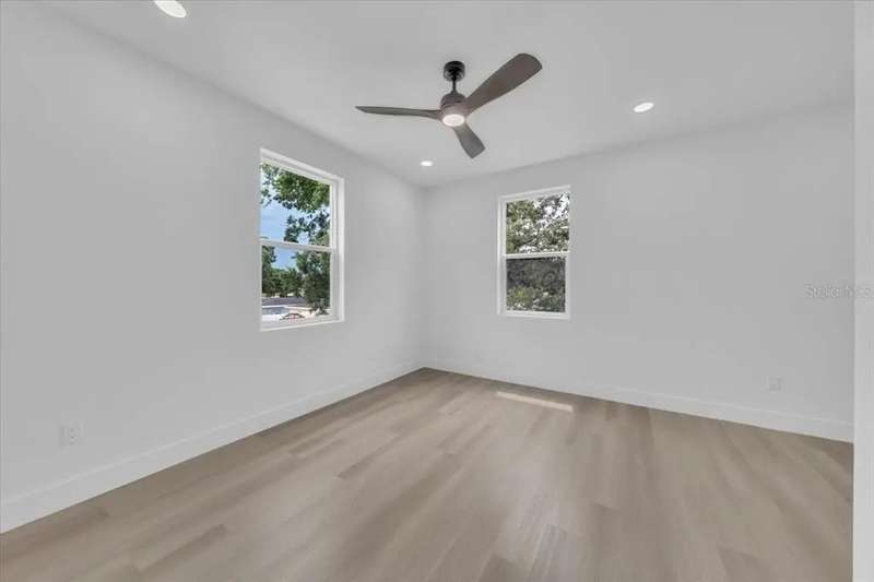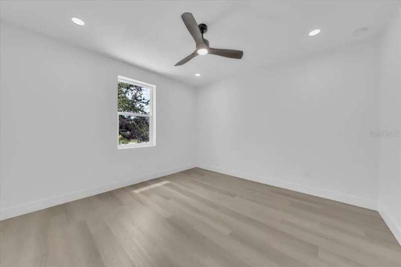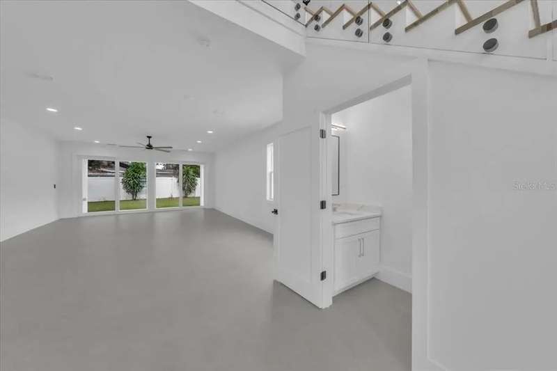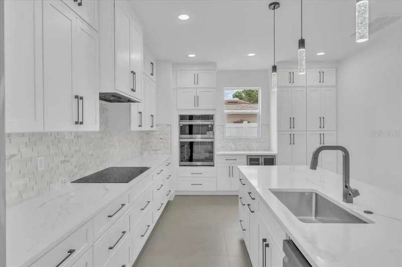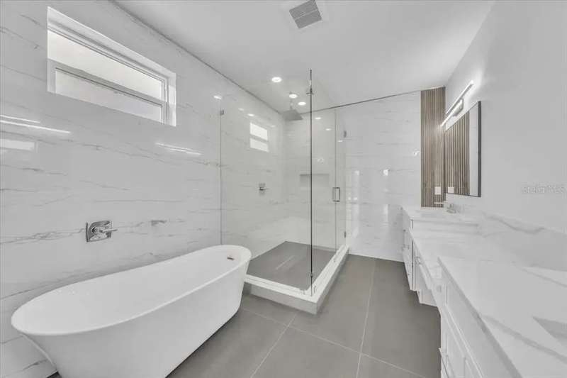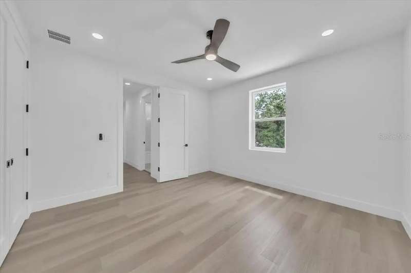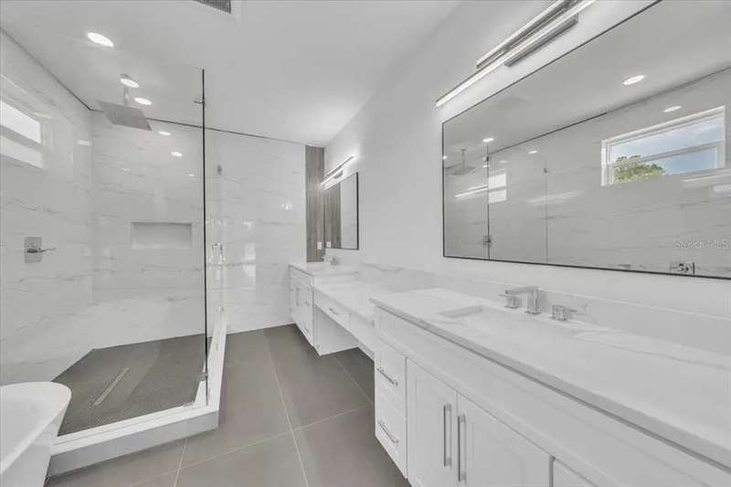 One or more photo(s) has been virtually staged. Introducing a striking new-construction contemporary residence designed for modern living and entertaining. The home opens with an impressive 18-foot foyer crowned by a cascading chandelier, setting an elegant tone throughout. An expansive great room and adjoining dining area flow seamlessly to the chef’s kitchen, appointed with white cabinetry to the ceiling, state-of-the-art appliances, and a 12-foot waterfall-edge center island with ample seating. A striking backsplash complements the premium countertops, and a dedicated wine and beverage refrigerator adds a refined finishing touch. The main floor also includes a convenient powder room and a flexible bedroom suite—ideal as a guest room or a first-floor primary—with a generous ensuite featuring a double vanity and glass-enclosed shower and walk-in closet. A stunning glass-clad staircase leads to the open loft upstairs. The second level houses two additional bedrooms that share a well-appointed bathroom with double vanity, a spacious laundry room, and a lovely primary suite with private balcony. The primary bathroom is a spa-like retreat with double vanities, contemporary lighting, a glass- enclosed shower with a linear drain and rain showerhead, plus a freestanding tub framed by a warm wood accent wall. This exceptional home blends contemporary design, high-end finishes, and thoughtful functionality—everything you’ve been looking for and ready for you to call it home.