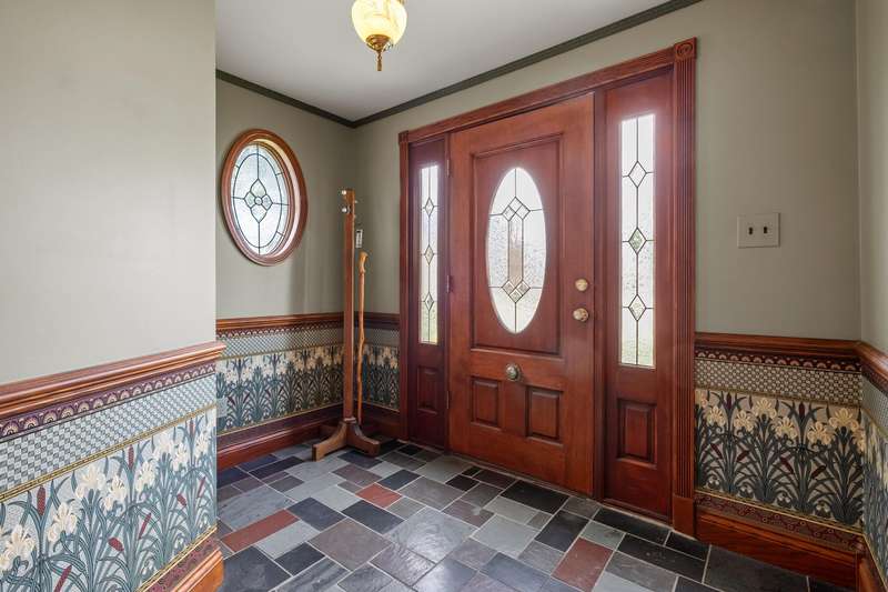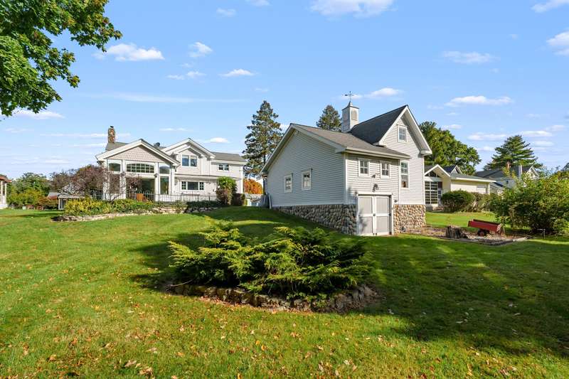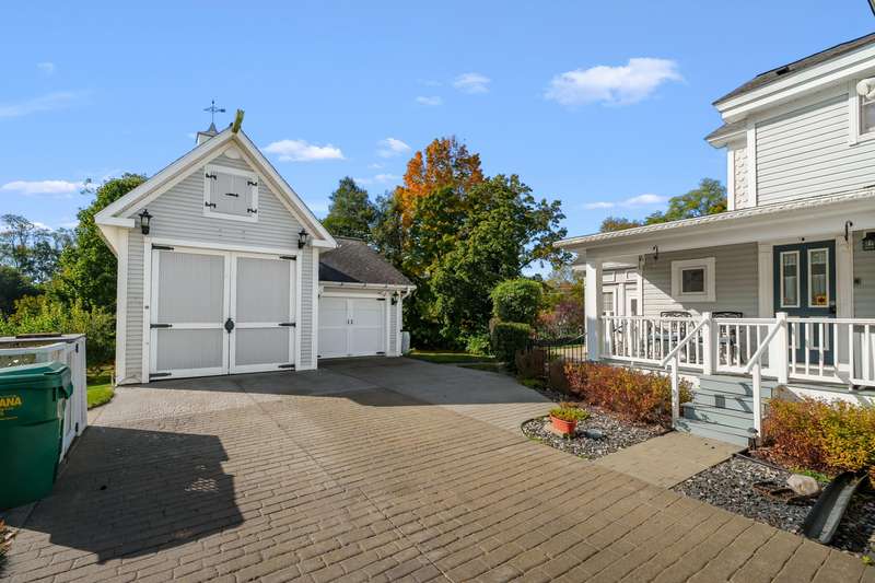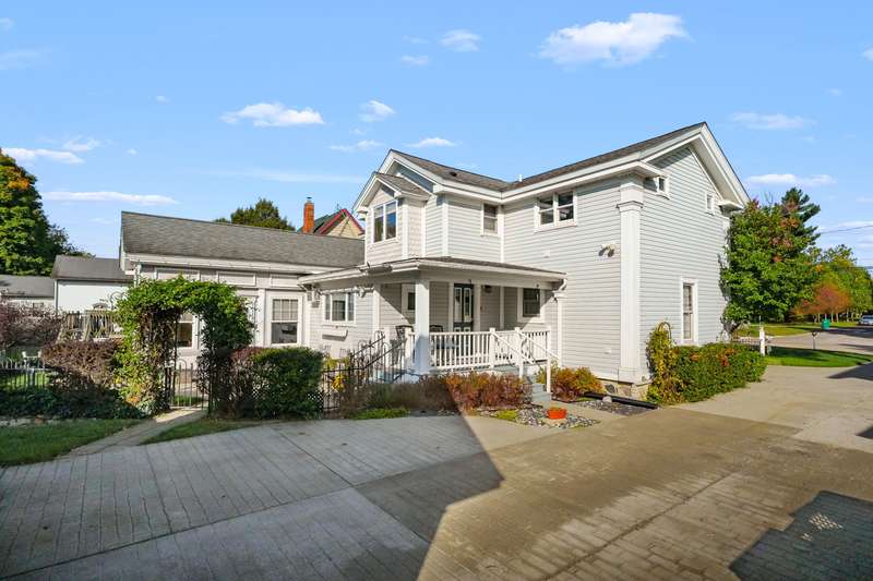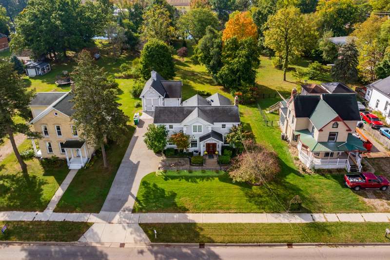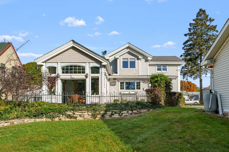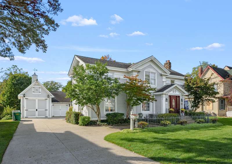 Stunning and meticulously renovated and remodeled 2 story, with a gorgeous Greek Revival look, overlooking a long lush green lawn and St Joseph River. This stunning home was taken down to the studs and rebuilt, inside and out, with attention to the smallest details with a Victorian flair. The new Amish kitchen with new appliances, pantry, 2nd oven and lovely character flows into the large DR with doors that open to a one of a kind vaulted sunroom with a huge window overlooking the yard and river. The living room with fireplace is charming with a fireplace and period finishes as does the office/den/library with tin ceiling. Upstairs are 3 great size bedrooms, all with their own character and finishes including a half tester. The basement is spotless with newer mechanicals. The custom garage is tandem on one side with 10' doors, with an abundance of storage on the other side up and down. Sprawling lawn to entertain on or head out on the river in your boat or kayak. The finer details of the home are the following. Detailed trim comes from a large estate home. Original antique gas light fixtures that have been converted to electric and were hand painted to match the custom wallpaper. New high performance washer/dyer unit. The sunroom is designed as an inner courtyard with lovely views, large windows, 14' vaulted ceiling with a park-like setting. The covered deck leads to a fenced in park-like patio. Spacious Stamped concrete driveway.