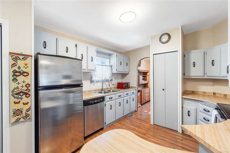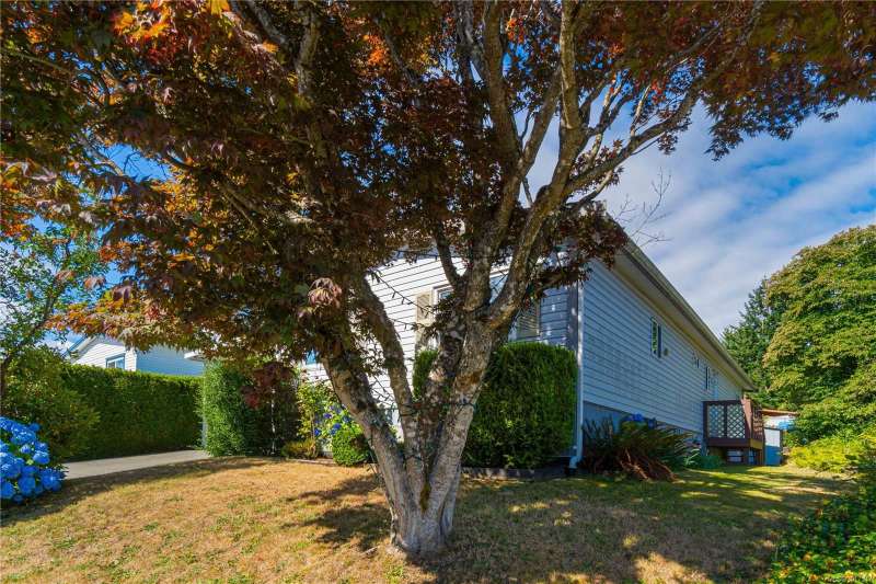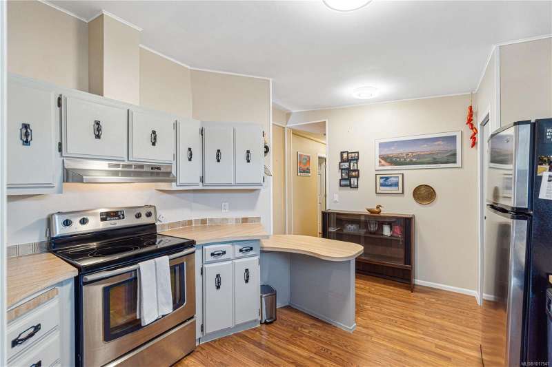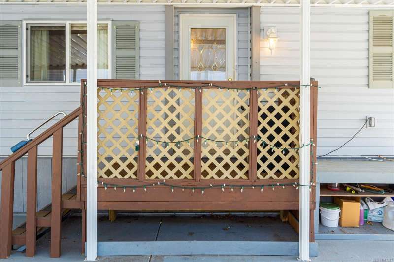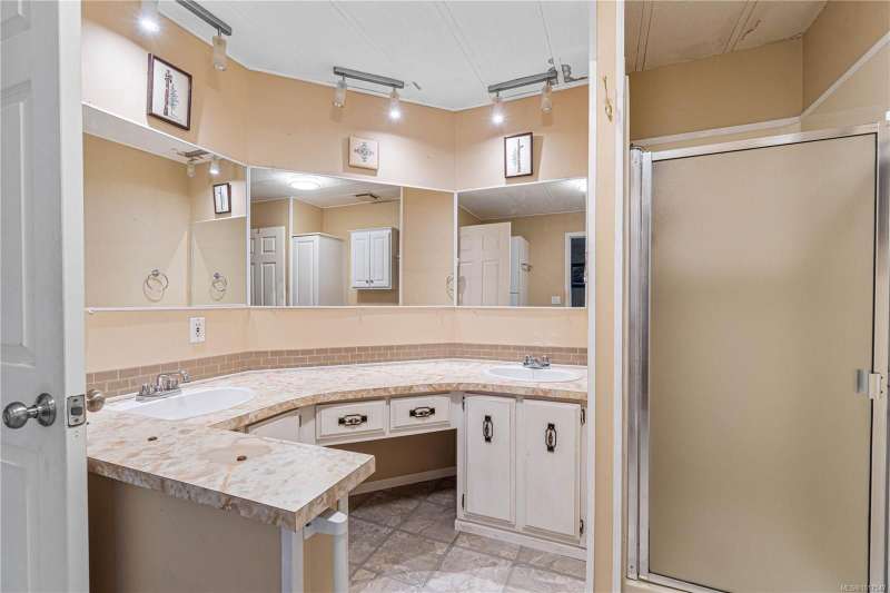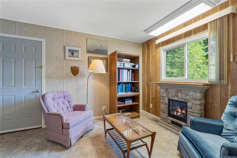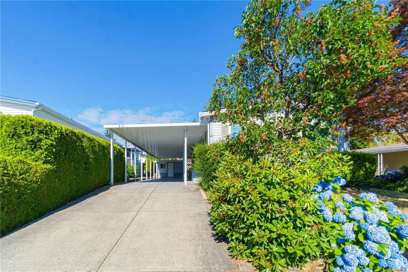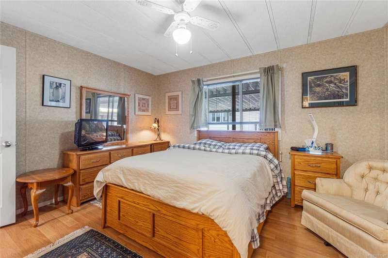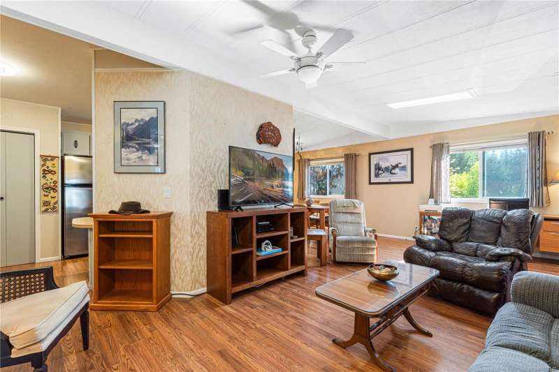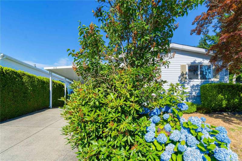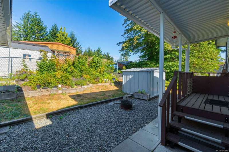Located in the quiet 55+ park at Dogwood Village just off Labieux Rd in Nanaimo is this spacious double wide home. This property has a cozy living room and dining room, ideal for having guests over. A large kitchen with stainless steel appliances has a ton of storage space. The primary bedroom has a huge ensuite and leads into a second living space or den. This area makes a great space for an office or watching your favourite shows in front of the electric fireplace. A second bedroom, a 4 piece bathroom and a great sized laundry room also add to the charm of this home. You will stay extra cool in the summer thanks to the covered carport. With ample room for parking, there is also a workshop and storage shed. Enjoy gardening in your private back yard! Located just minutes from Country Club mall, bus routes, and much more!