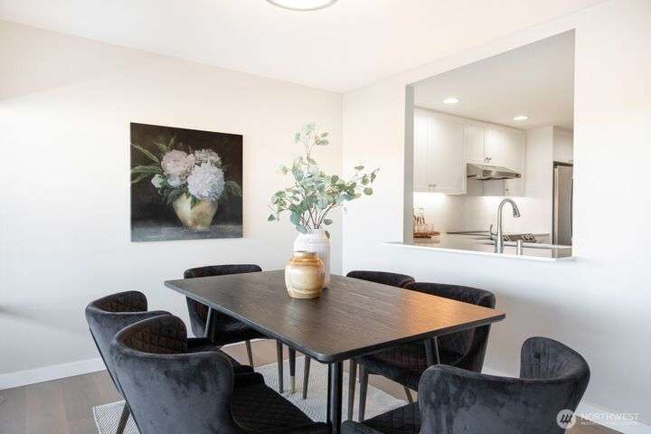 Top-floor waterfront living with unmatched views! Soak in sweeping vistas of Lake Washington and the Cascade Mountains from this fully renovated top-floor unit in the coveted Lake House Condos. The beautifully updated kitchen features new quartz slab countertops and backsplash, new cabinets, and a spacious pantry for added storage. Enjoy hardwood floors throughout, dining room w/access to a covered deck. The primary suite offers a walk-in closet & elegant en-suite bath, while a versatile den can easily serve as a 2nd bdrm or office. In-unit laundry, secure garage parking, and a lakefront pool & day-use dock. Ideally located next to a beach park and just steps from Madison Park’s shops & restaurants - easy access to SR-520! Don't miss this!